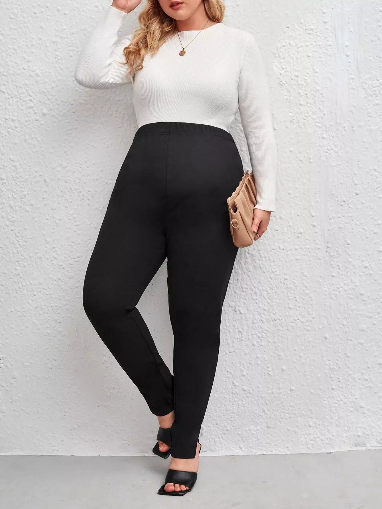 بنطال ضيق بخصر مطاطي بحافة منقسمة على الحوامل