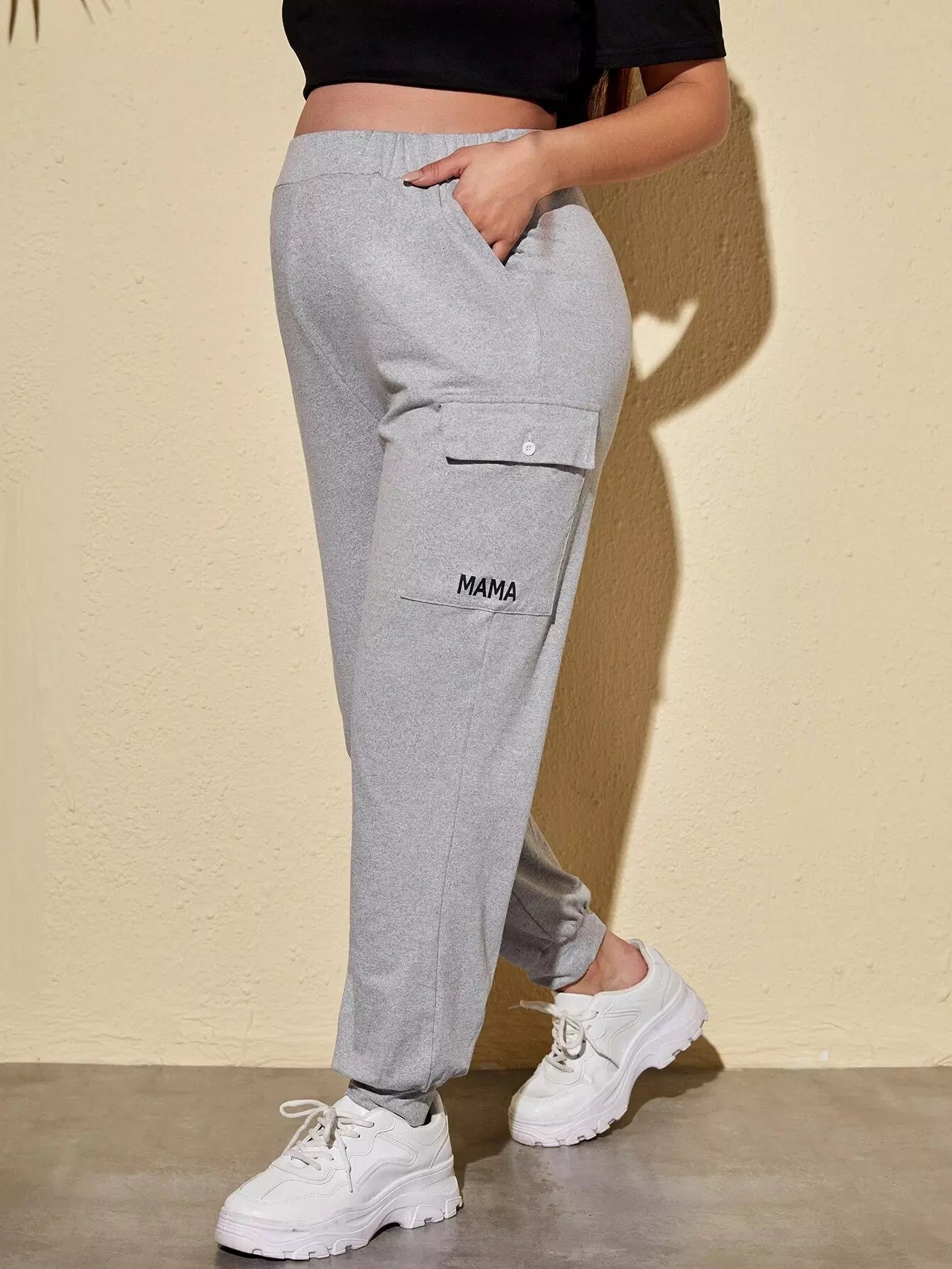 بنطلون بجيب جرافيك بغطاء جرافيك بحرف الأمومة