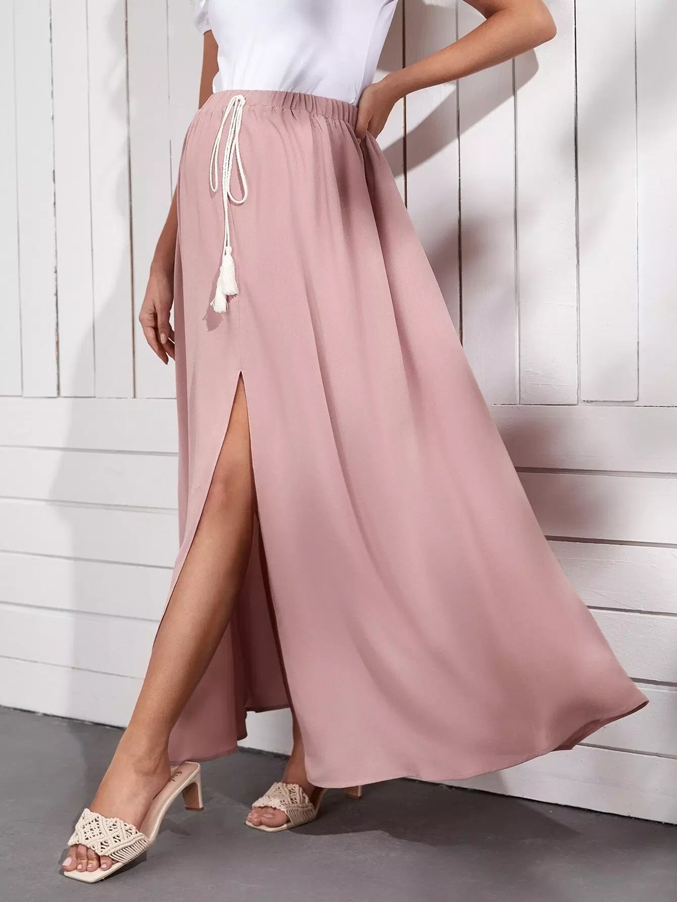 تنورة للحوامل بفتحة أمامية مع عقدة على الخصر