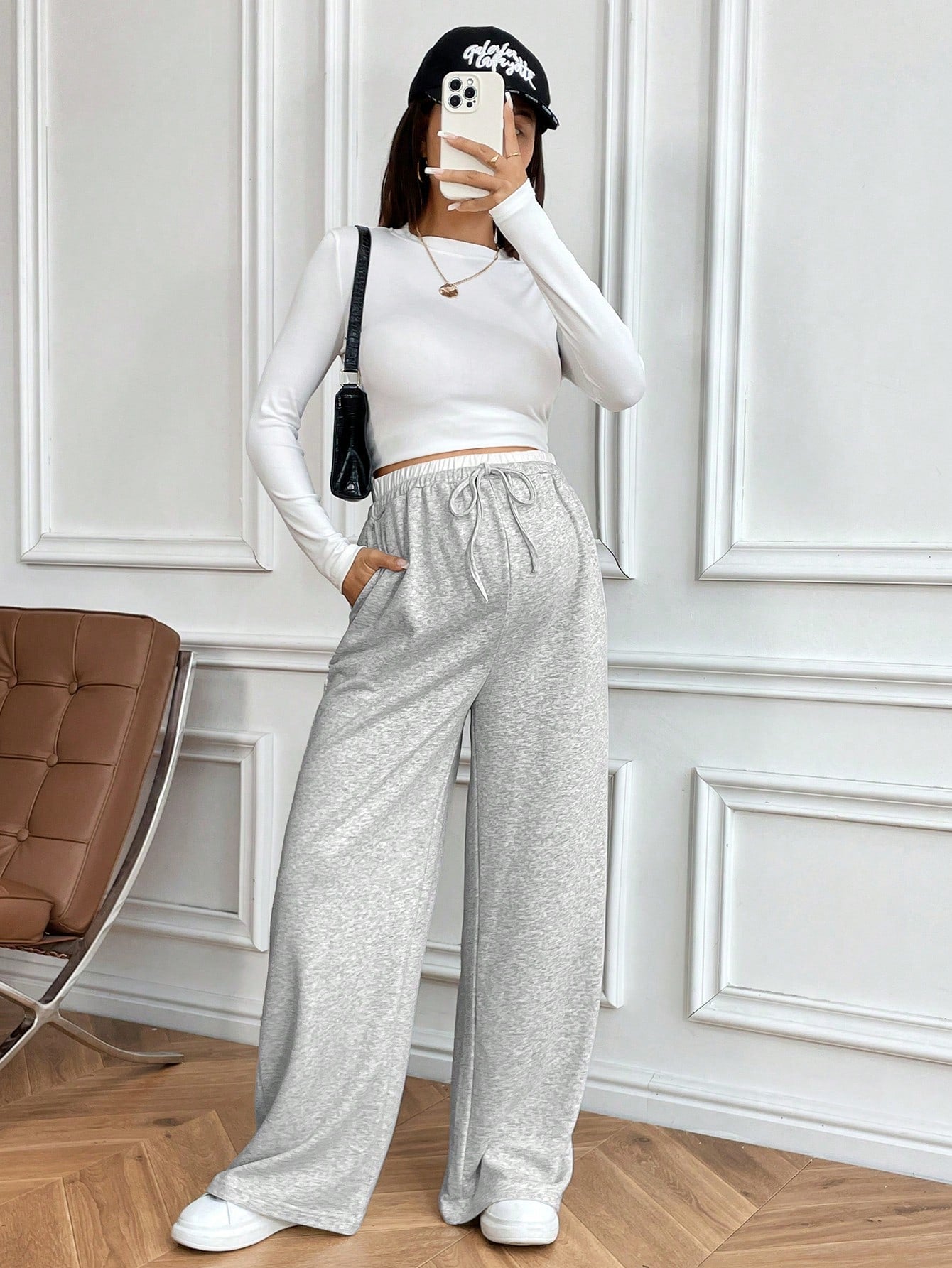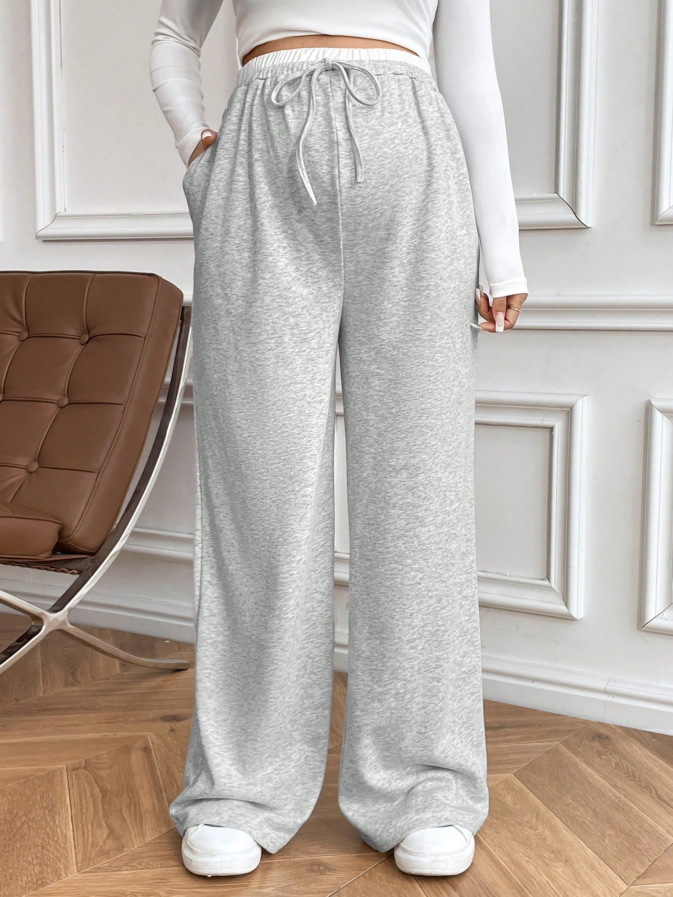 بنطلون واسع الساق فضفاض للنساء الحوامل مع جيوب بزاوية، ربيع/خريف، للأمومة