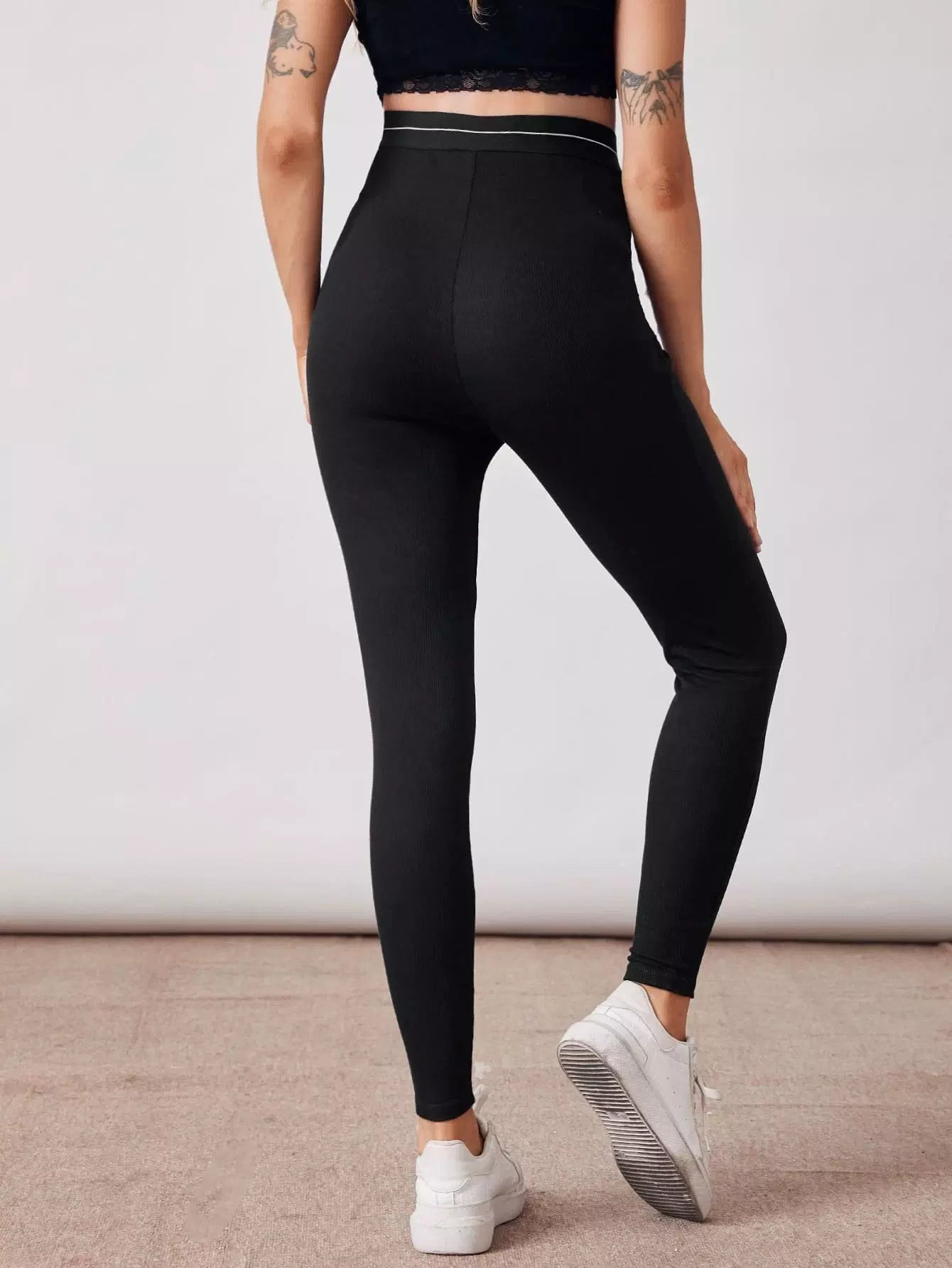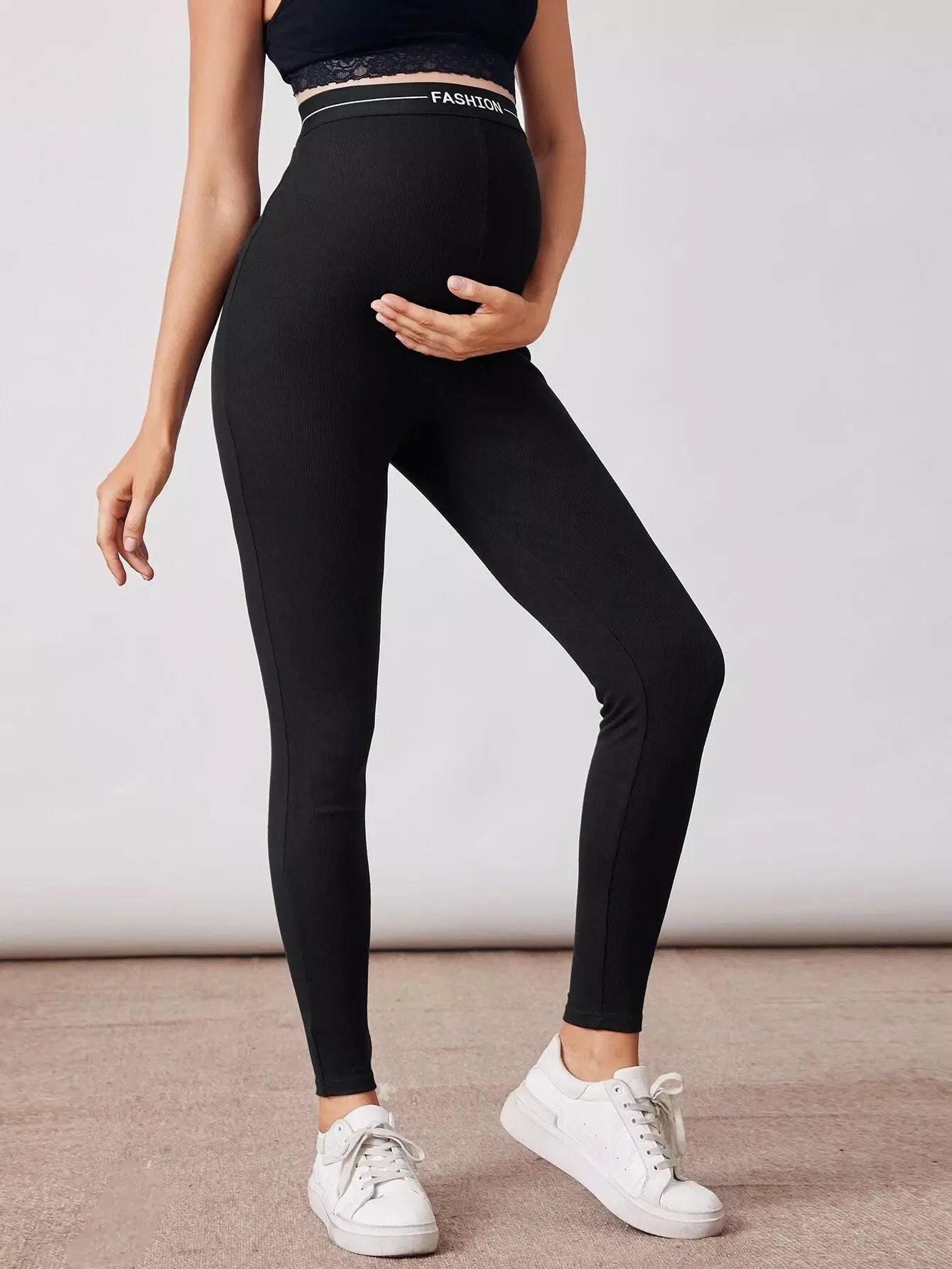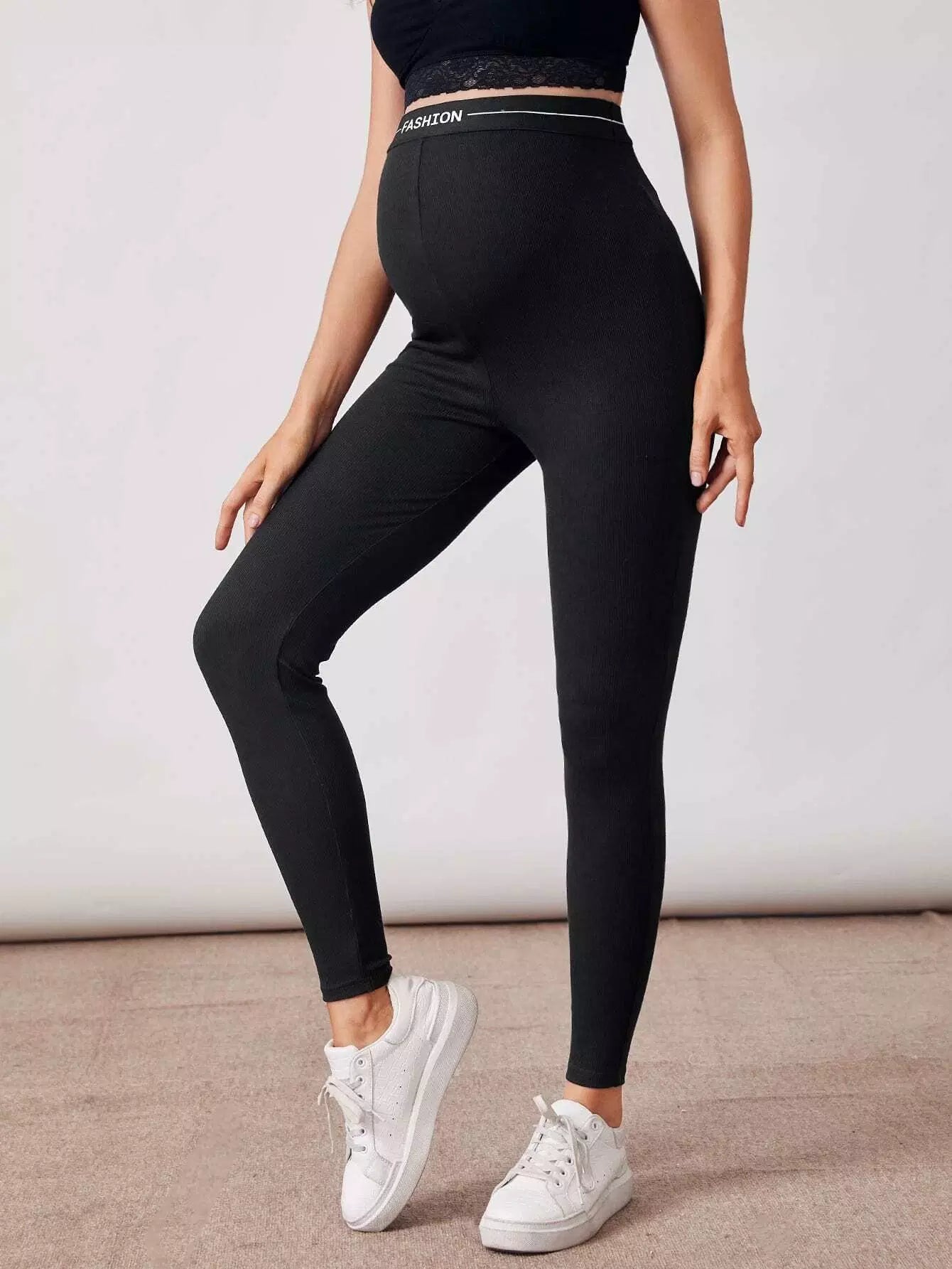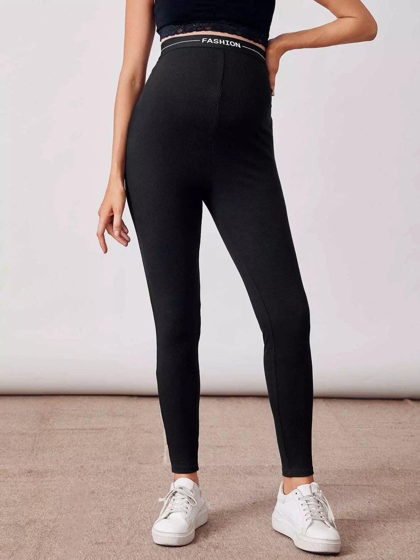 بنطال ضيق بخصر مرتفع الخصر برسوم حروف الأمومة