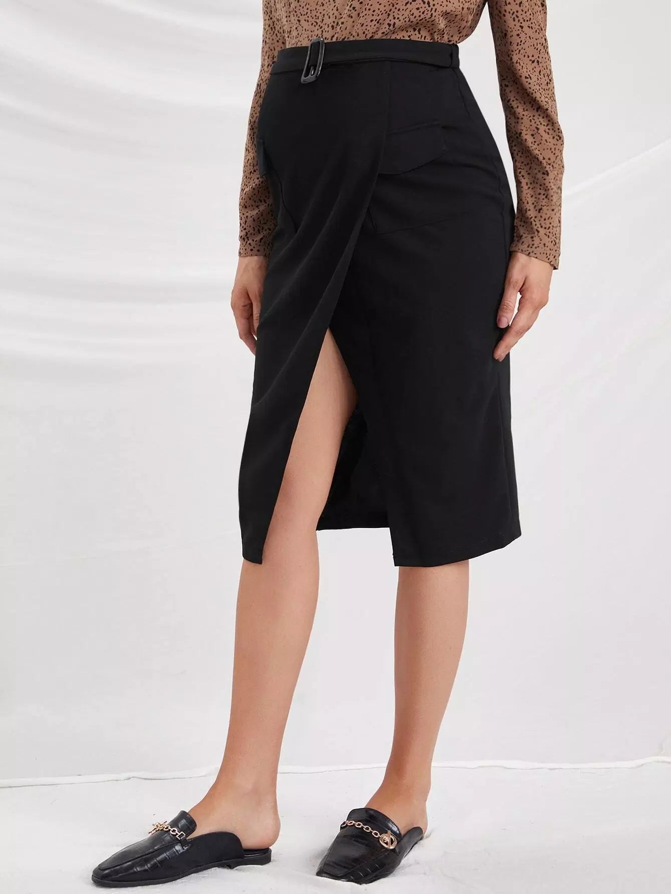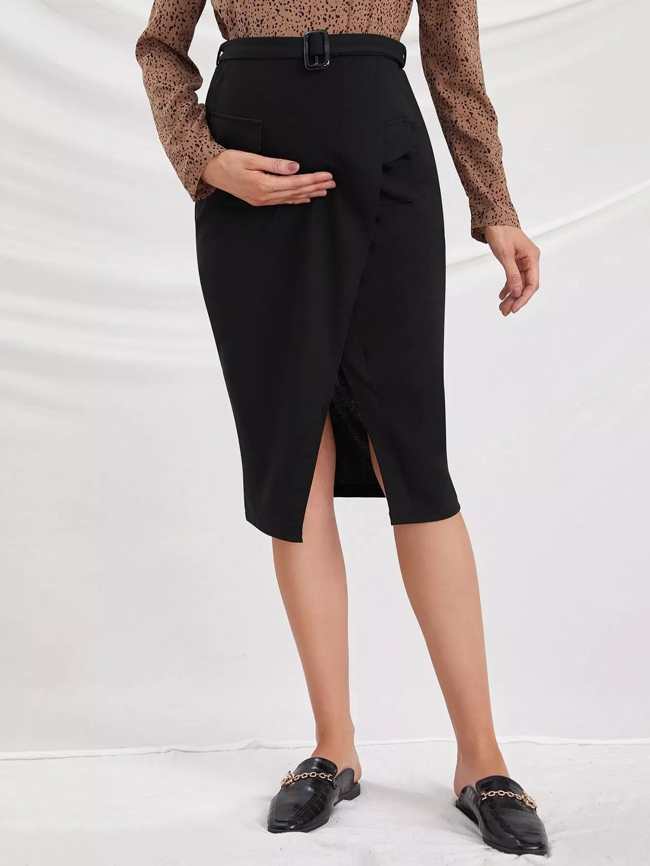 الأمومة رفرف جيب الجبهة مشبك تنورة بدون حزام
