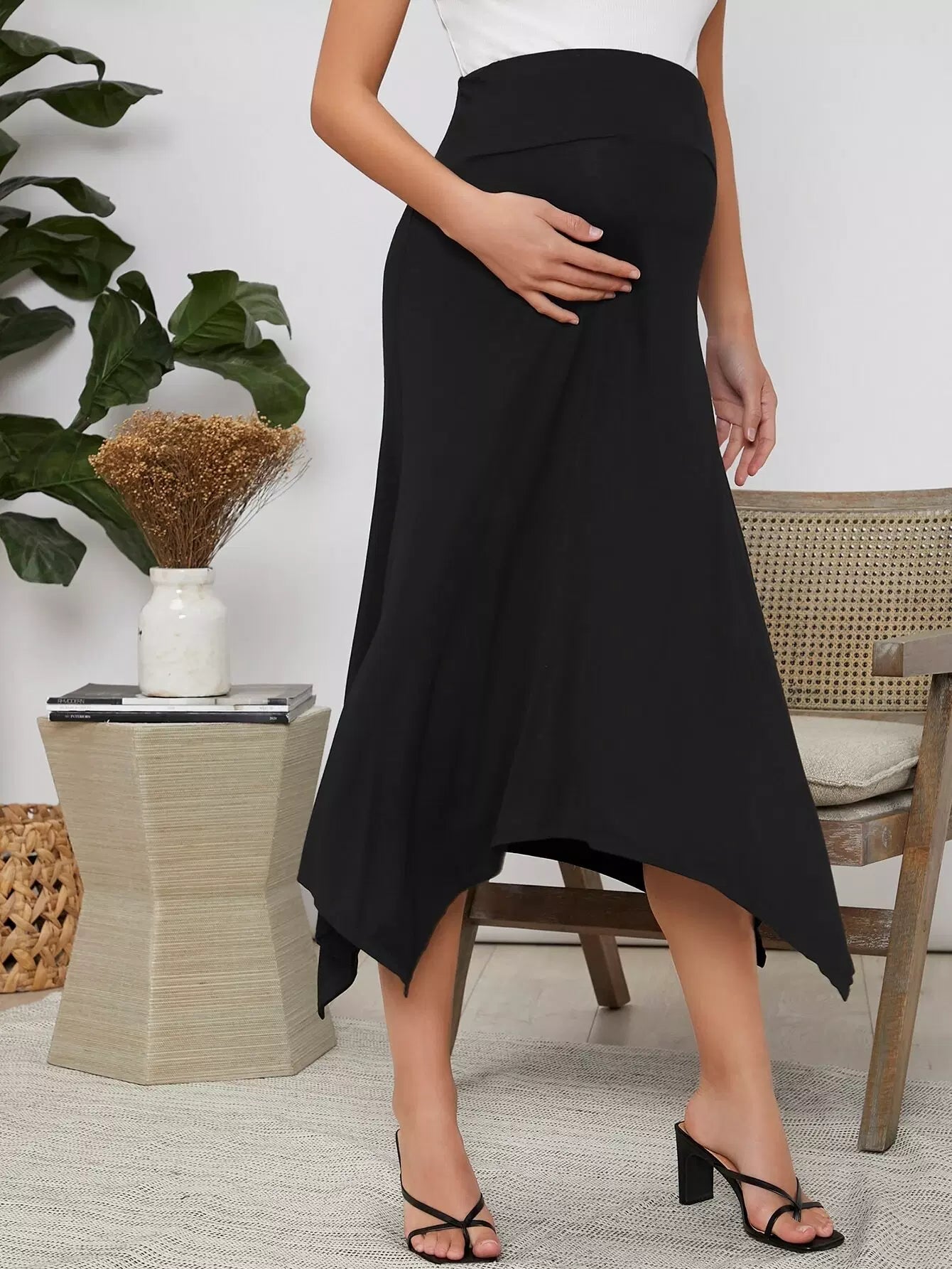 تنورة واسعة الخصر للحوامل مع حاشية منديل