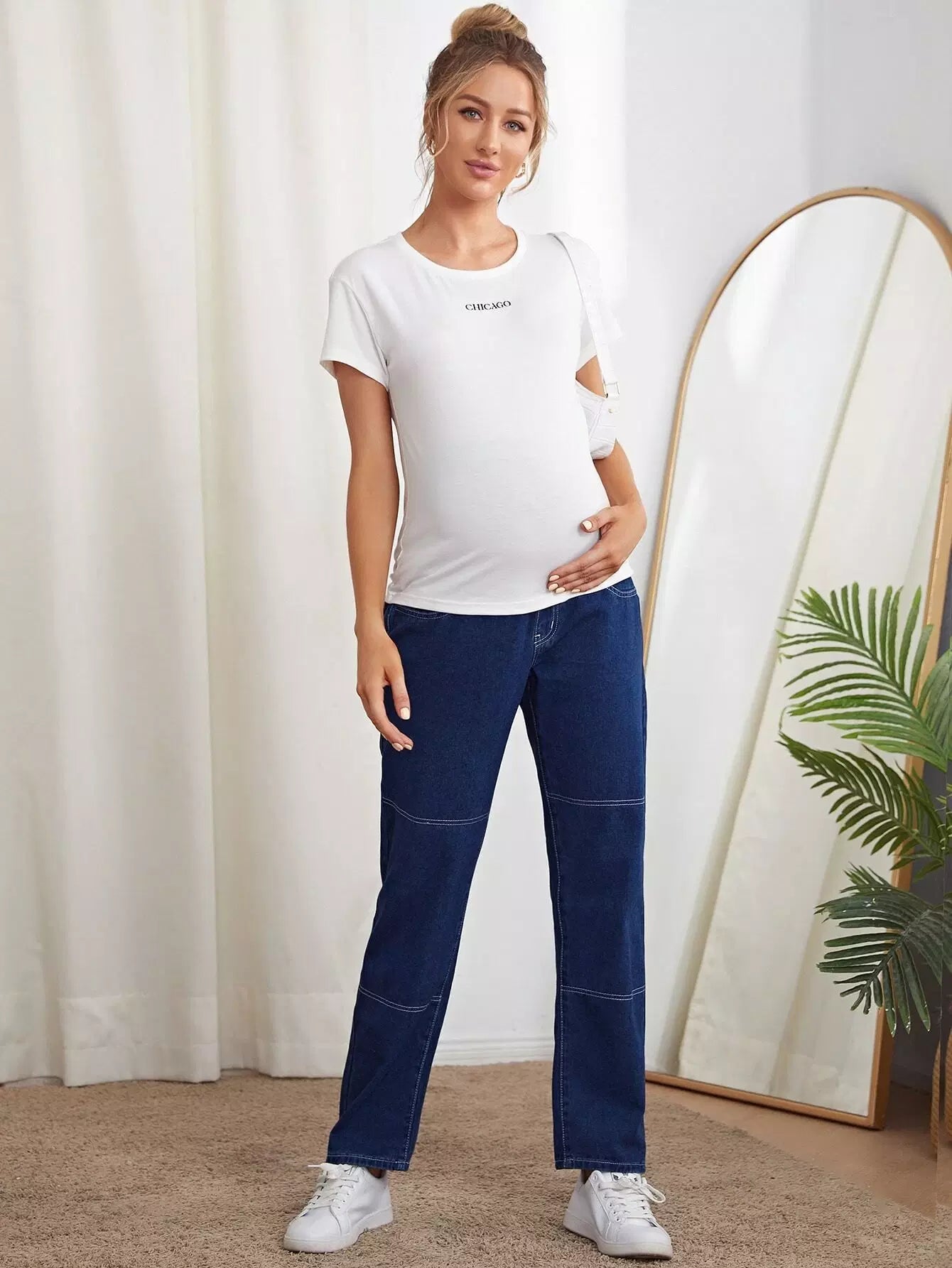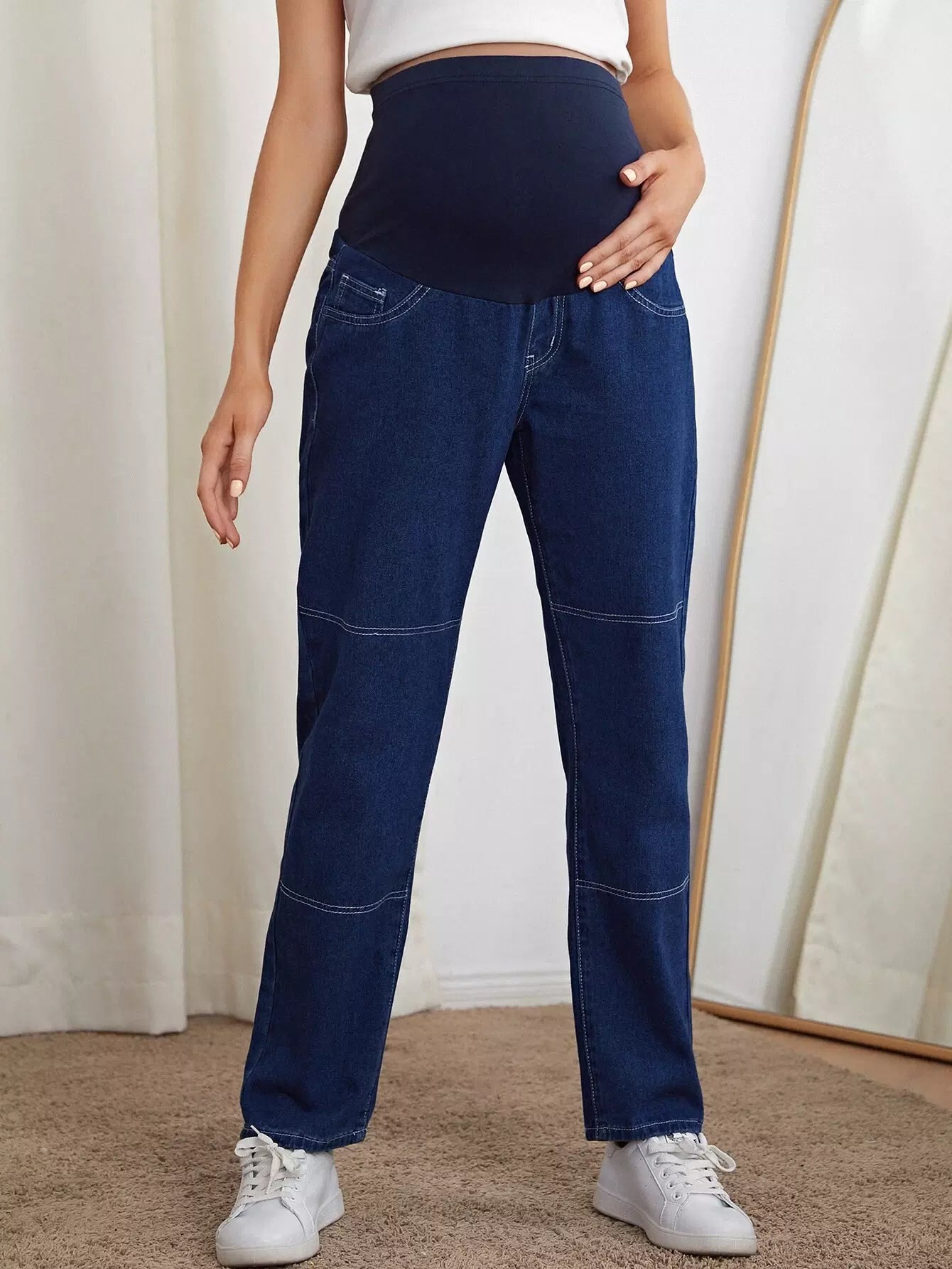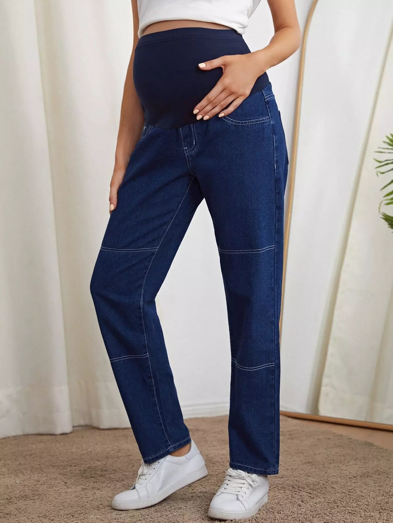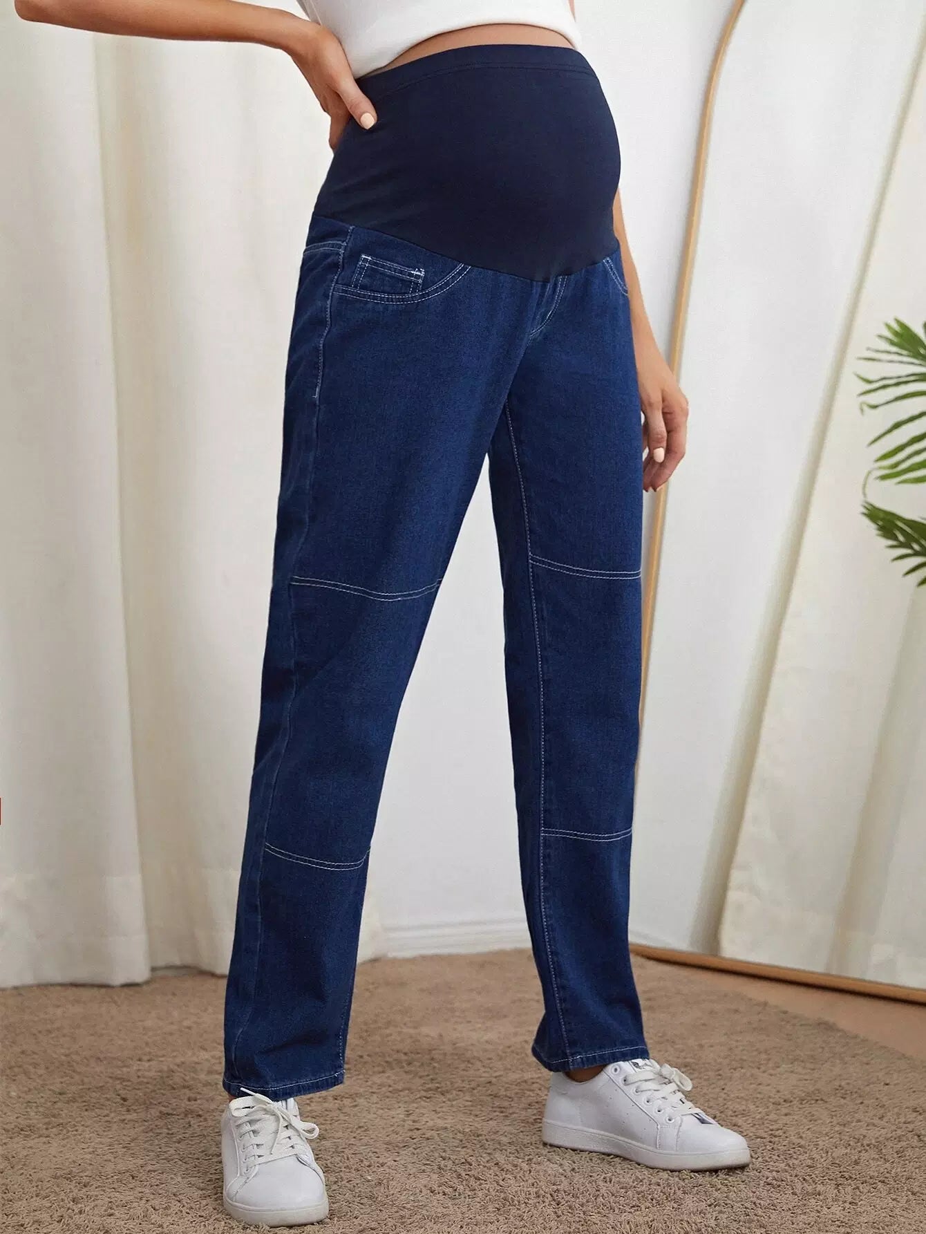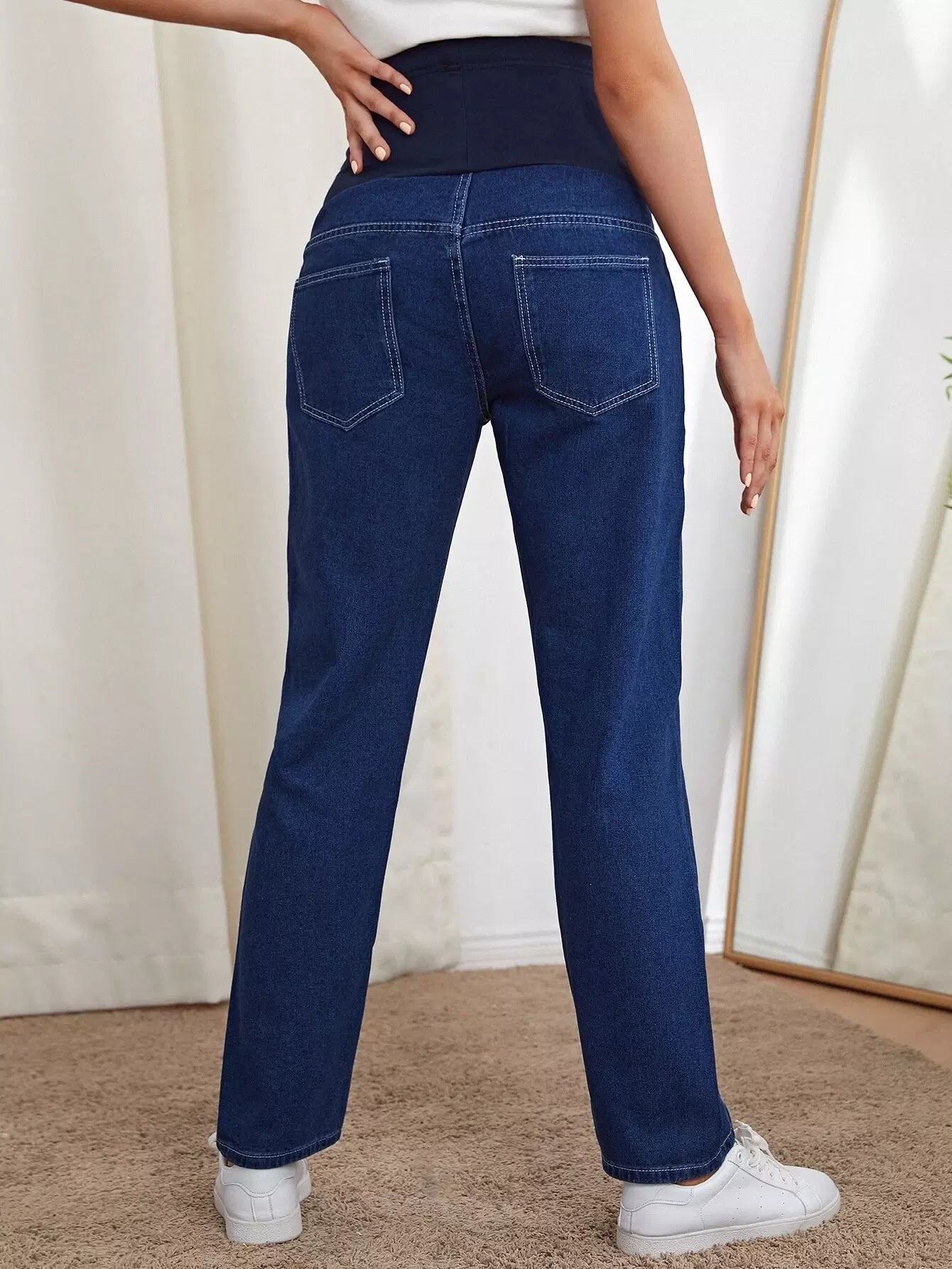 بنطلون جينز مستقيم داكن اللون للحوامل