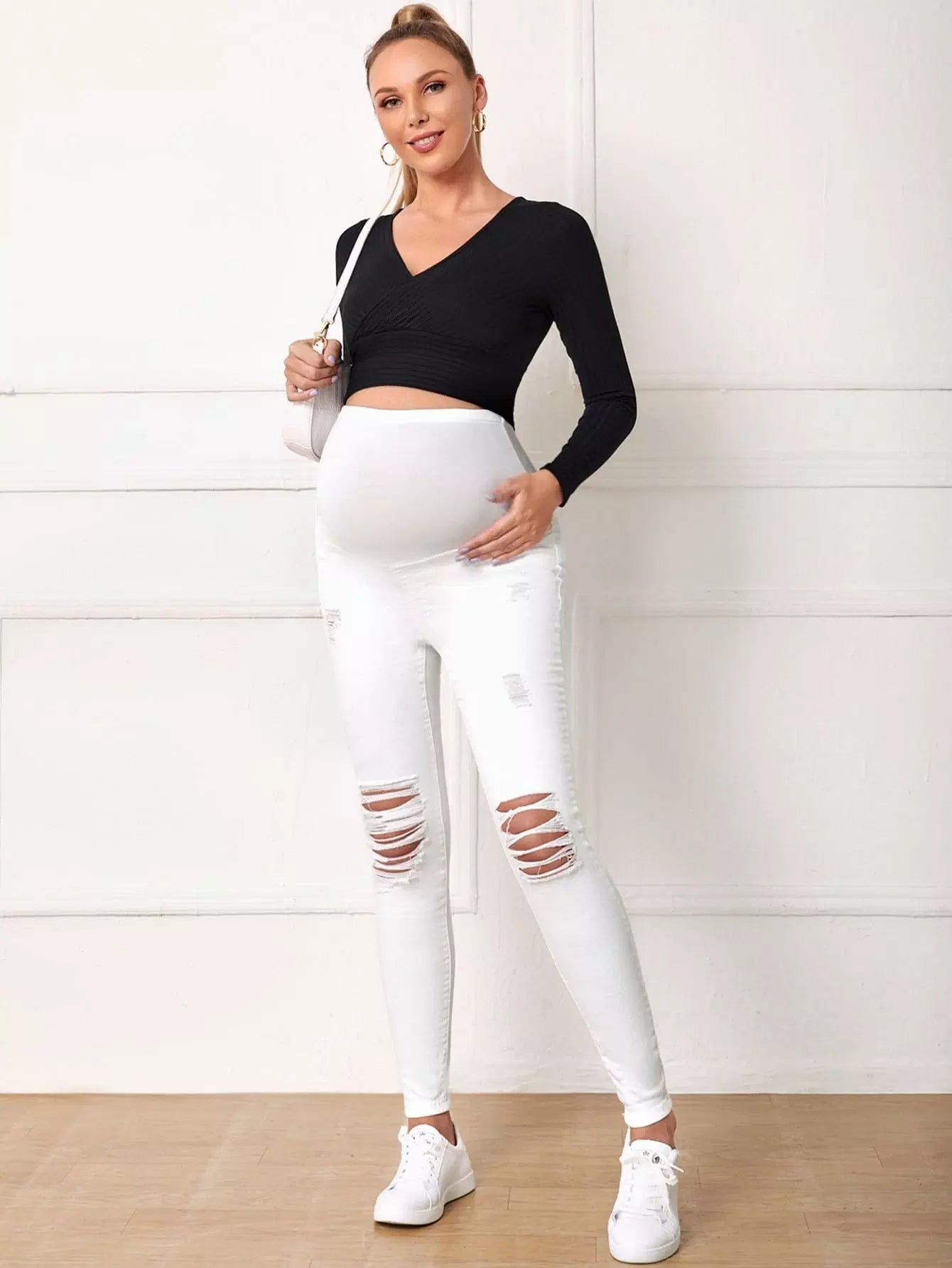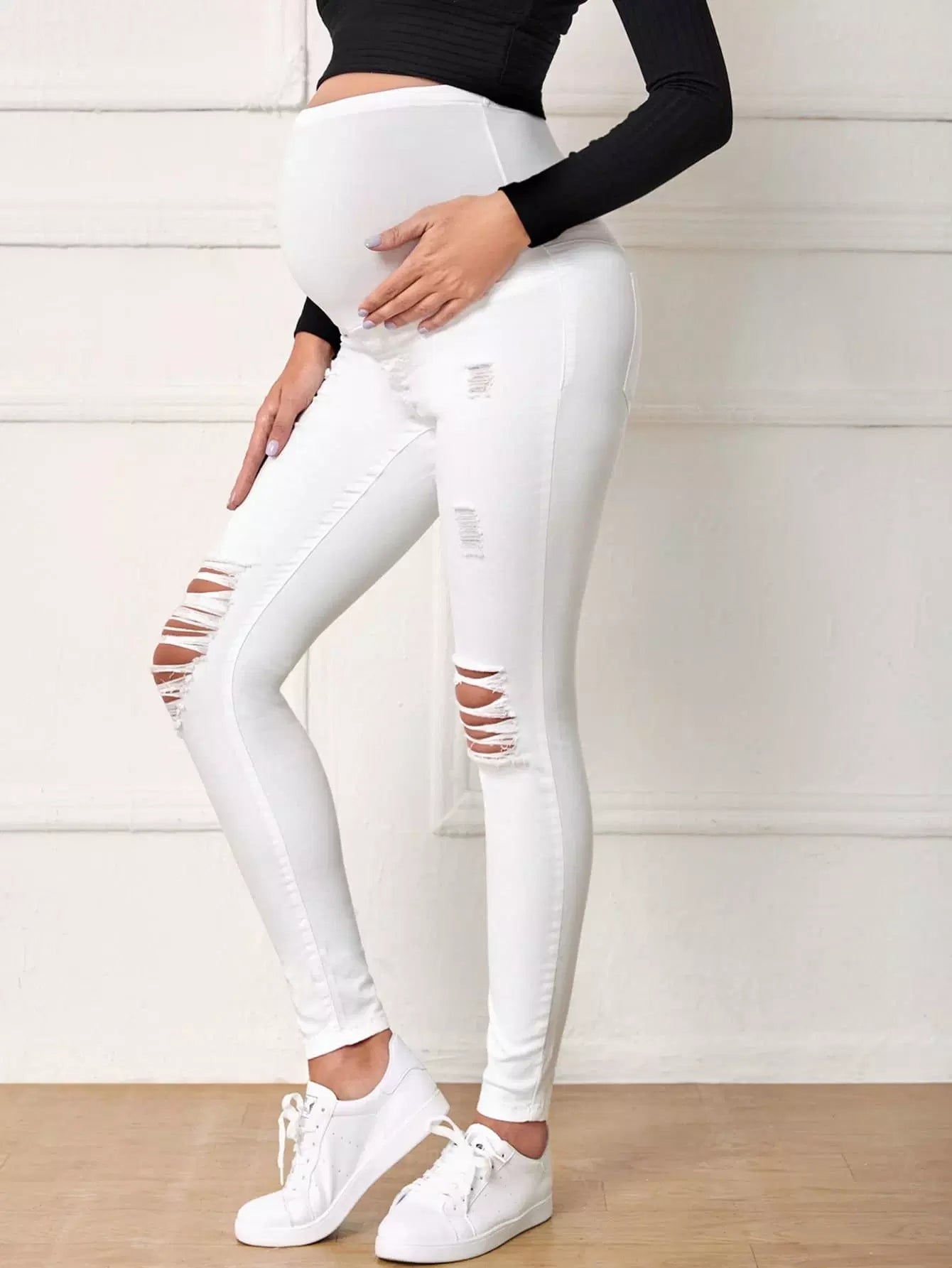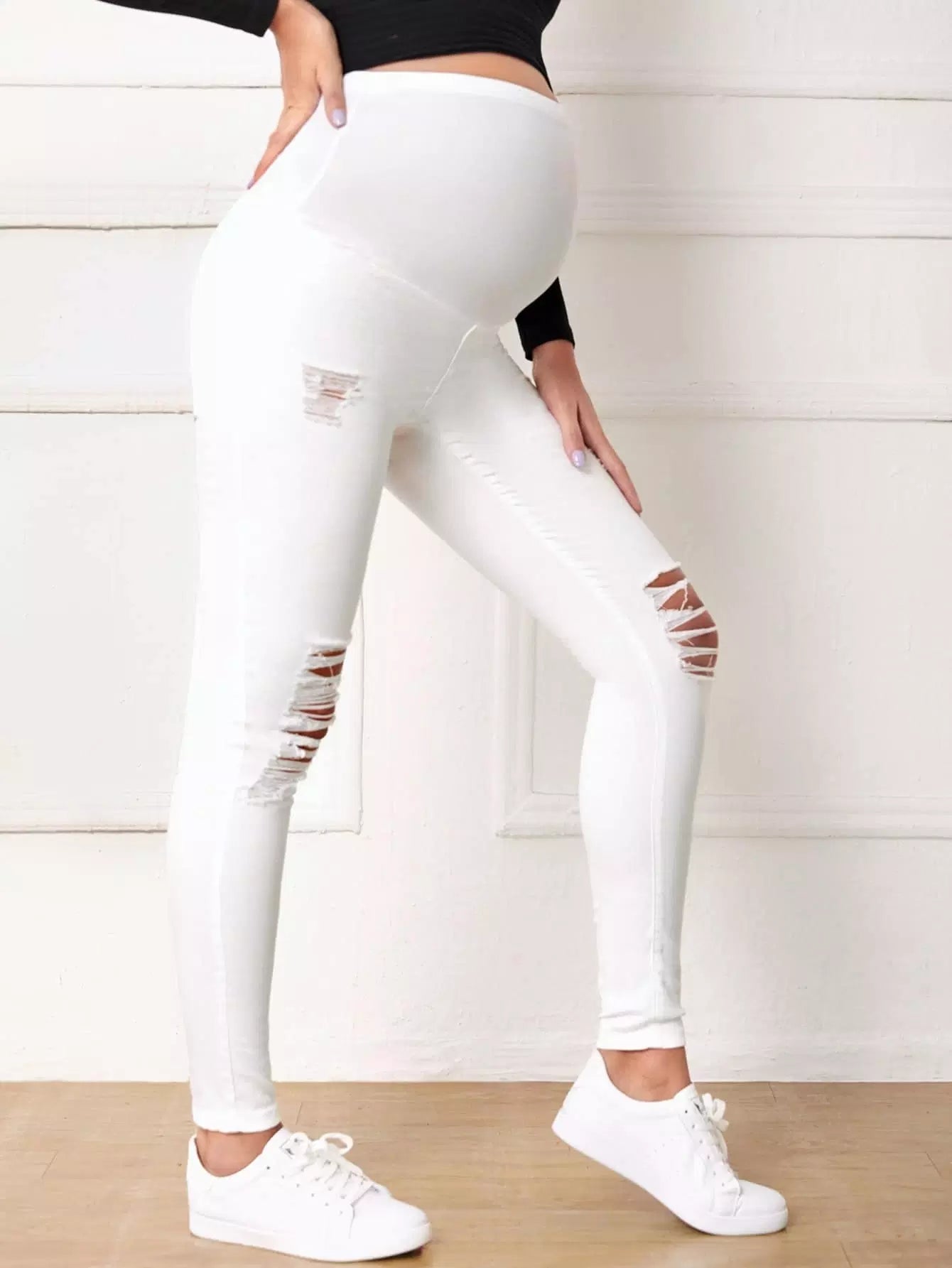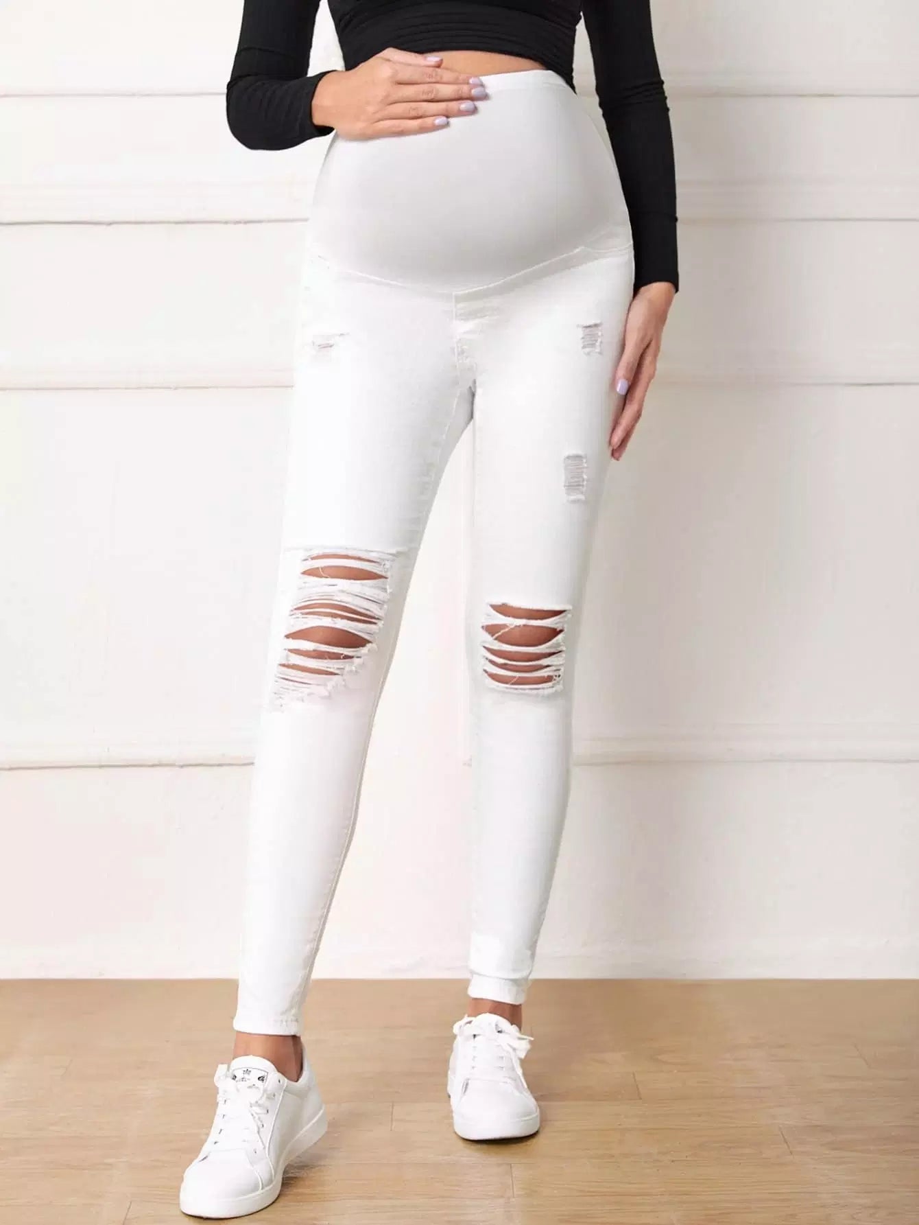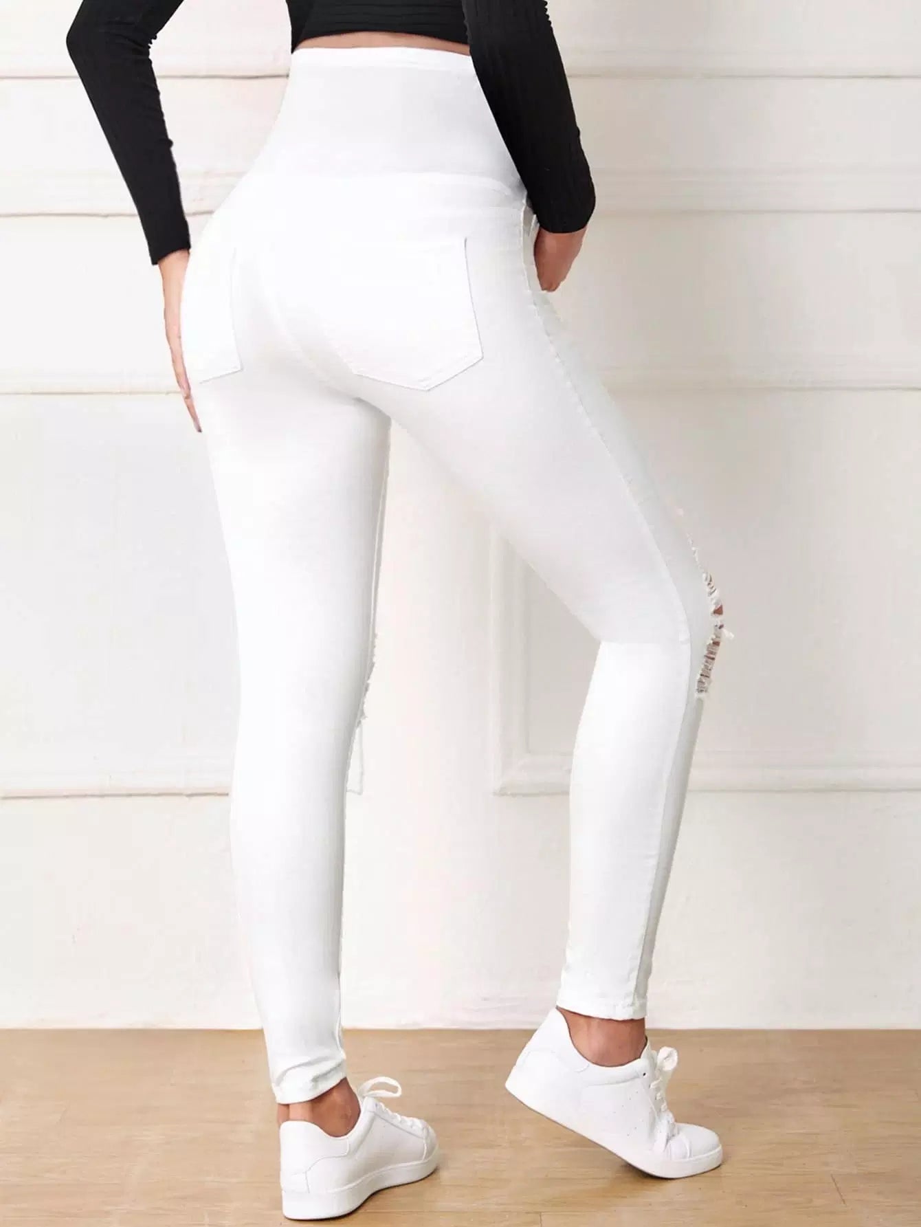 بنطلون جينز ممزق ضيق بخصر مرتفع للأمومة