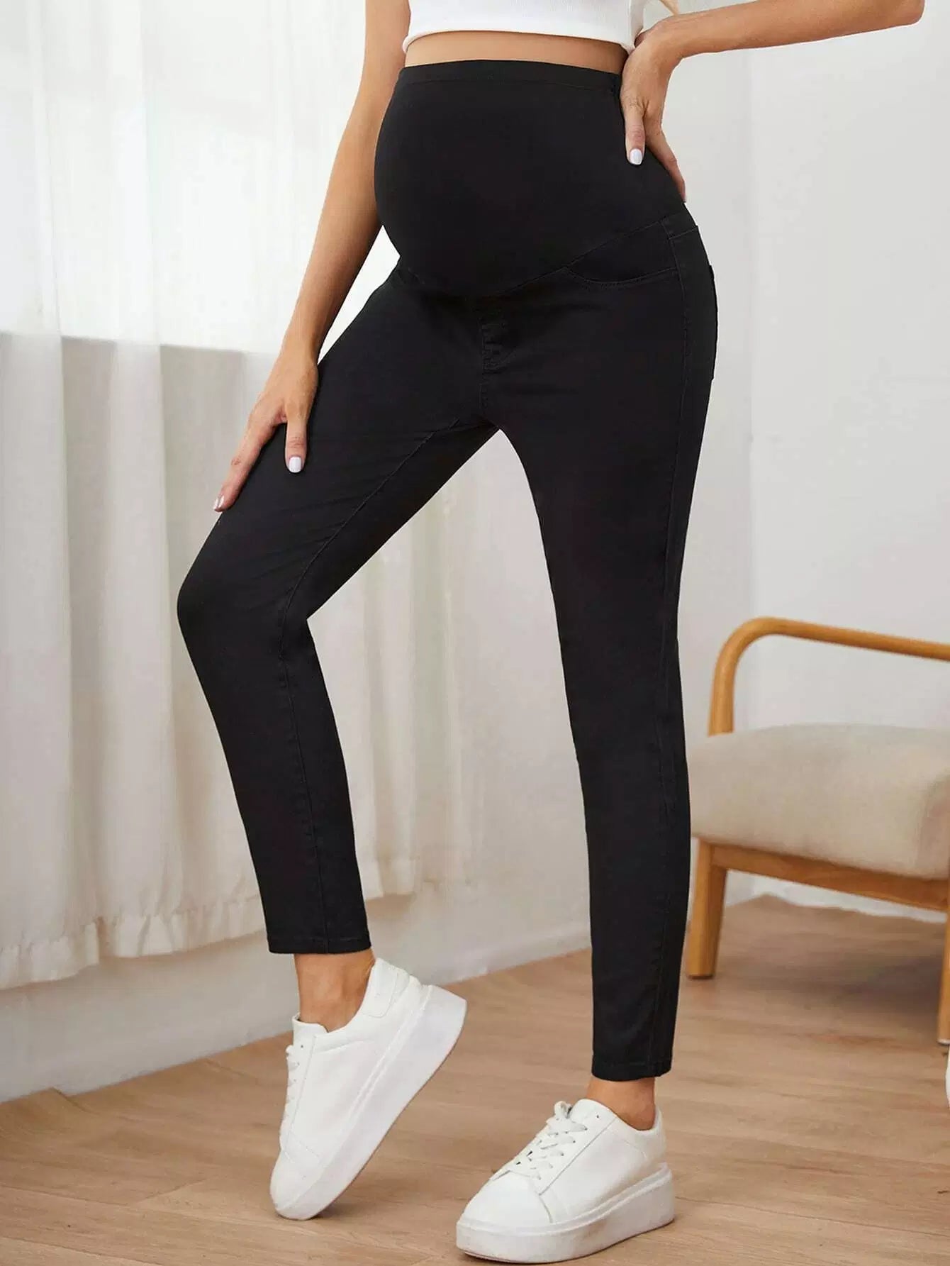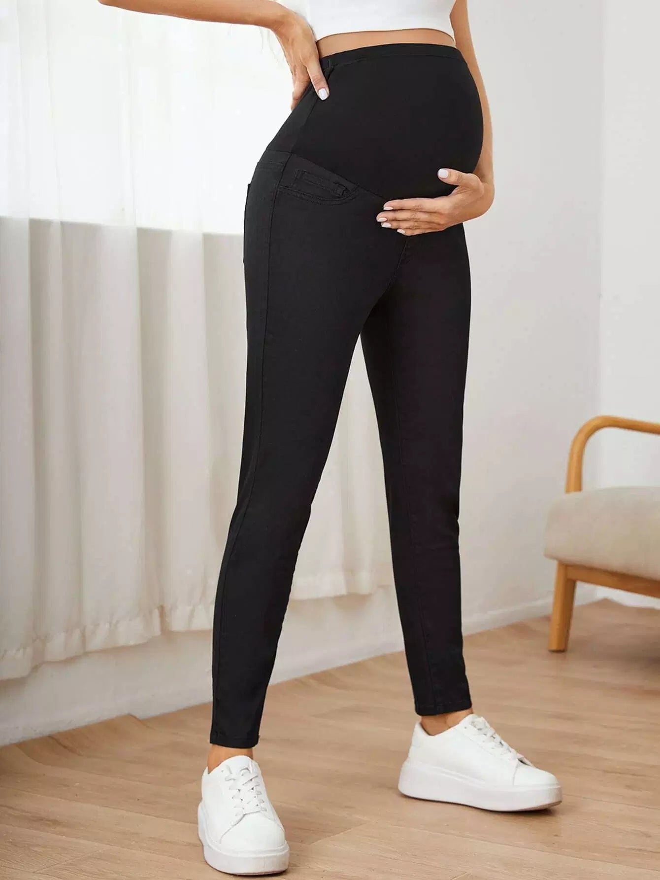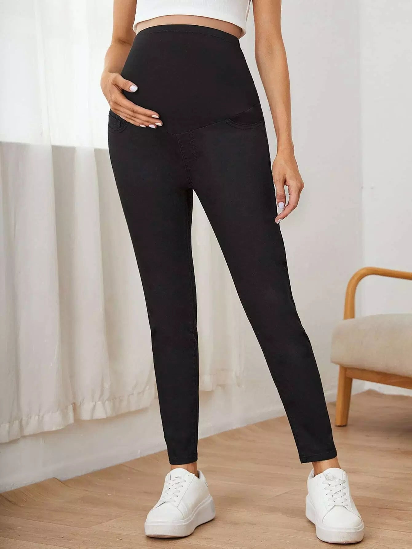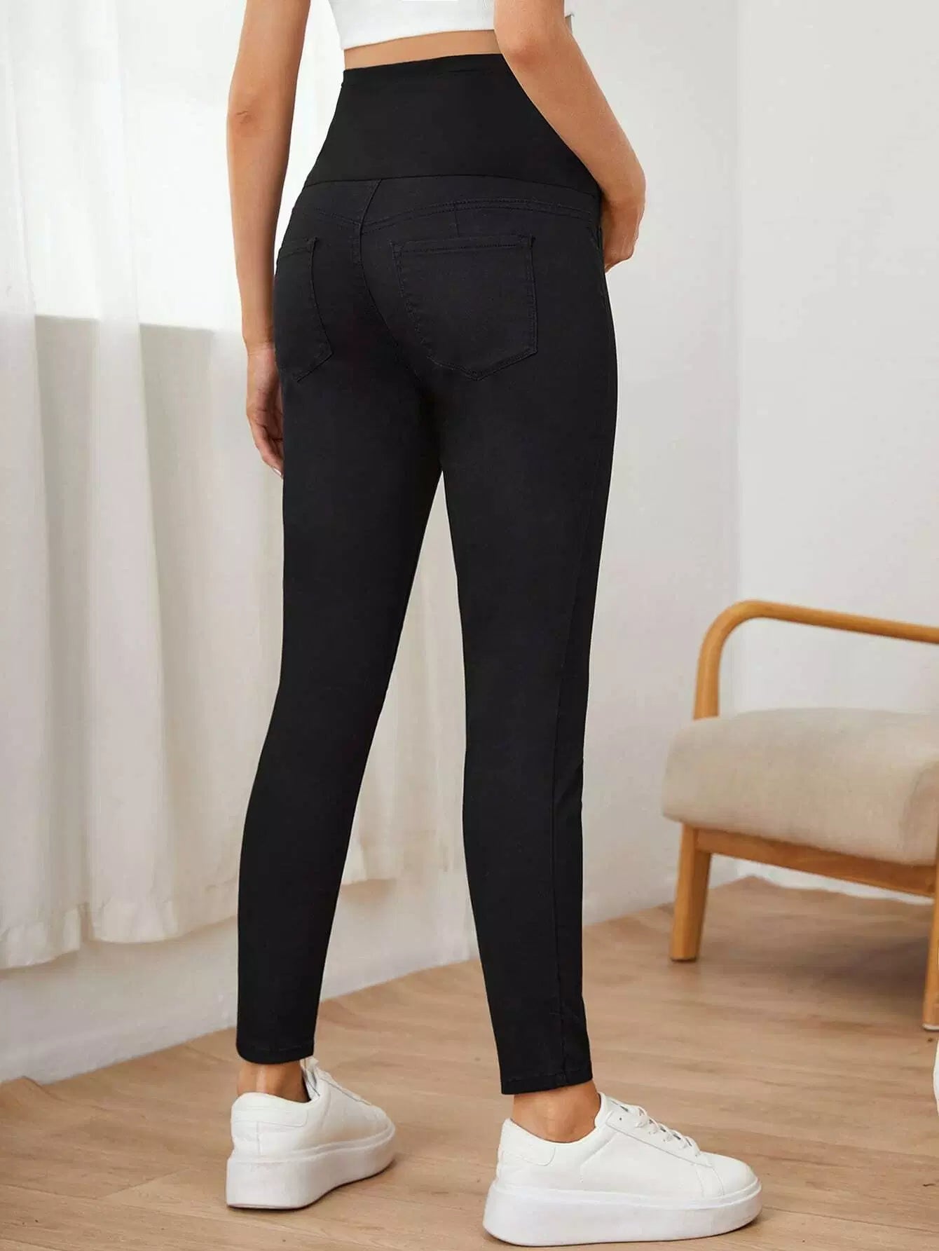 بنطلون جينز جينز سكيني سادة سادة بخصر عالٍ للحوامل