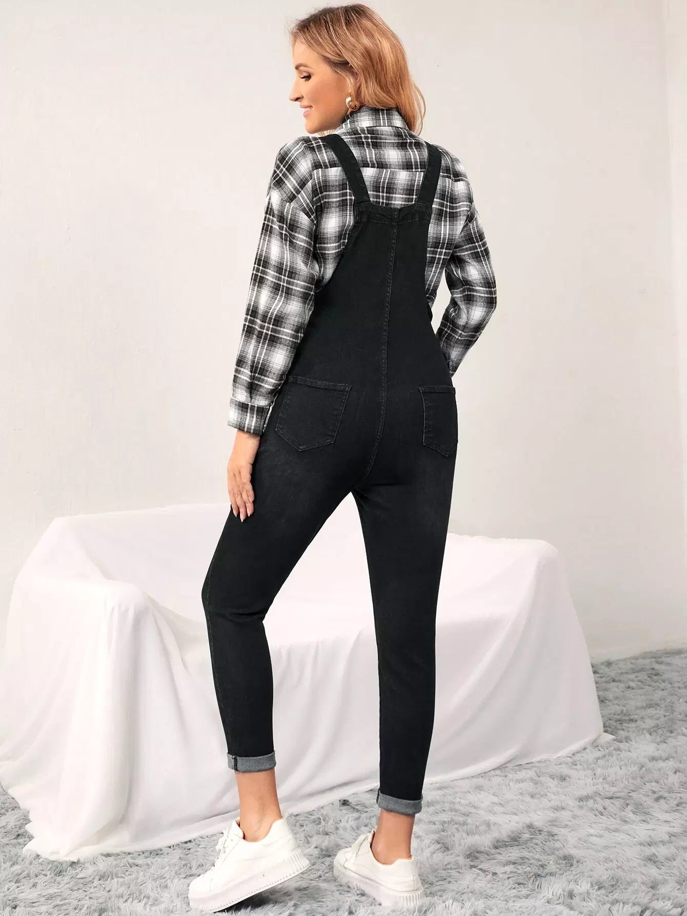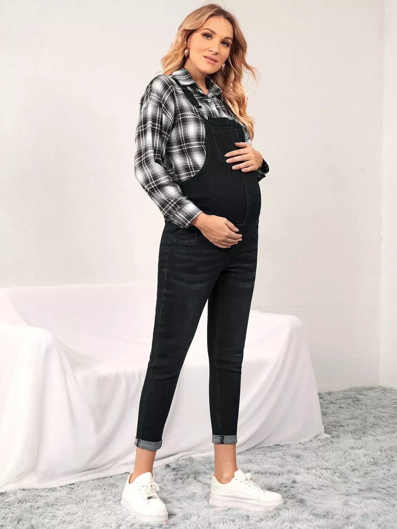 جمبسوت جينز بجيب أمامي للحوامل بدون بلوزة