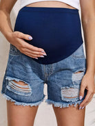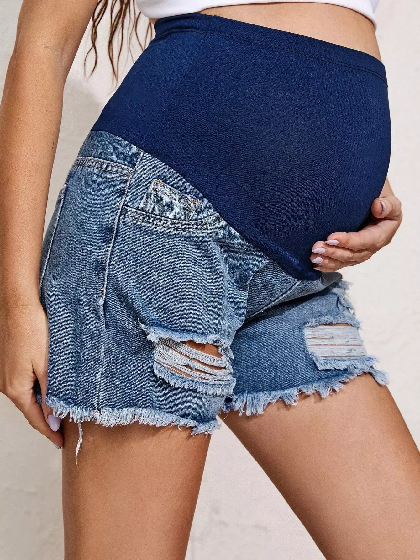 شورت جينز بحاشية ممزق بحمالة ممزقة من الدنيم الخام