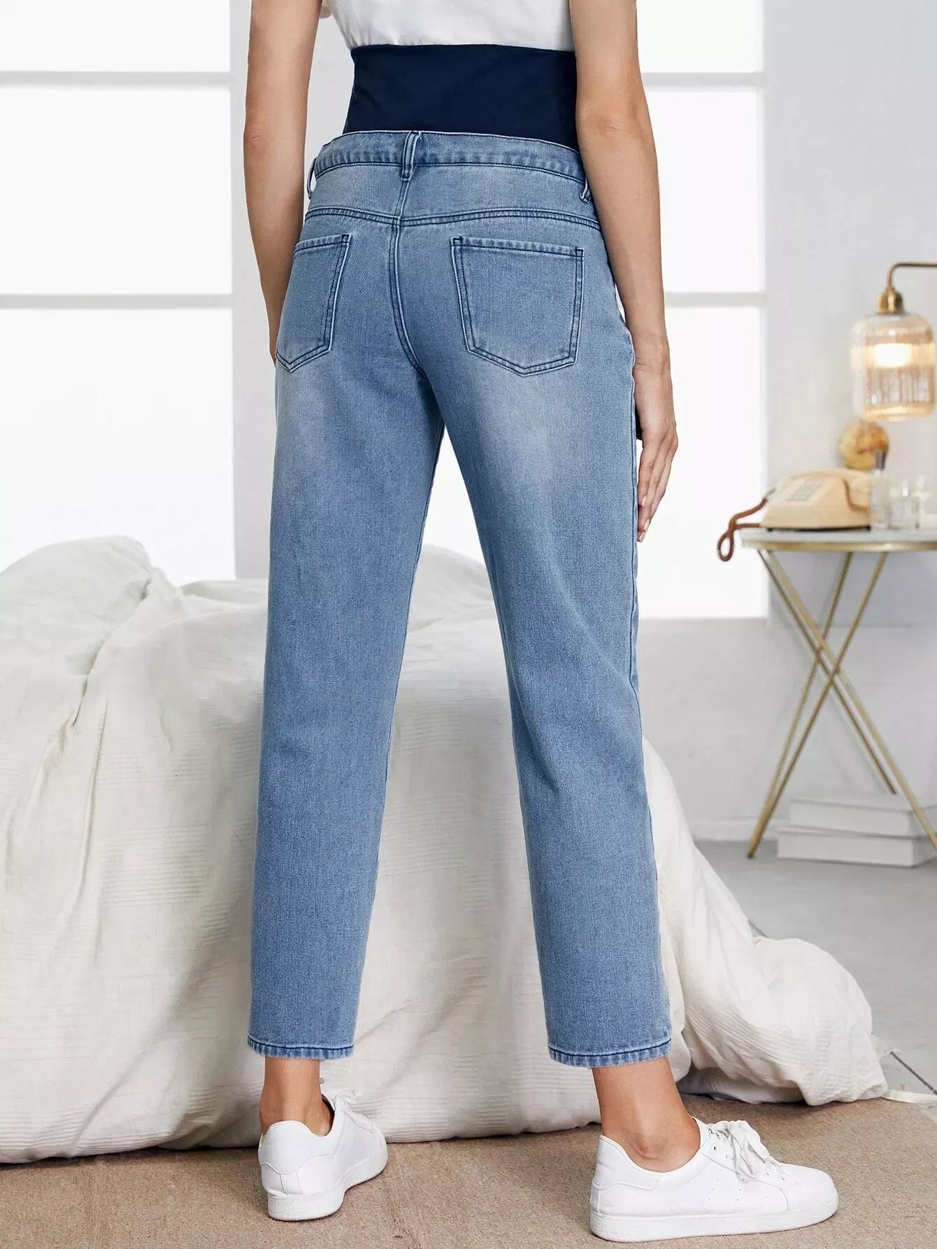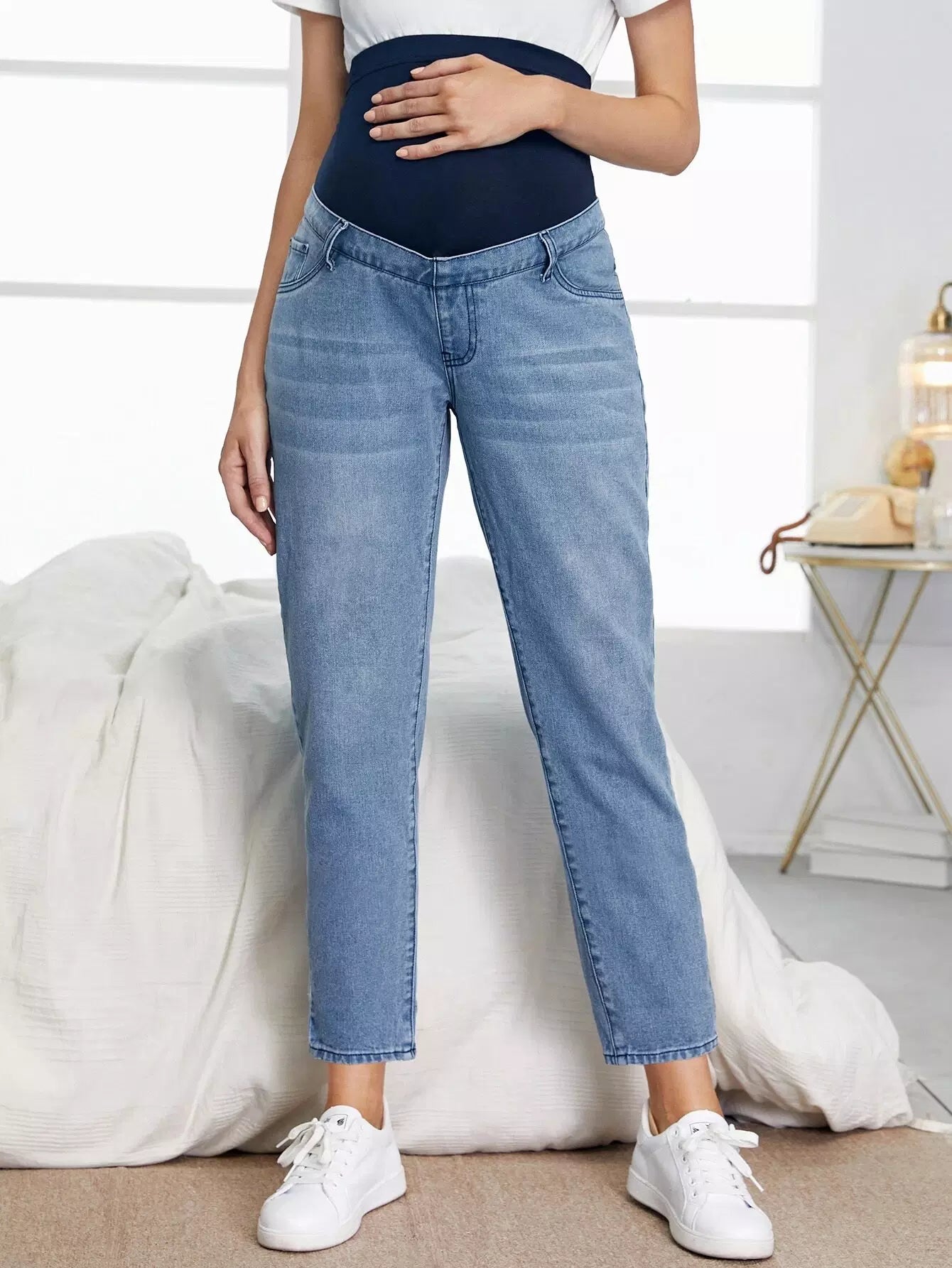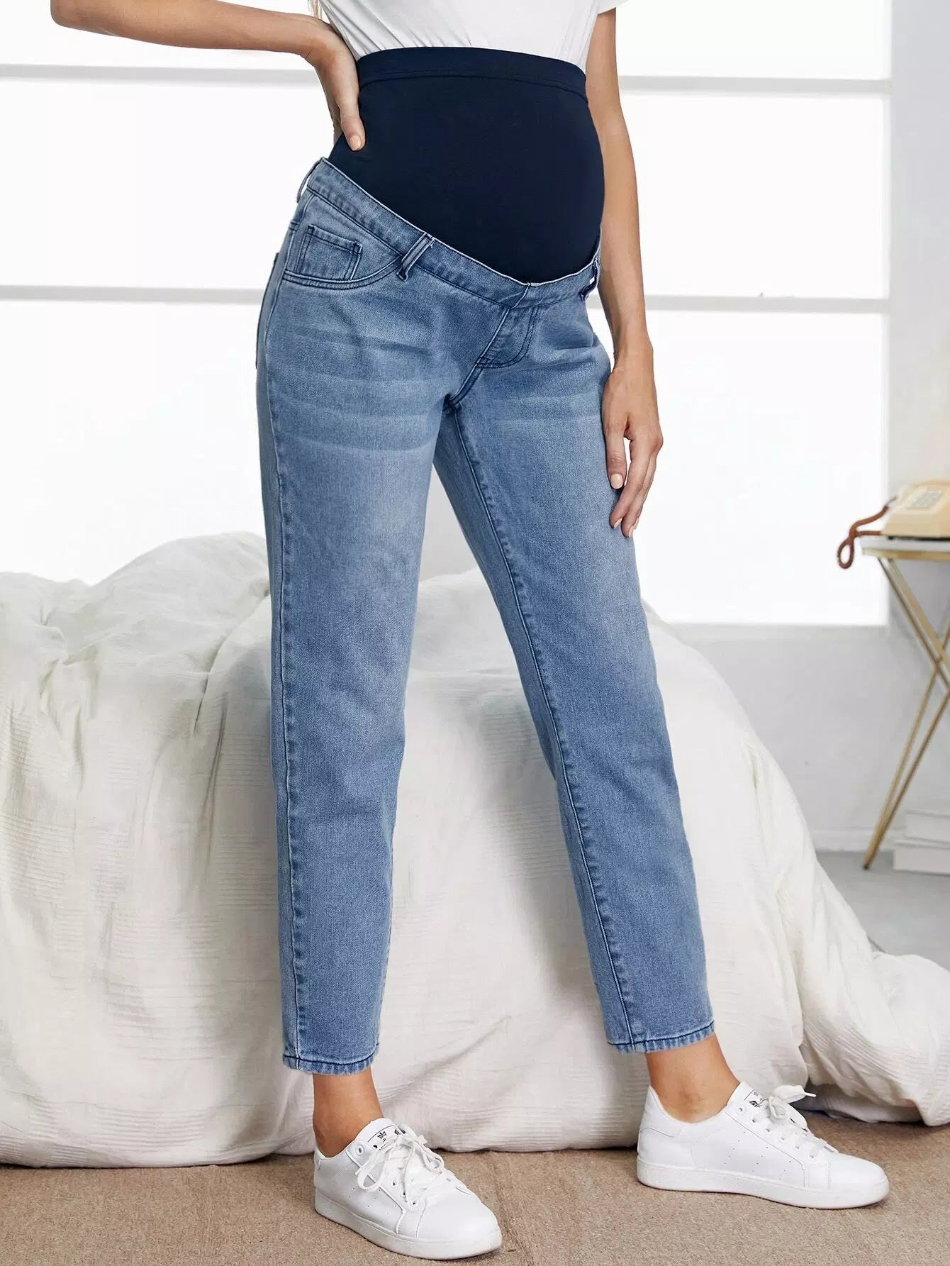 بنطال جينز بجيب مائل بساق مستقيمة للحوامل