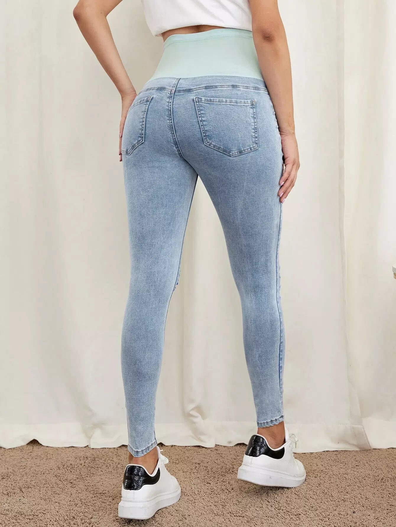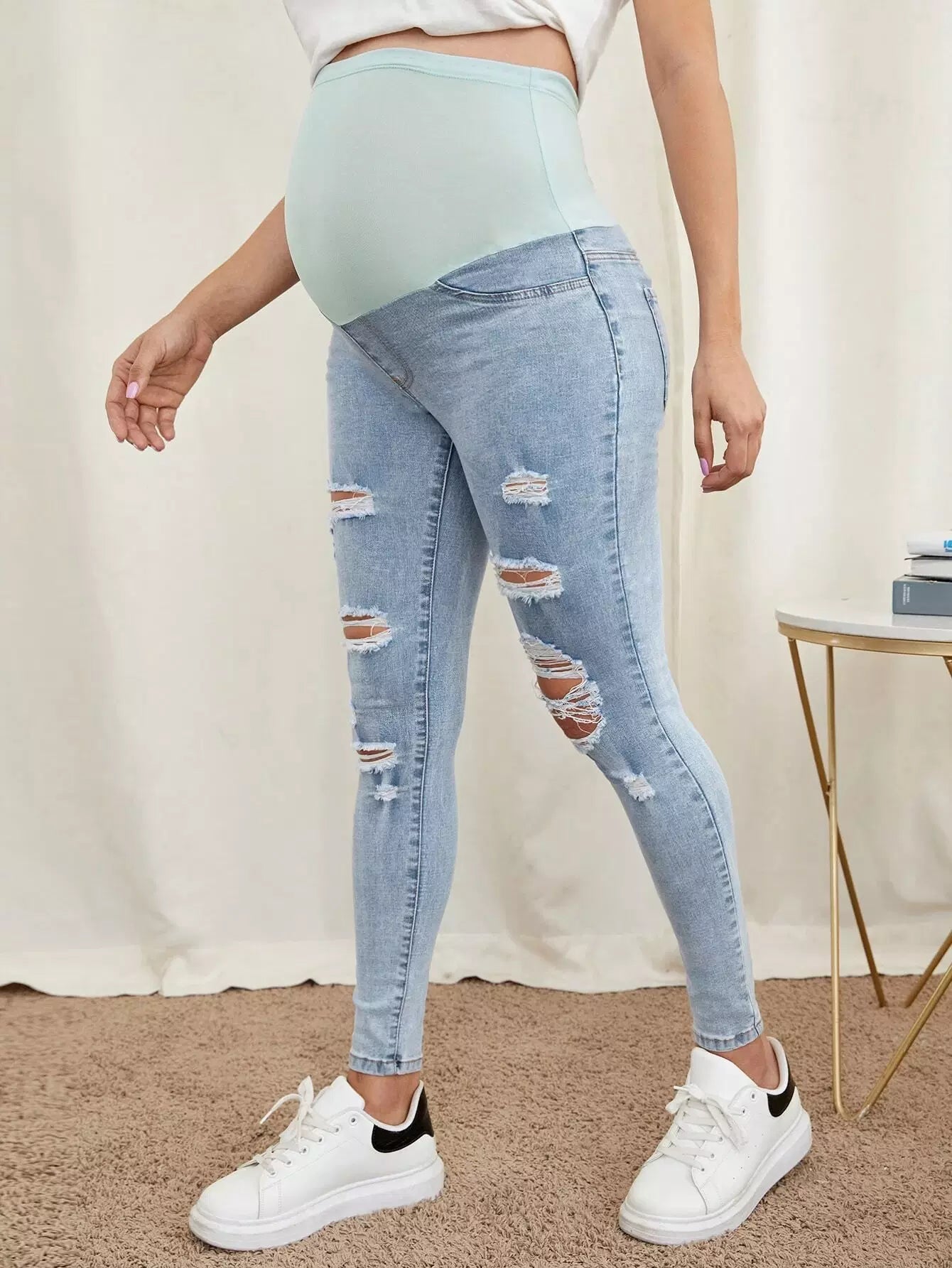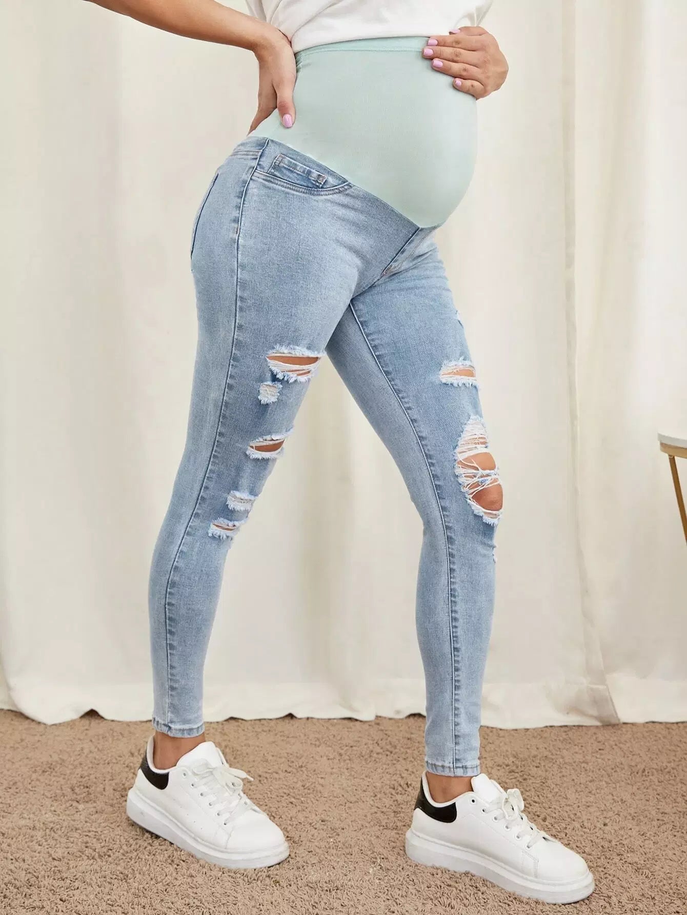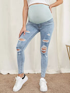 جينز جينز ضيق ممزق بحزام خصر عريض للحوامل