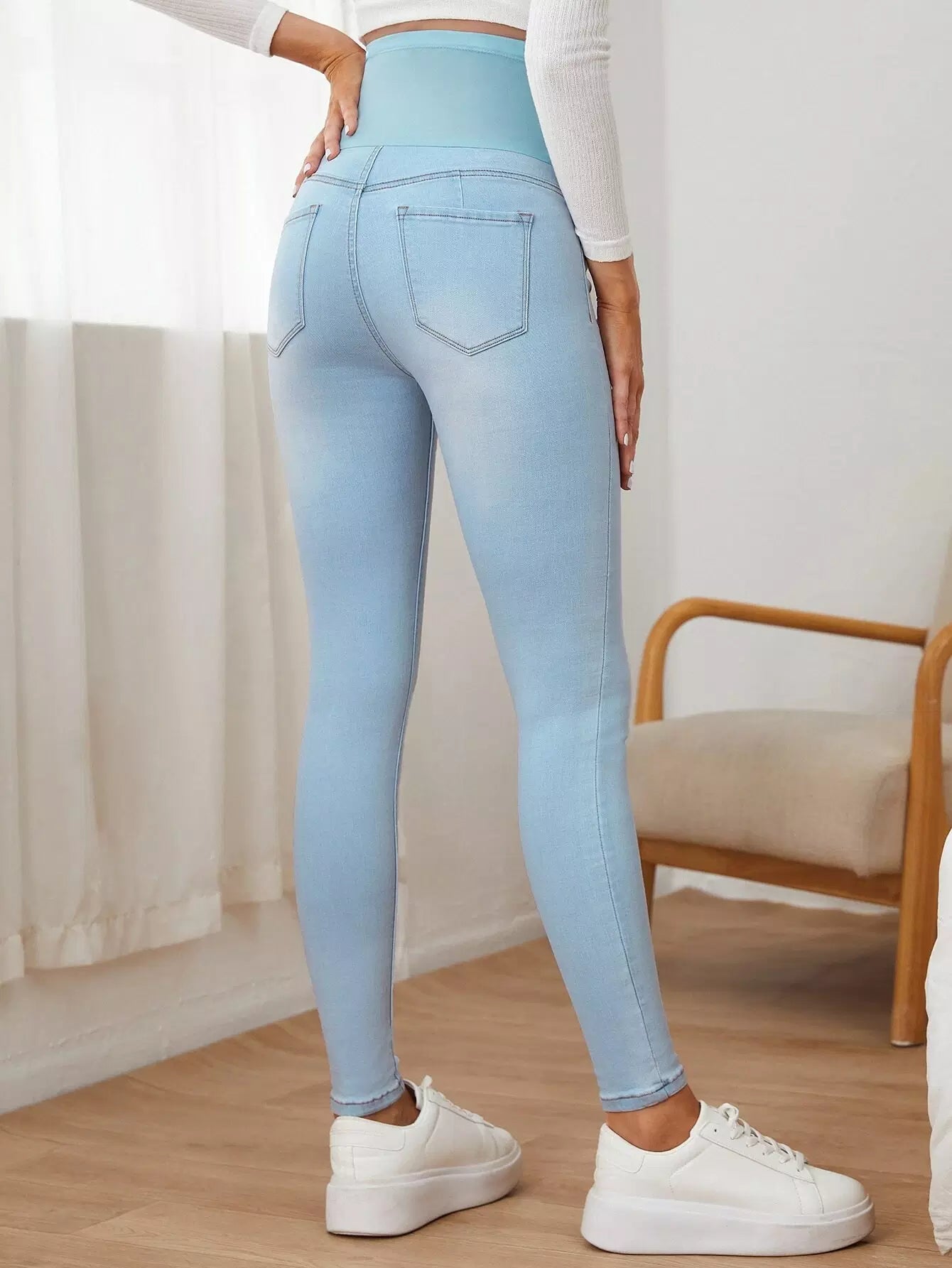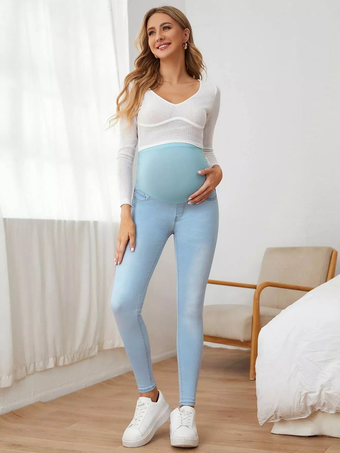 بنطلون جينز جينز سكيني بحزام خصر عريض للحوامل