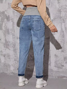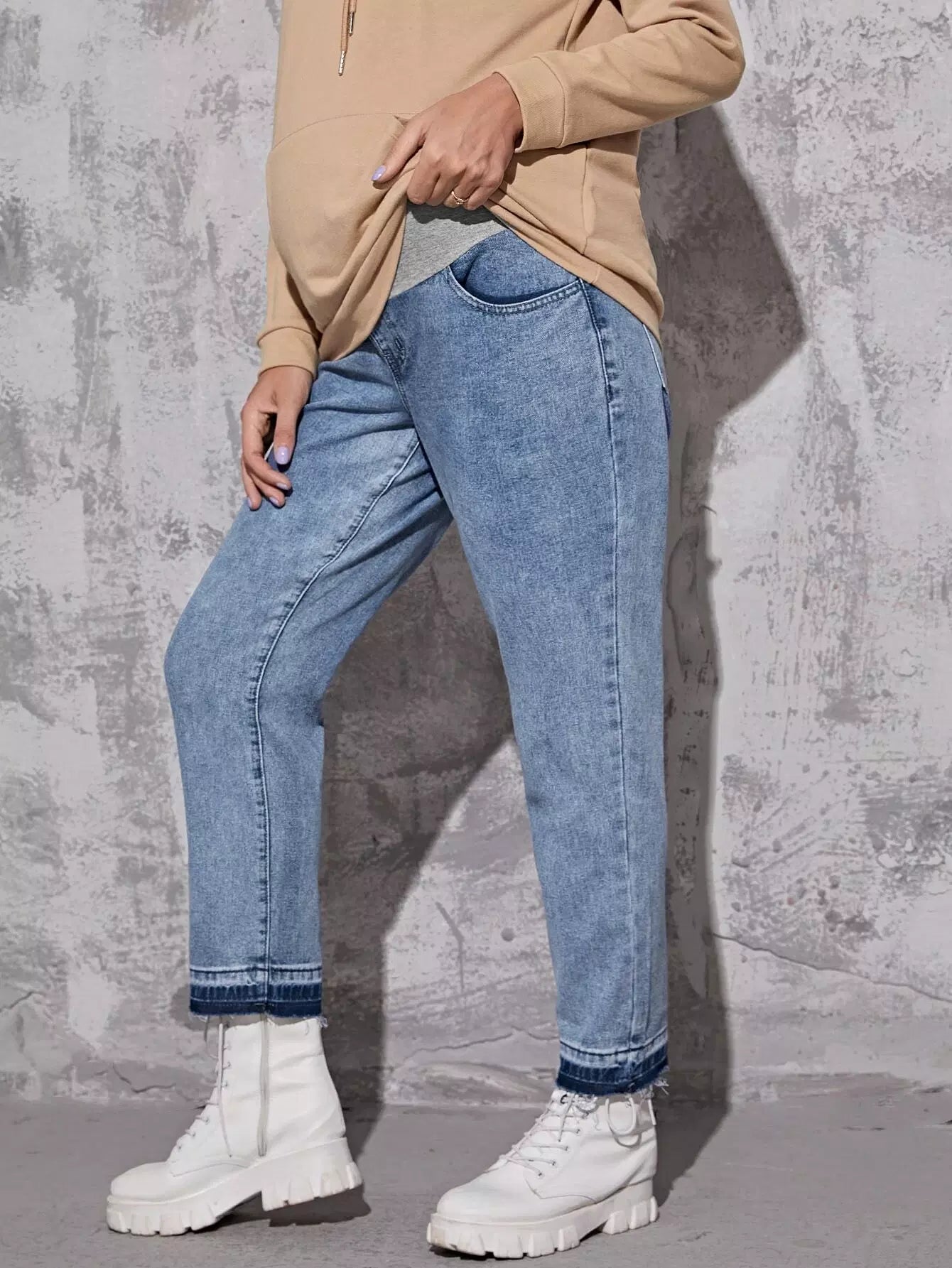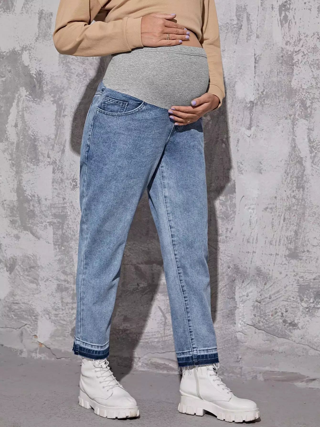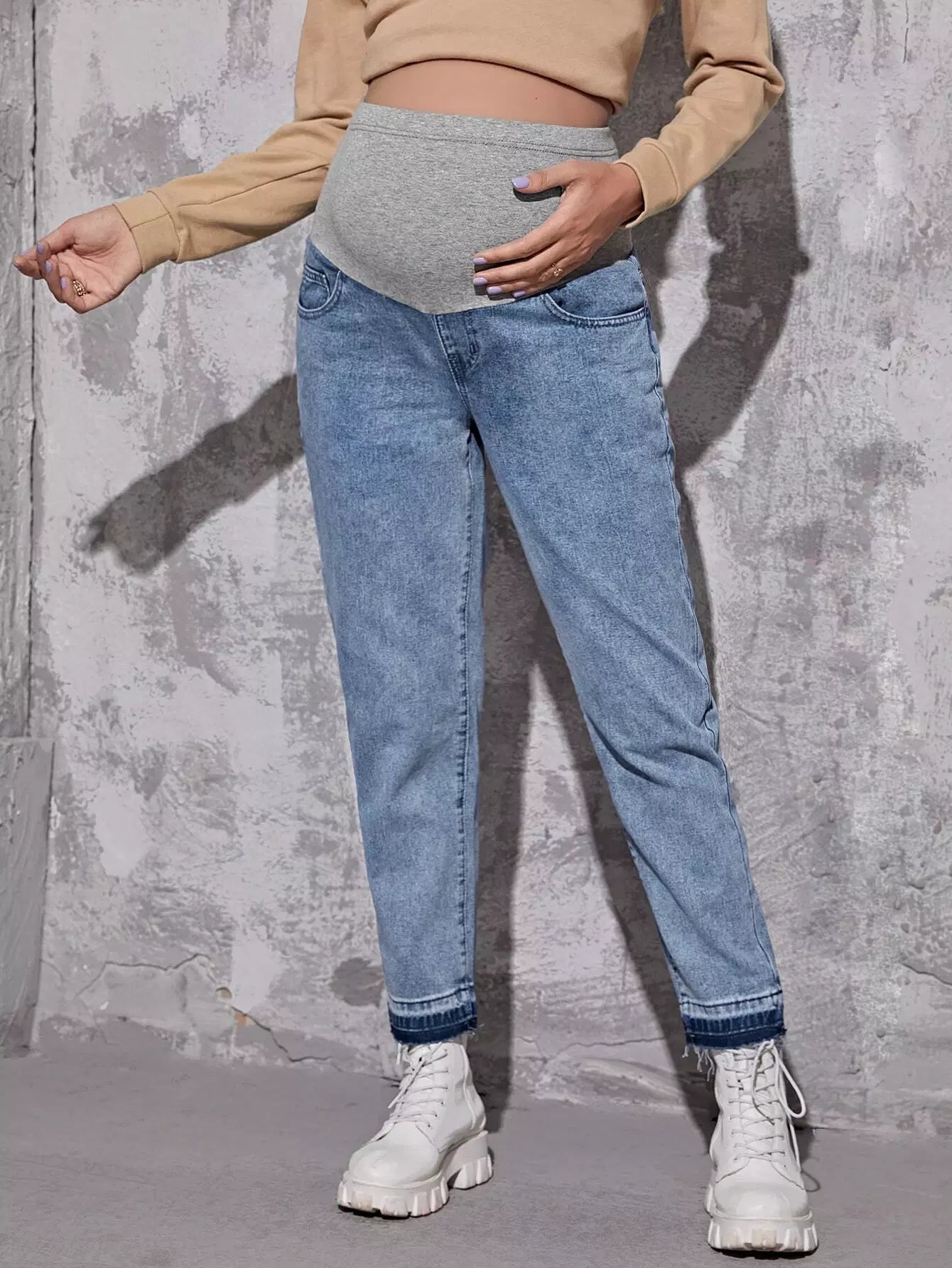 بنطلون جينز حزام عريض الخصر عريض الحواف بحواف مهترئة للأمهات