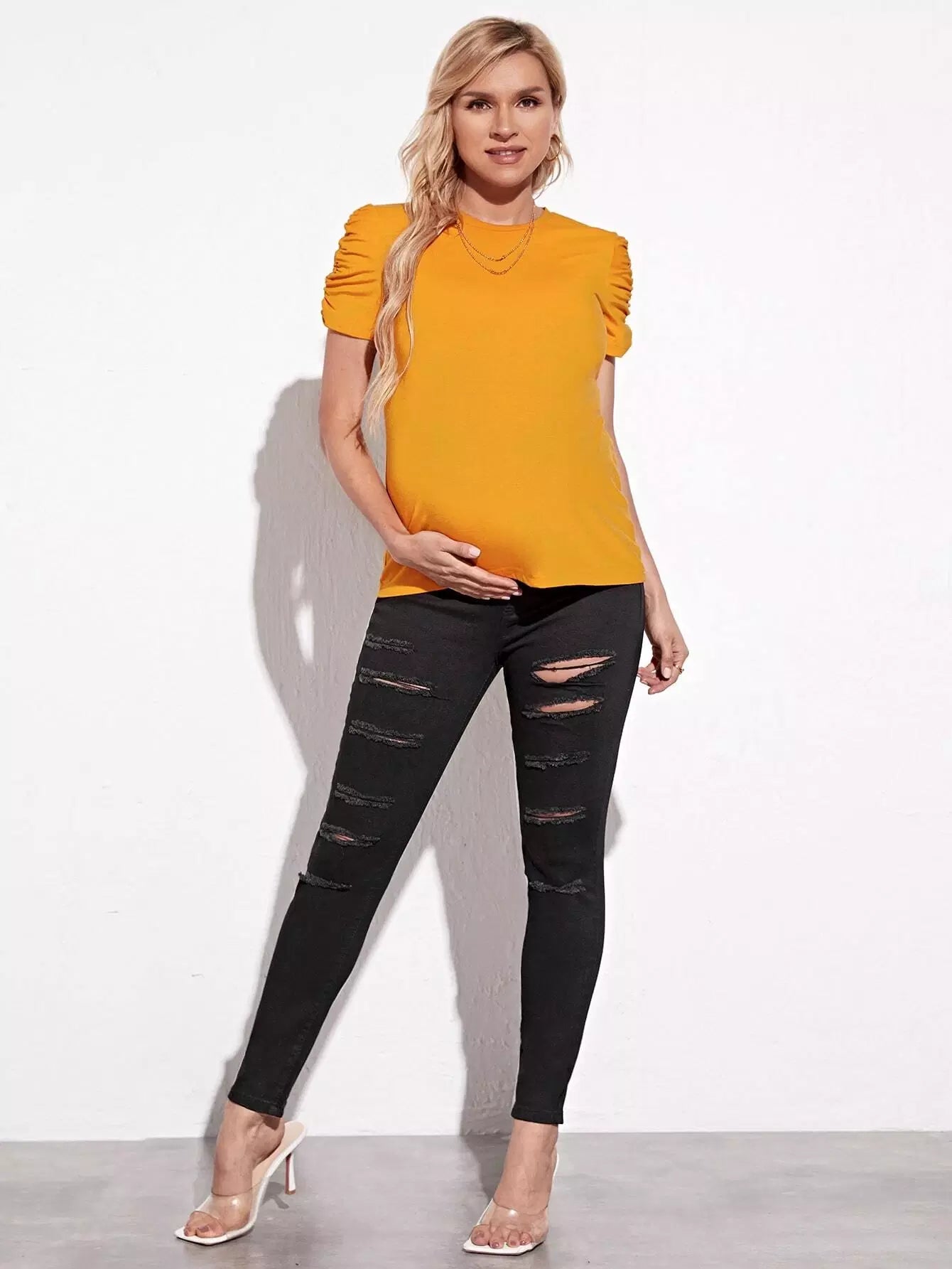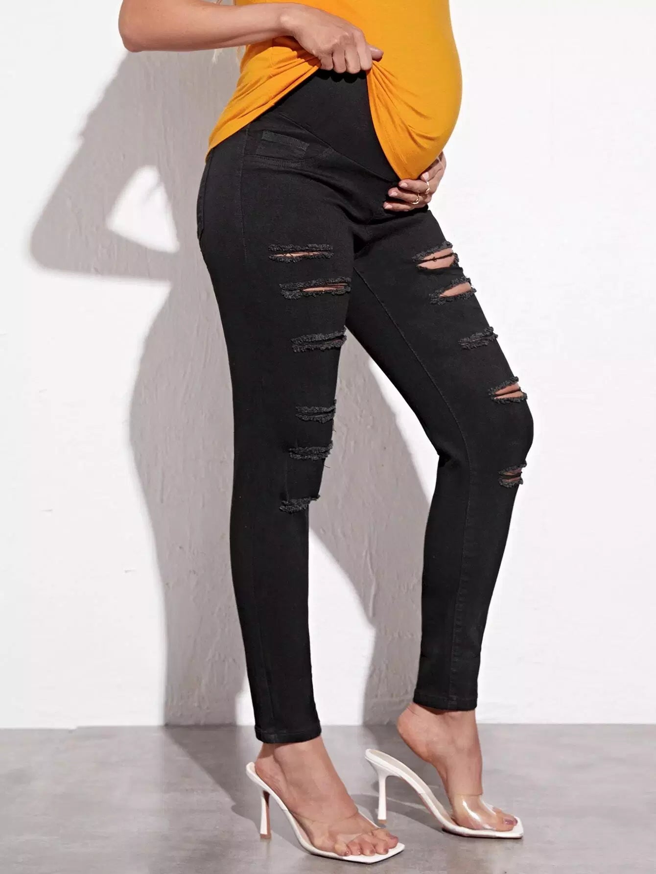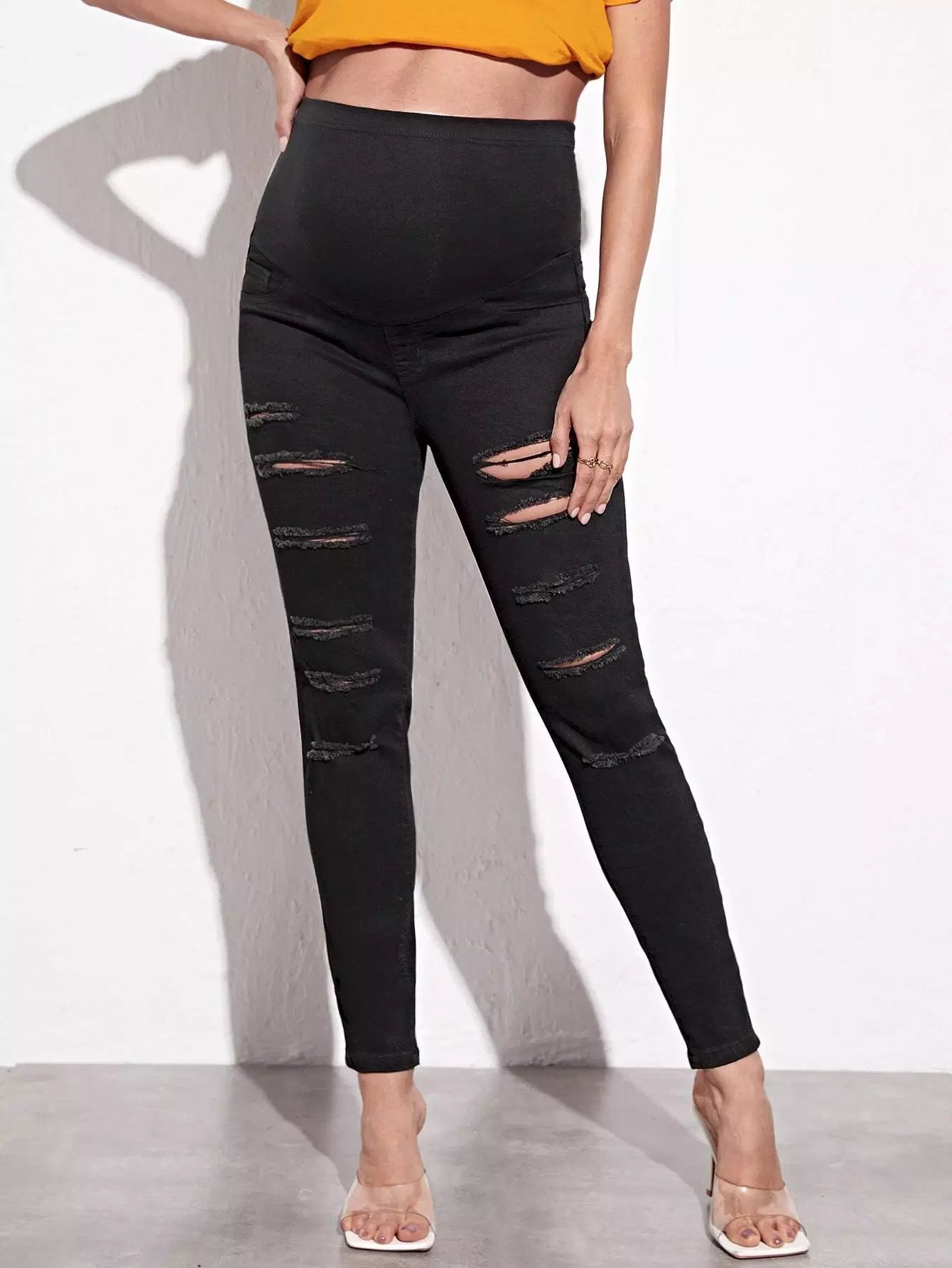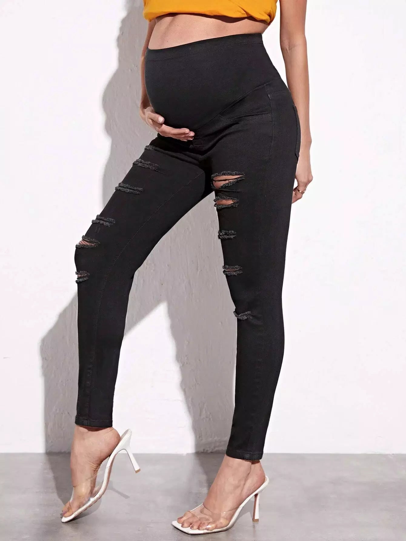 الأطفال - بنطال جينز ضيق وممزق عند الخصر للحوامل