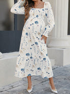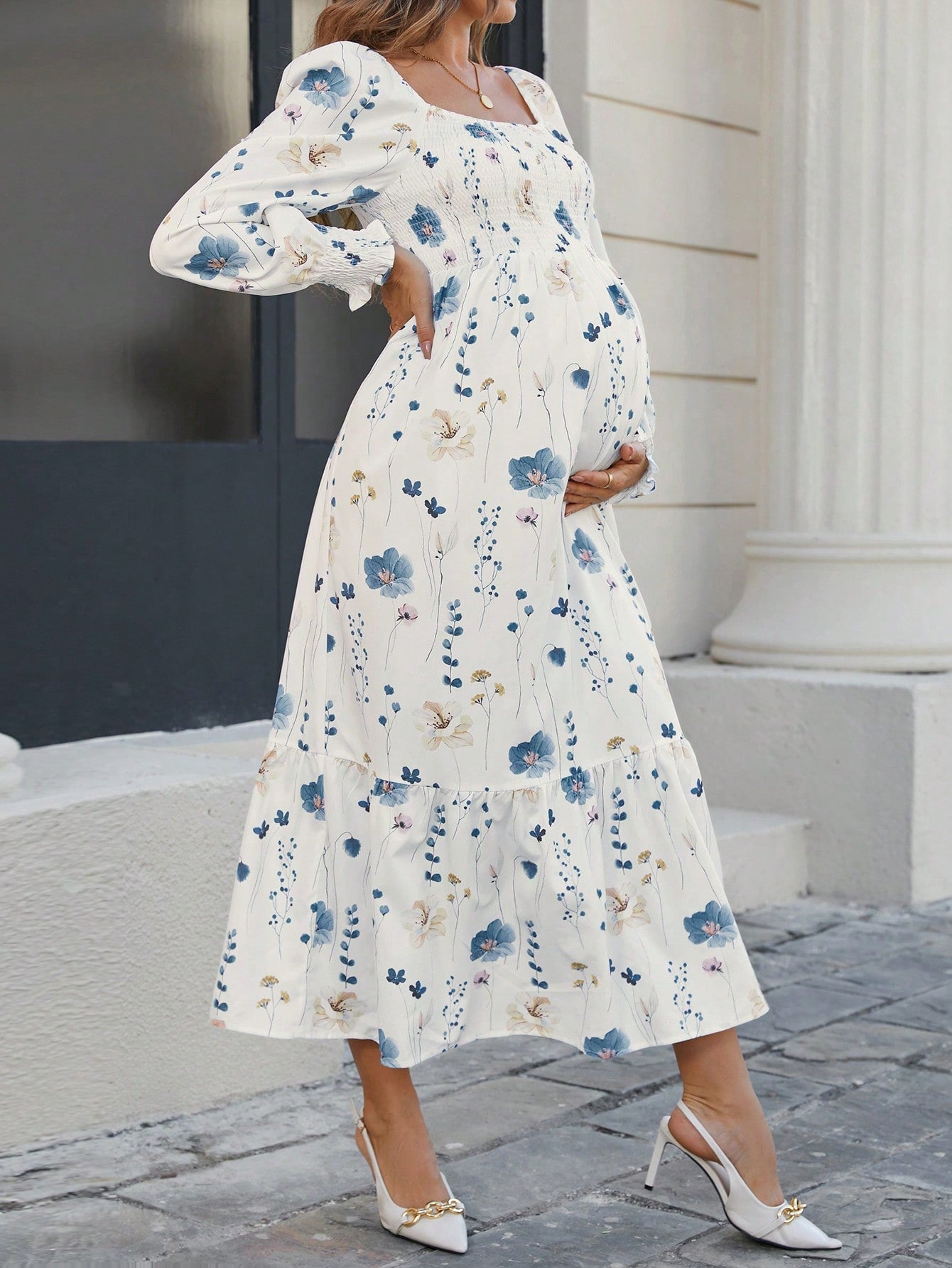 Maternity Casual Floral All-Over Print Long Dress, Autumn