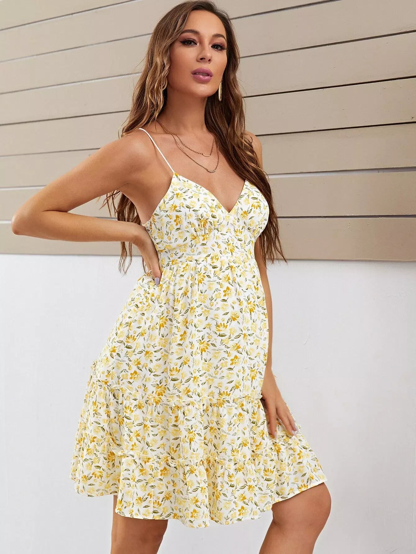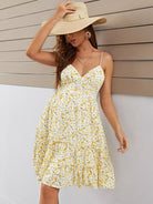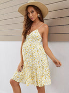 فستان كامي للحوامل مزين بالزهور الصغيرة مع حافة مكشكشة