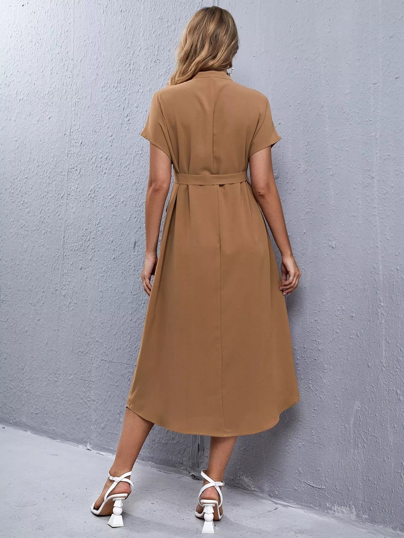 للأطفال - فستان بحزام للحوامل بأكمام جناح الخفاش وفتحة نصف أزرار