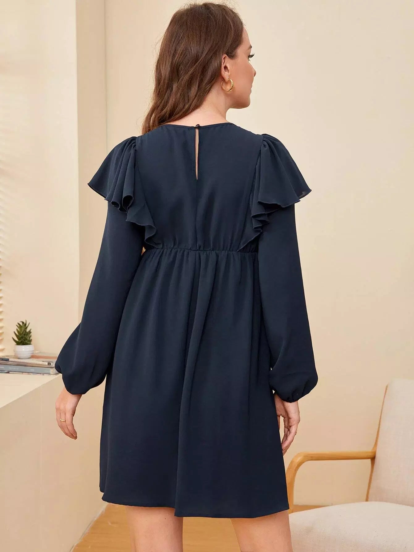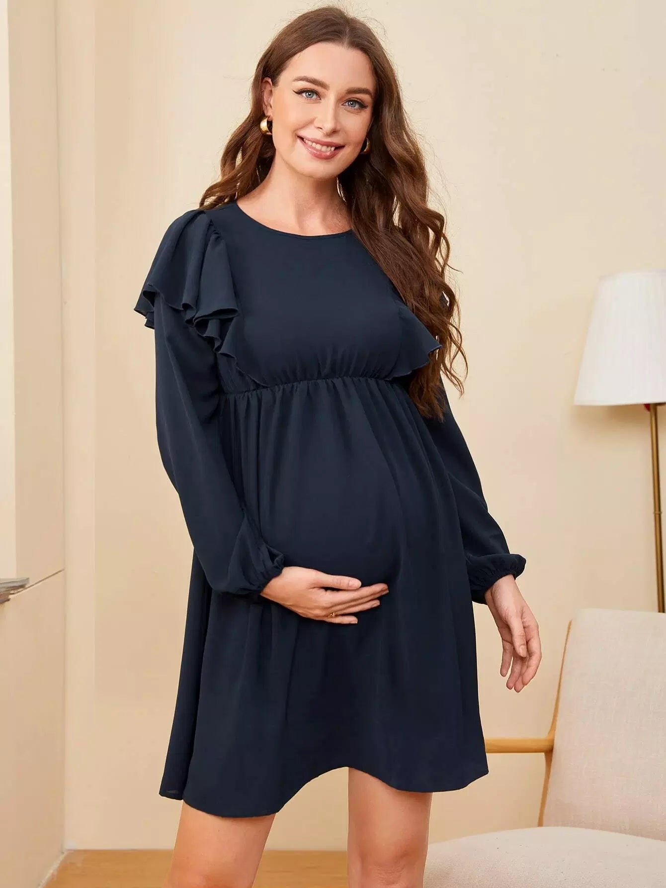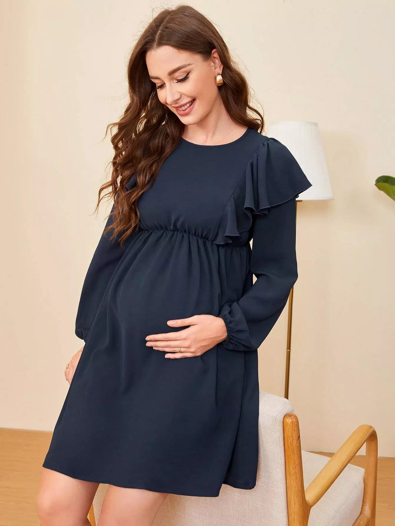 فستان بيبيدول بفتحة صدر بفتحة ظهر بفتحة صدر الأمومة مزين بكشكش