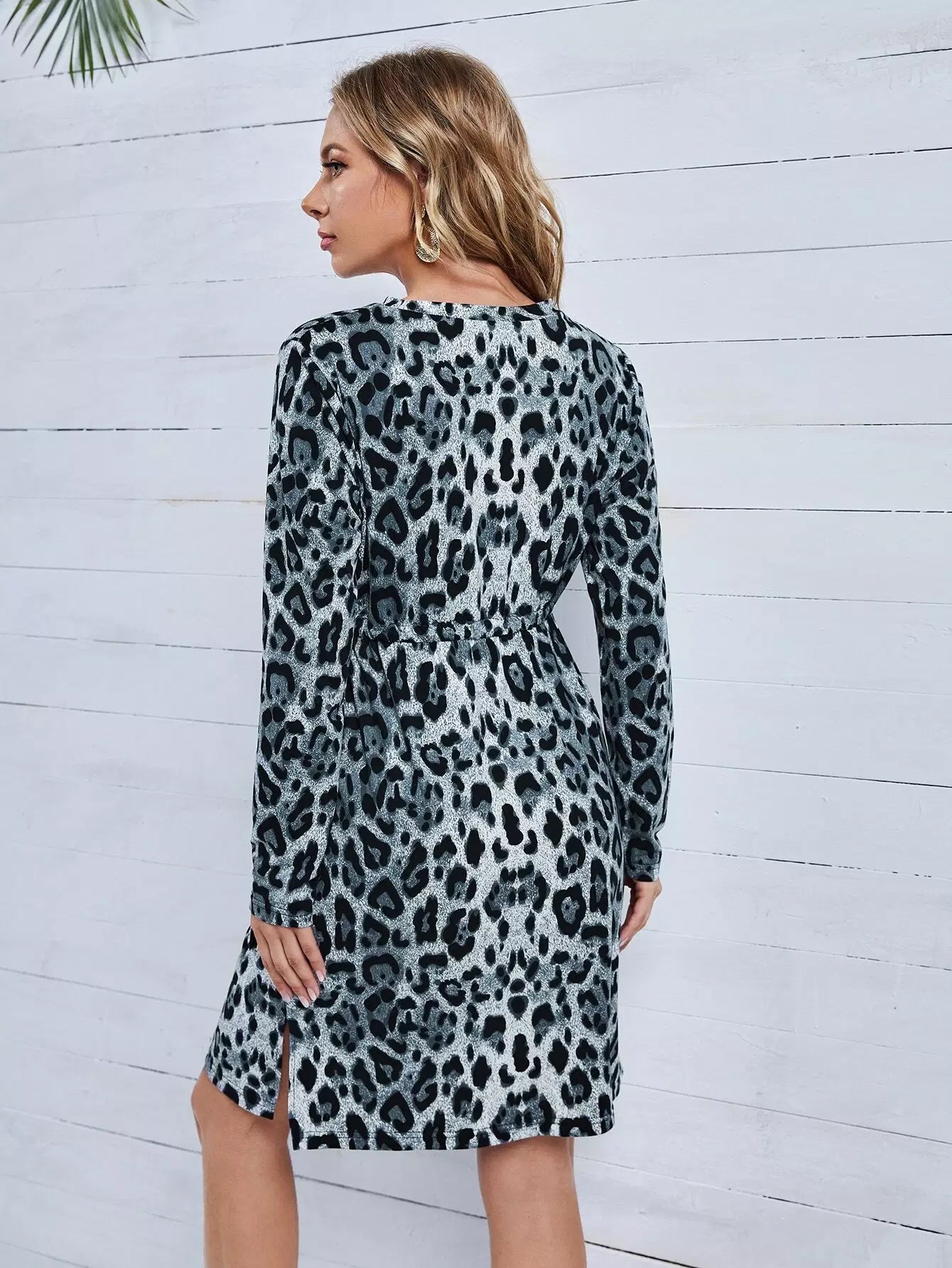 فستان الأمومة بطبعة جلد النمر مع رباط الخصر