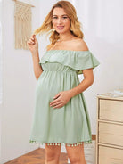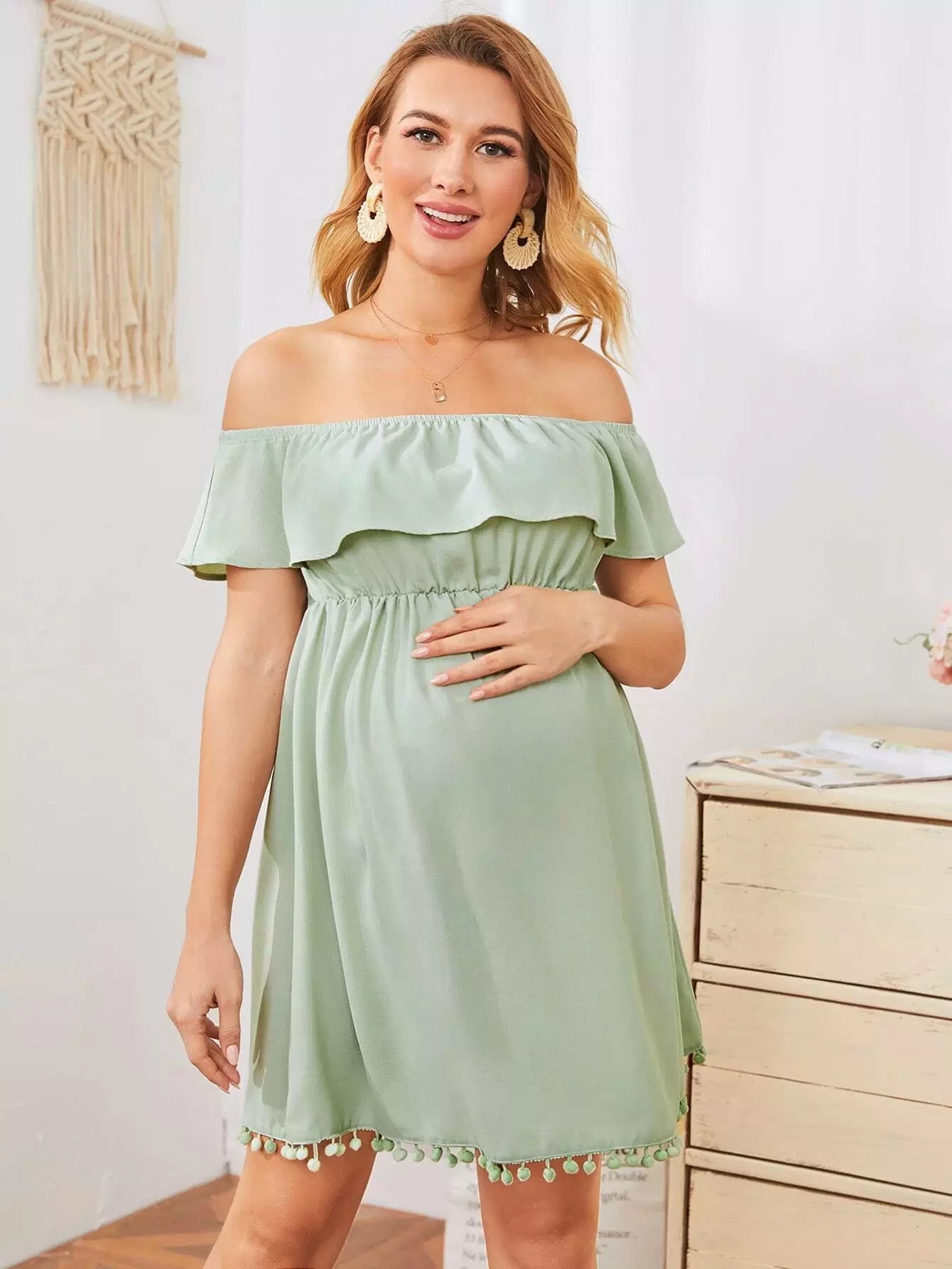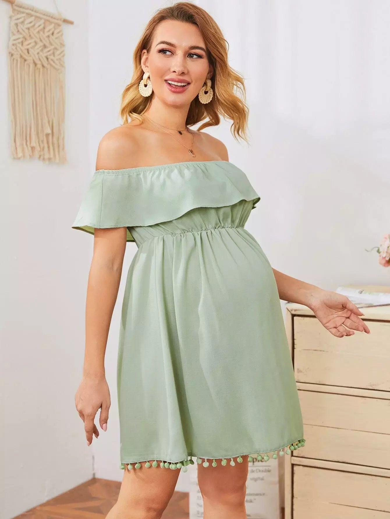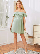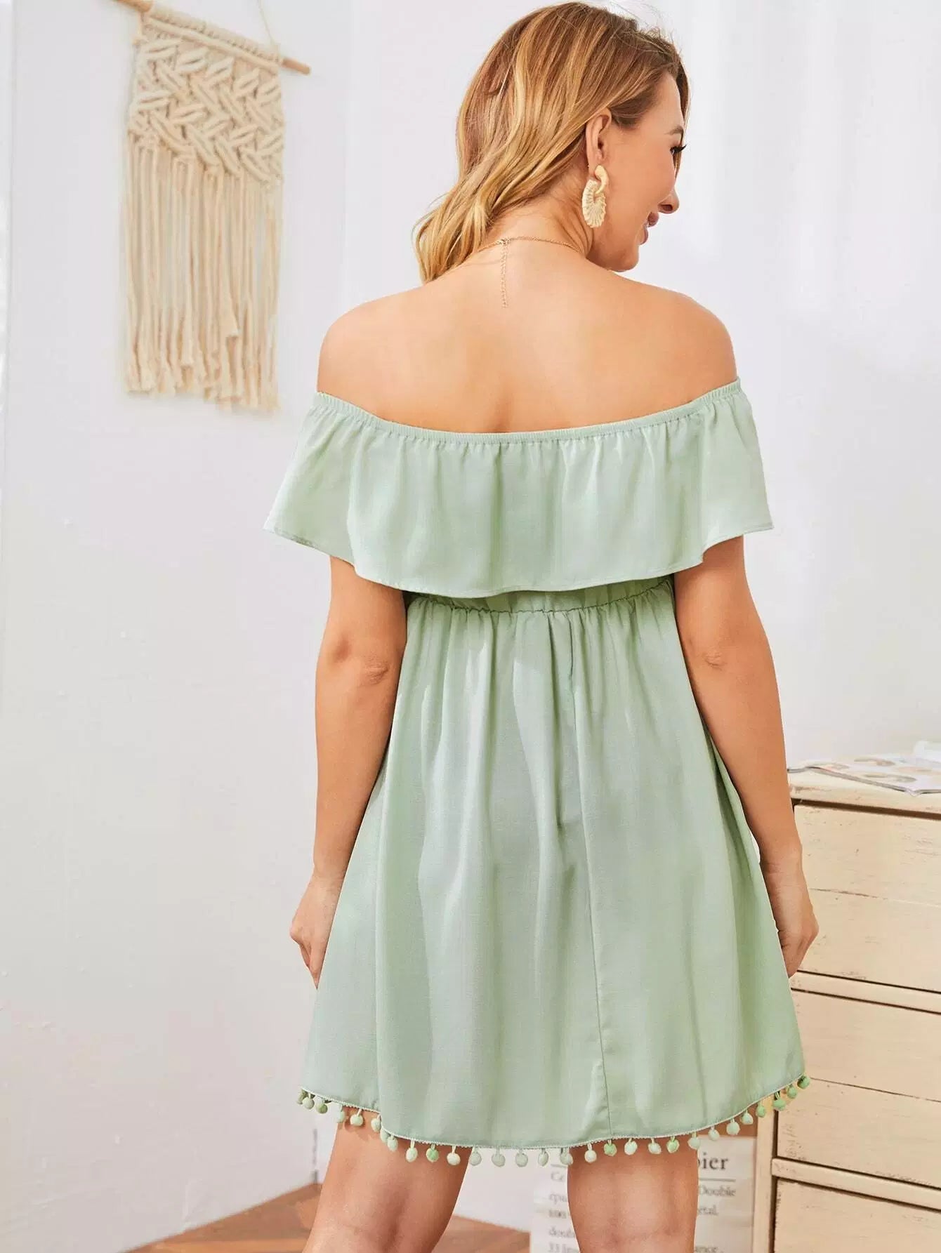 فستان حمالات مكشوف الأكتاف مطوي من الأمام بحافة أمامية