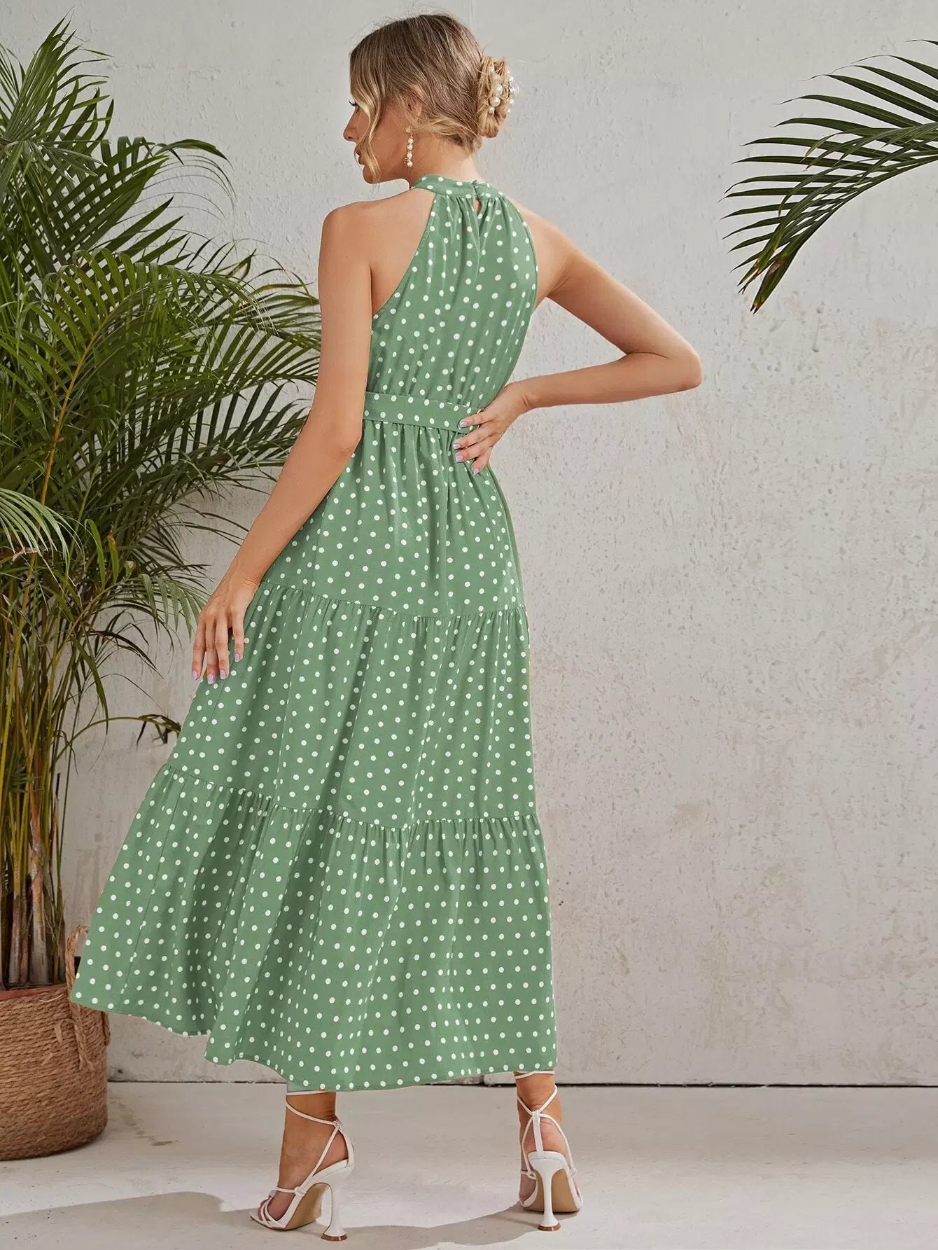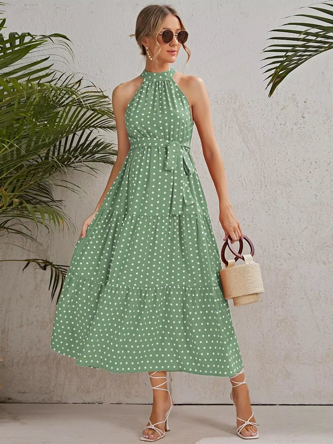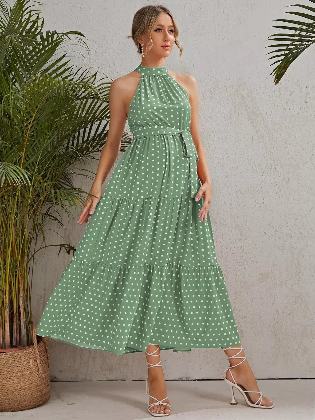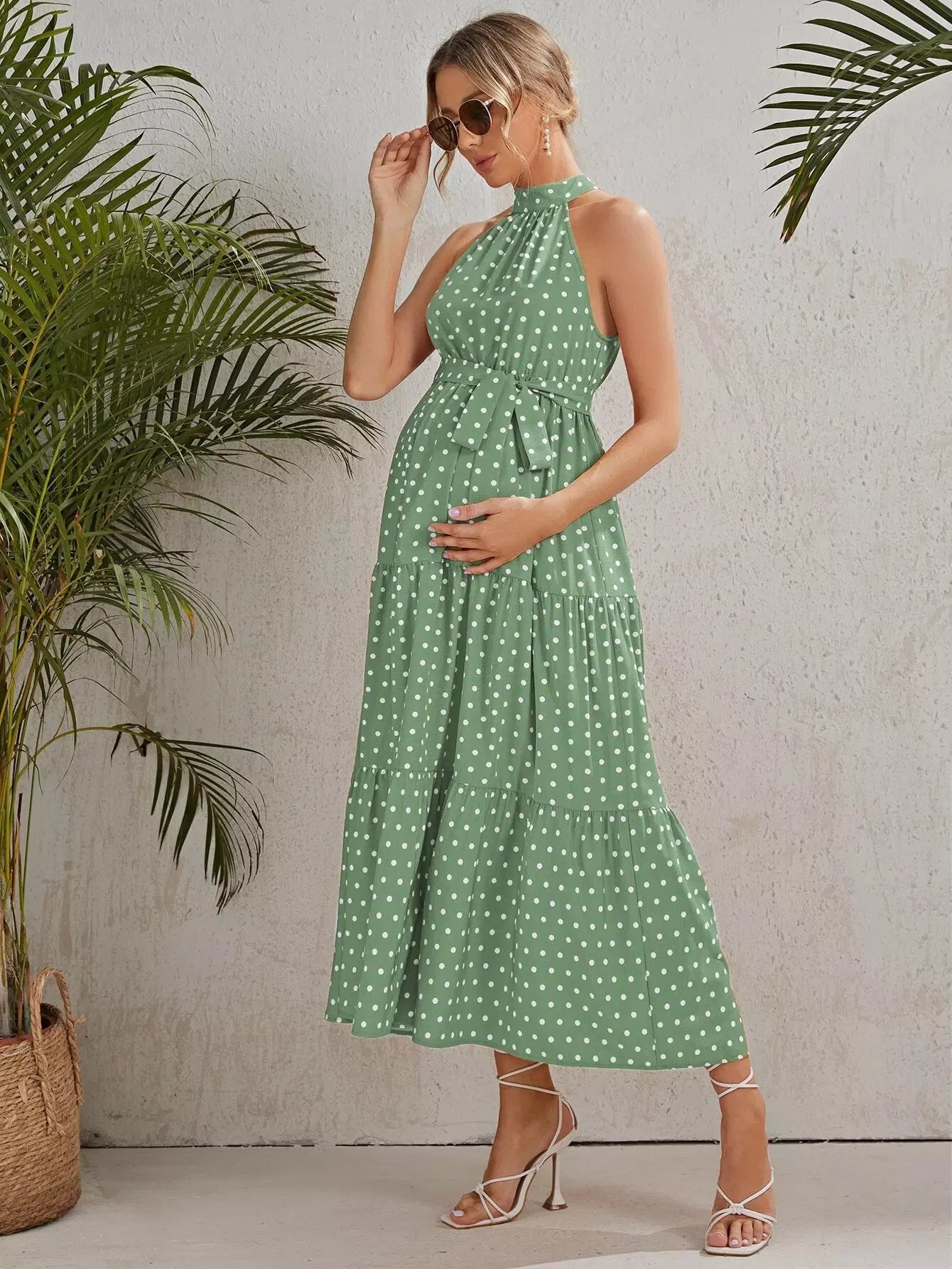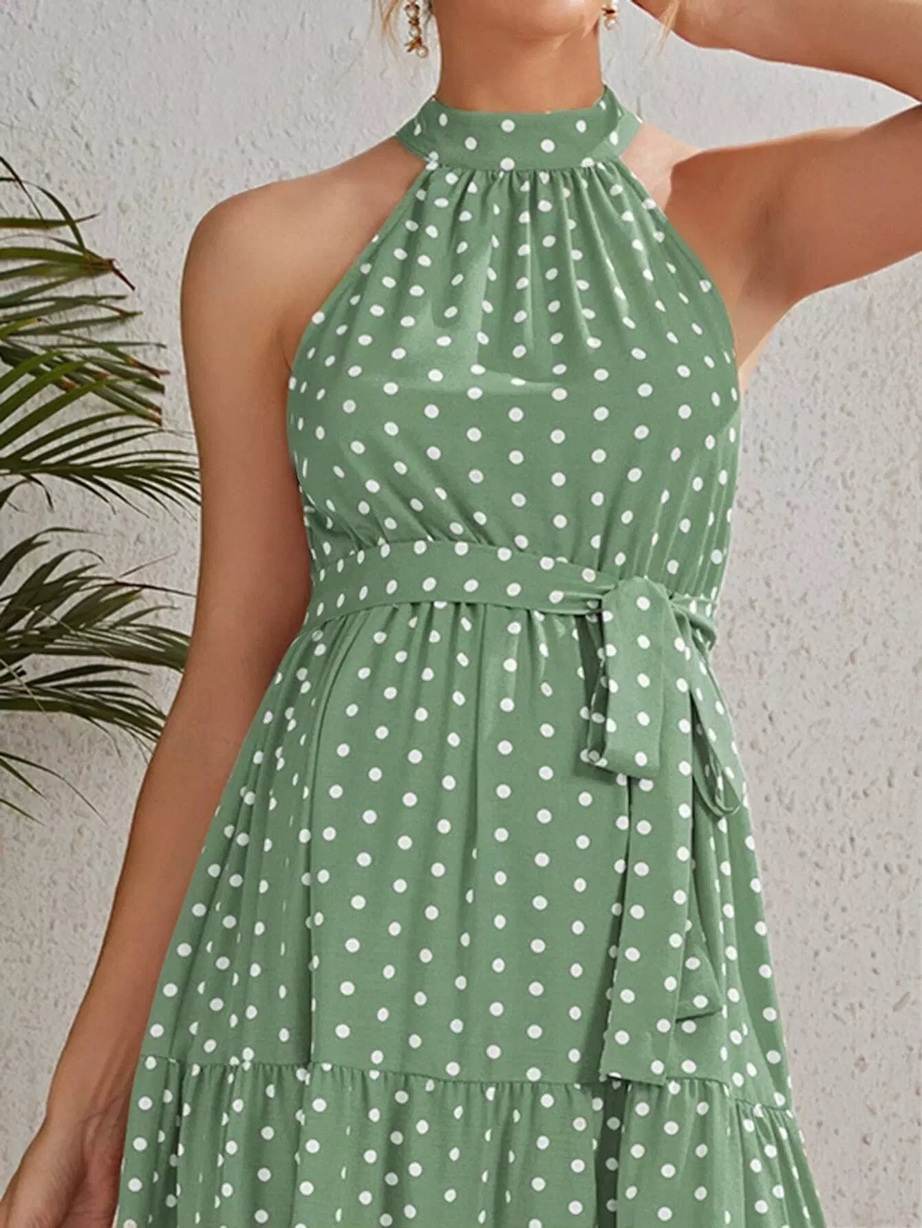 فستان للحوامل منقّط وكشكش ذاتي بدون حزام
