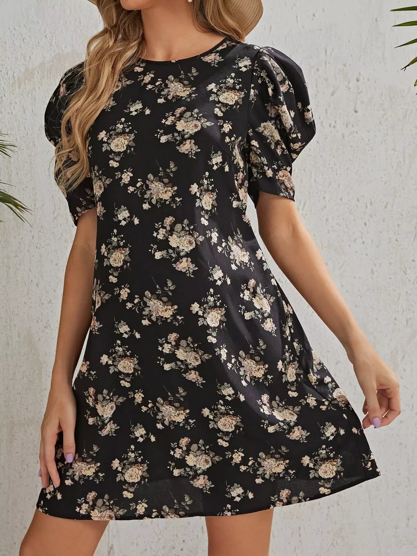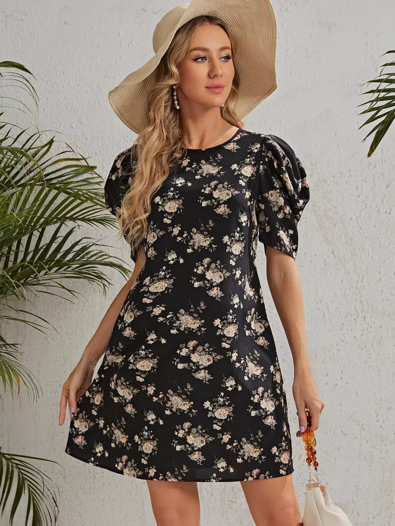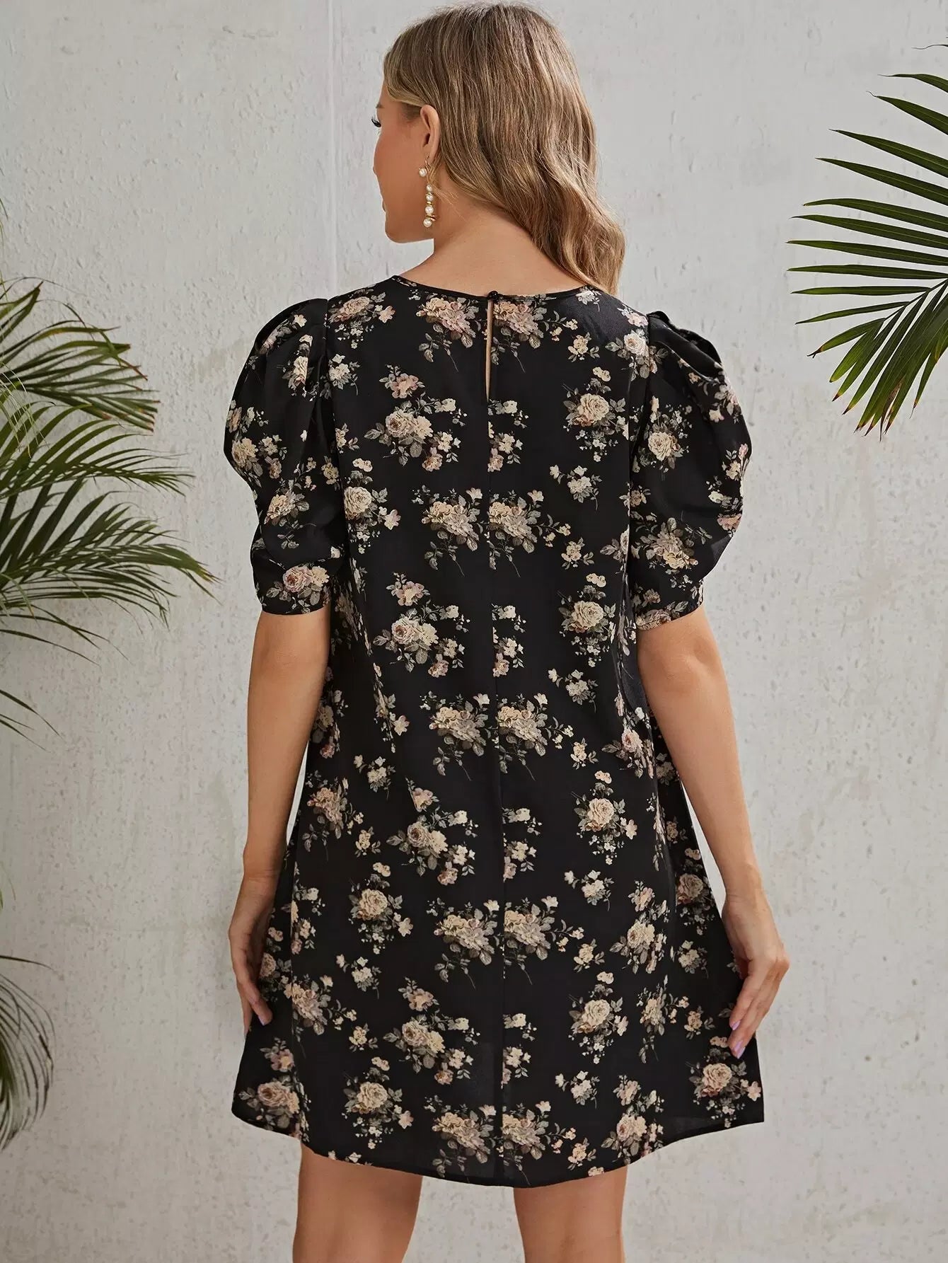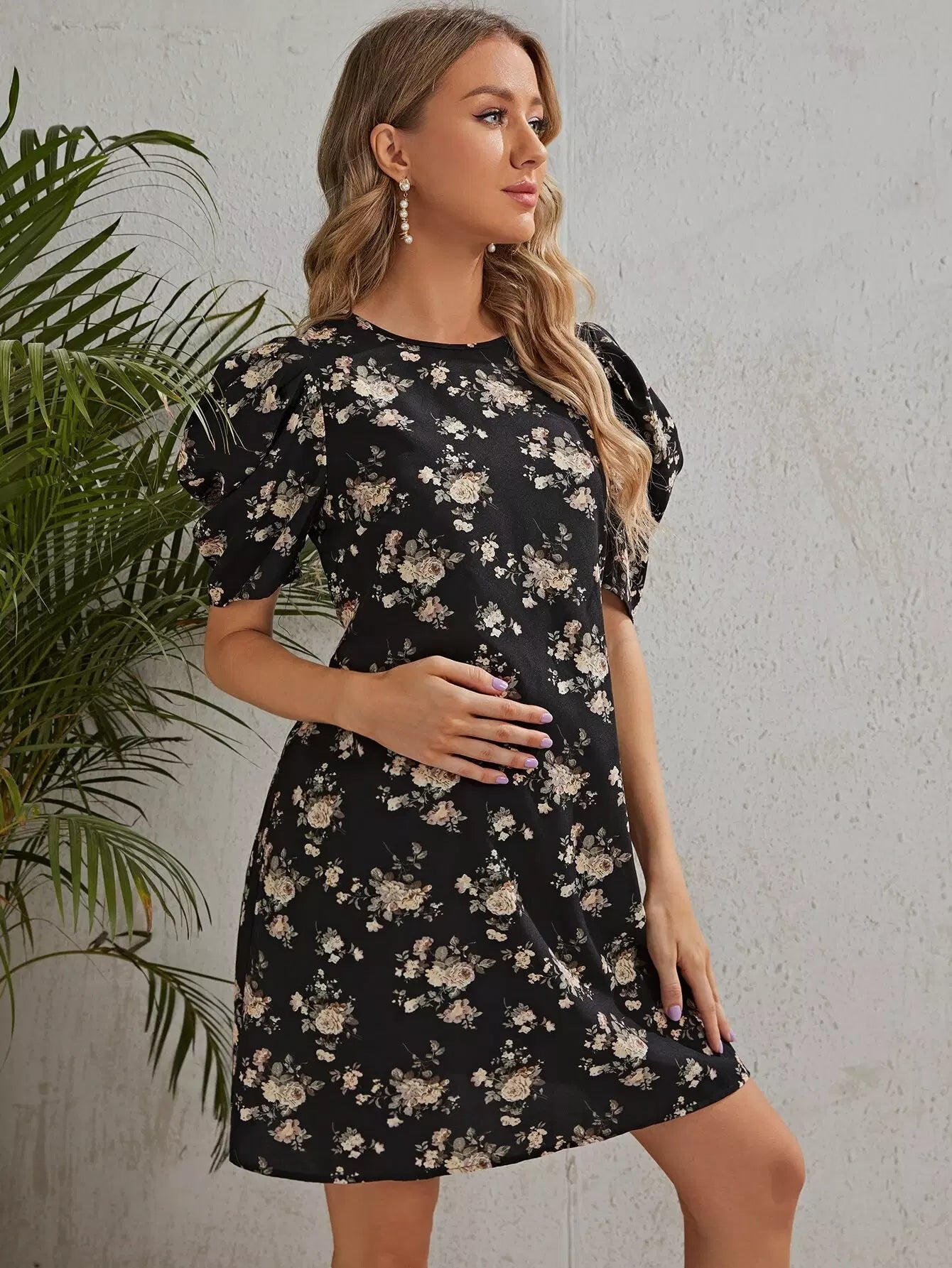 فستان الأمومة بطبعة الأزهار بأكمام منفوخة