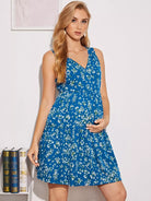 فستان مزين بكشكش بحواف مكشكشة ومزخرف بنقوش زهور للحوامل