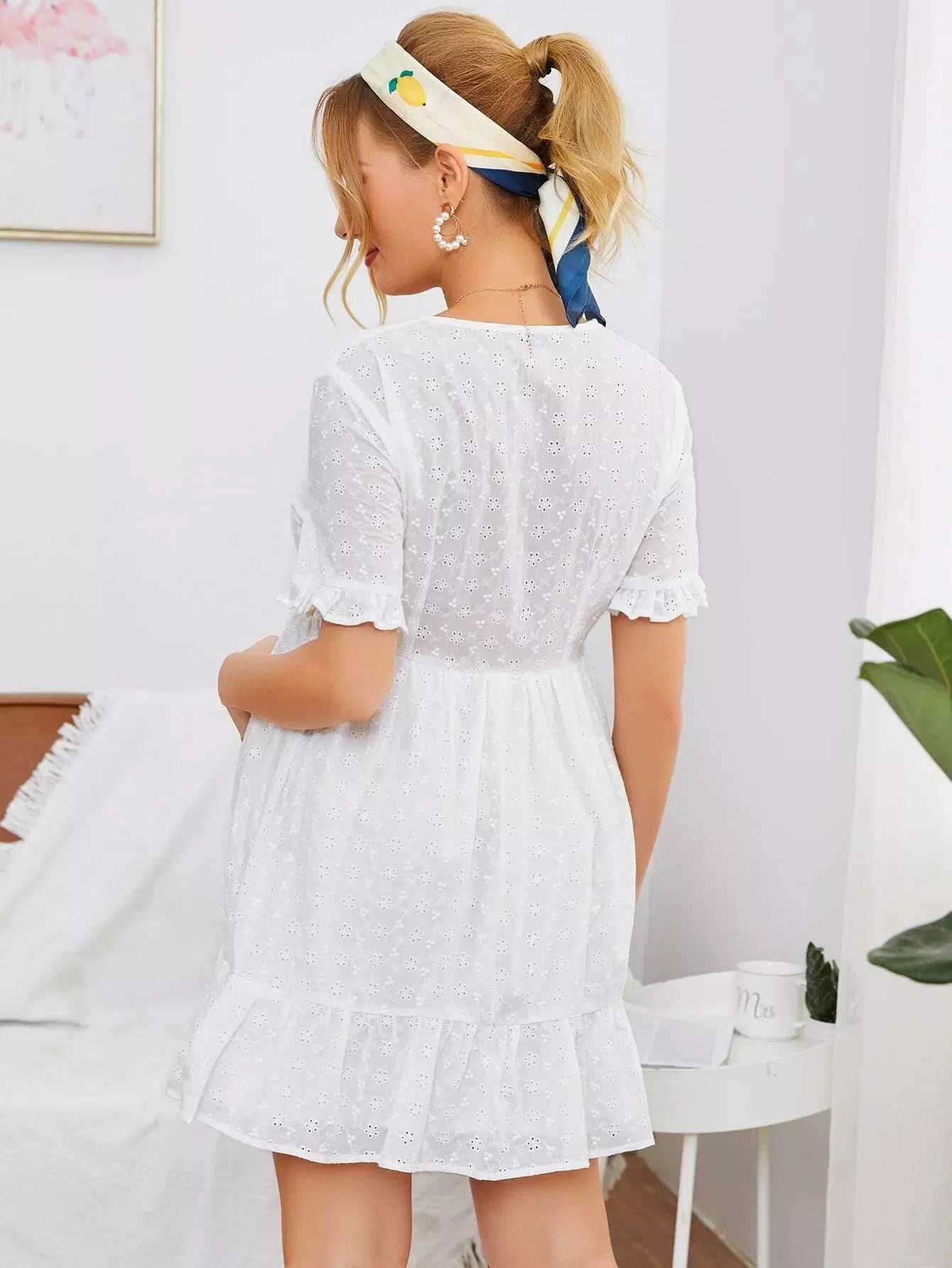 فستان شيفي بياقة على شكل حرف V بياقة على شكل حرف V كشكش للحمل