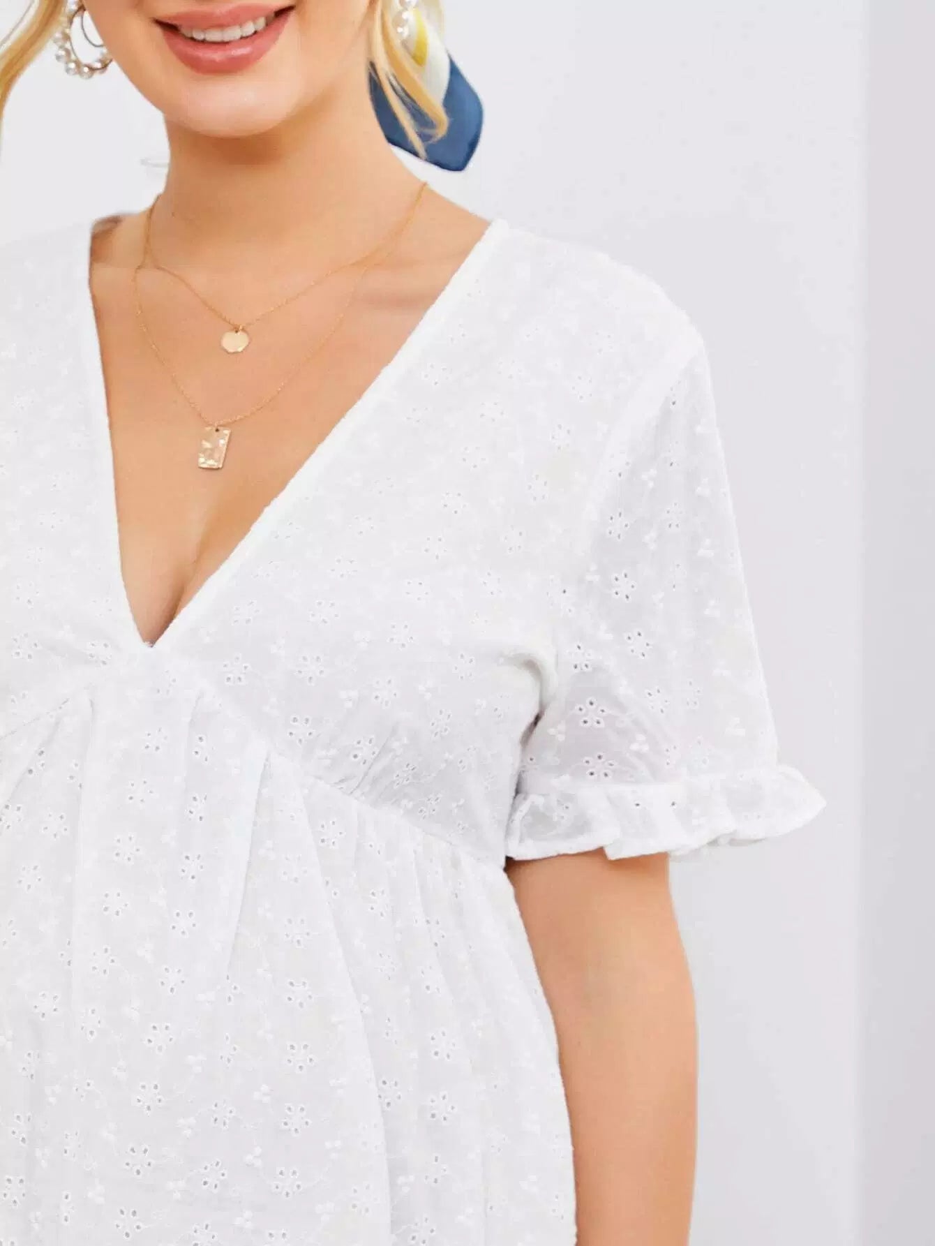 الأطفال - فستان شيفي للحوامل بياقة على شكل حرف V وأكمام مكشكشة