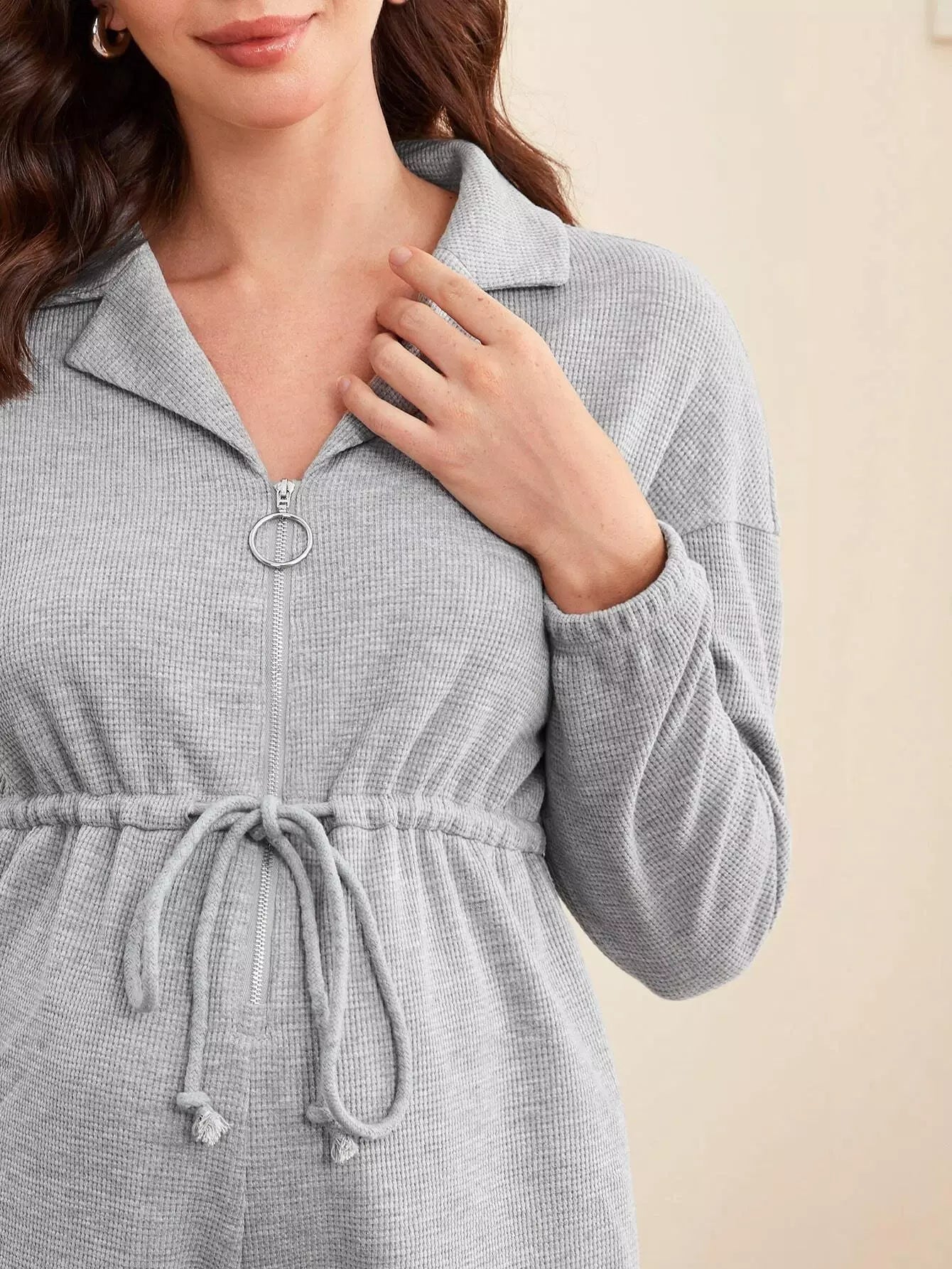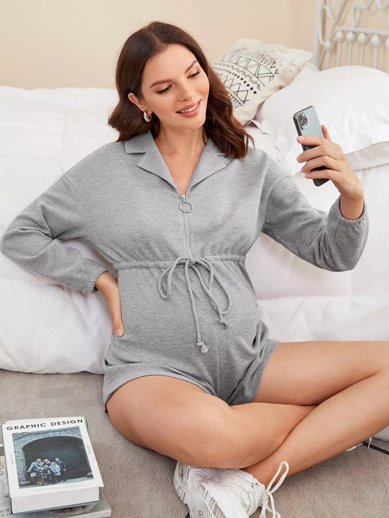 رومبر للحوامل بسحّاب أمامي ورباط على الخصر
