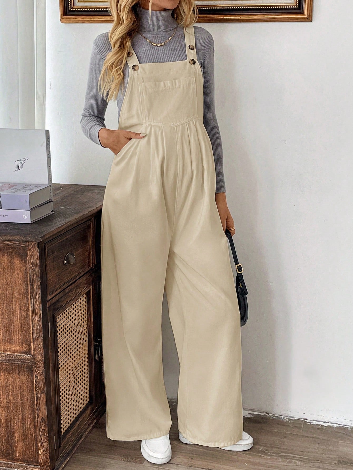 kids SHEIN Maternity Loose Fit Long Wide Leg Jeans Overalls