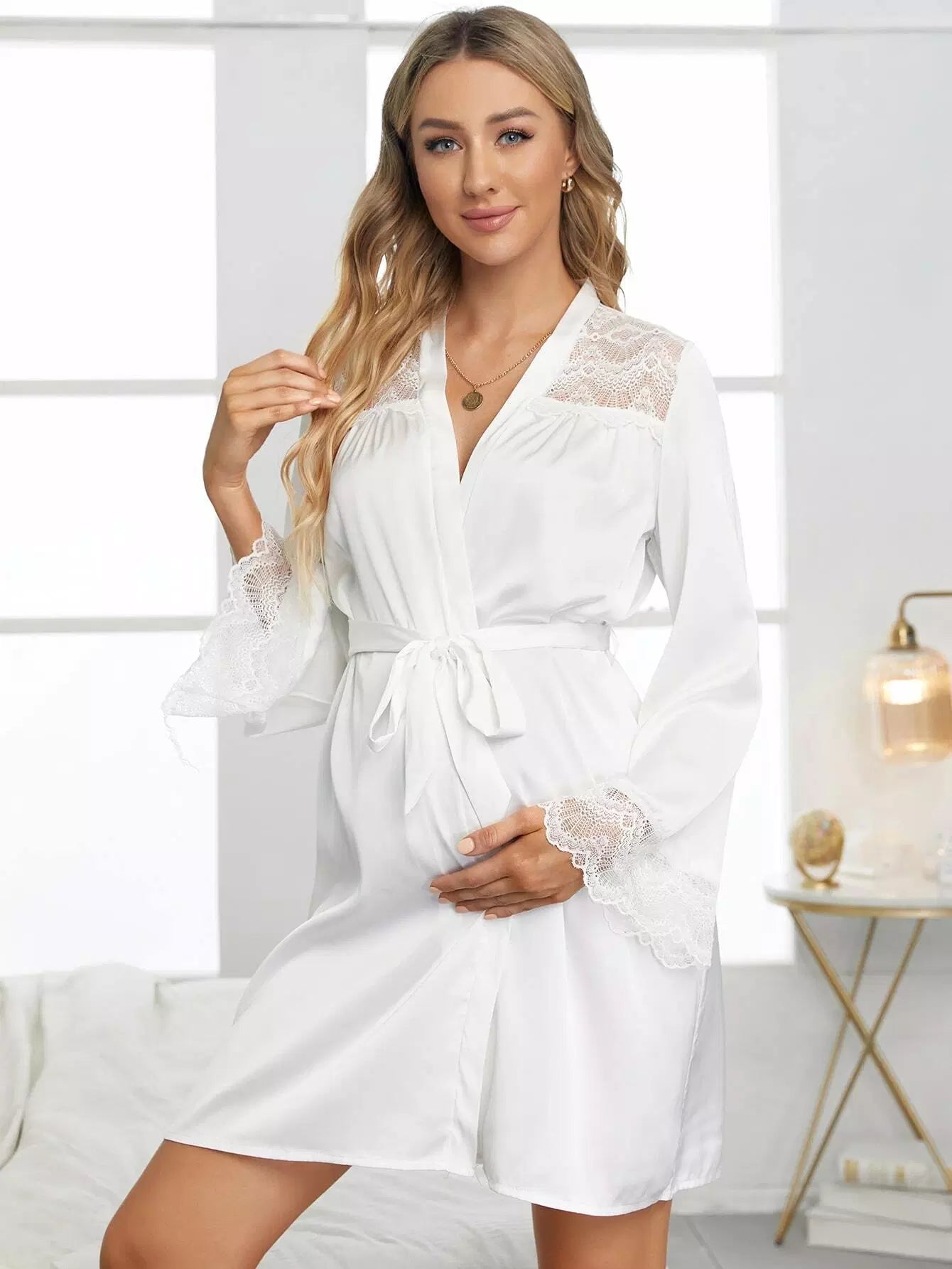 رداء ساتان من الدانتيل المتباين للأمومة بدون حزام