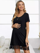 فستان نوم دانتيل برقبة دانتيل بلون مغاير للحوامل