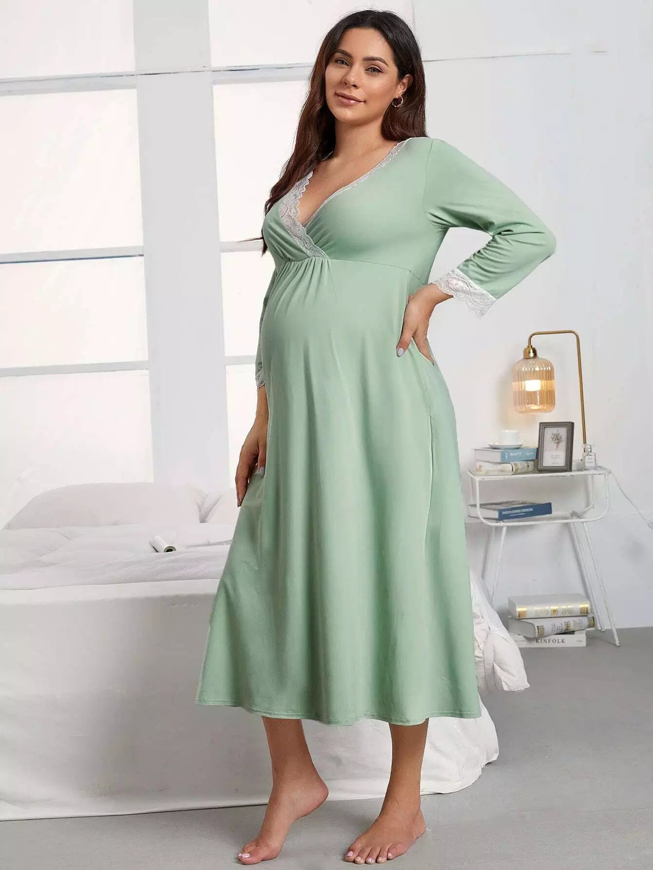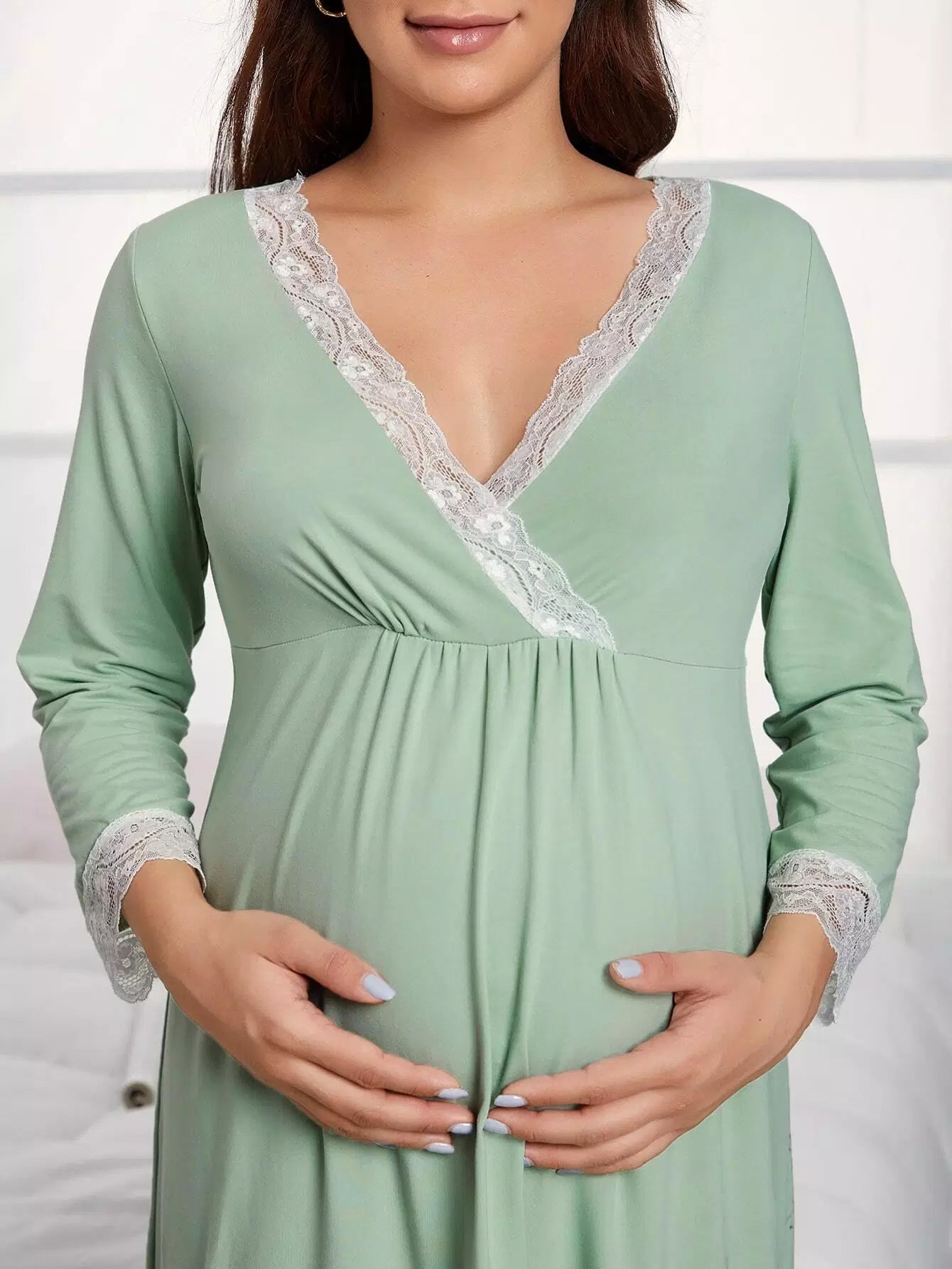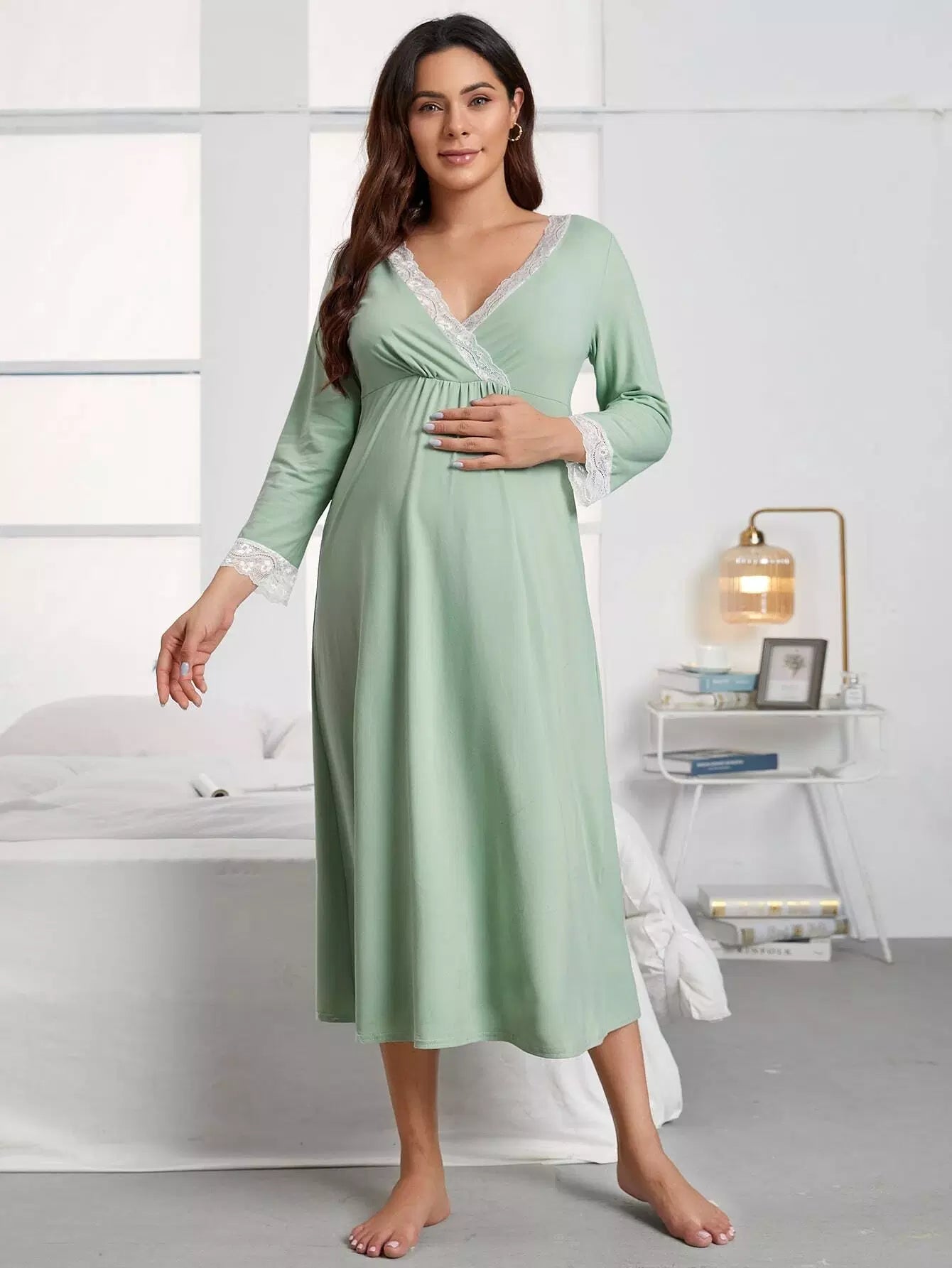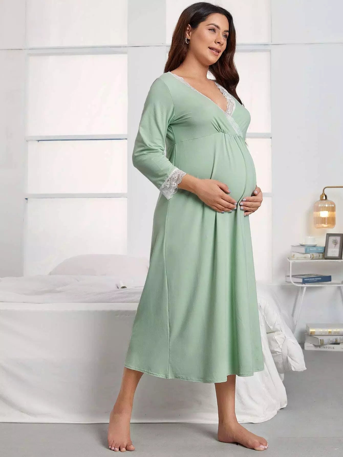الأطفال - فستان نوم للحوامل من الدانتيل الأمامي المتباين