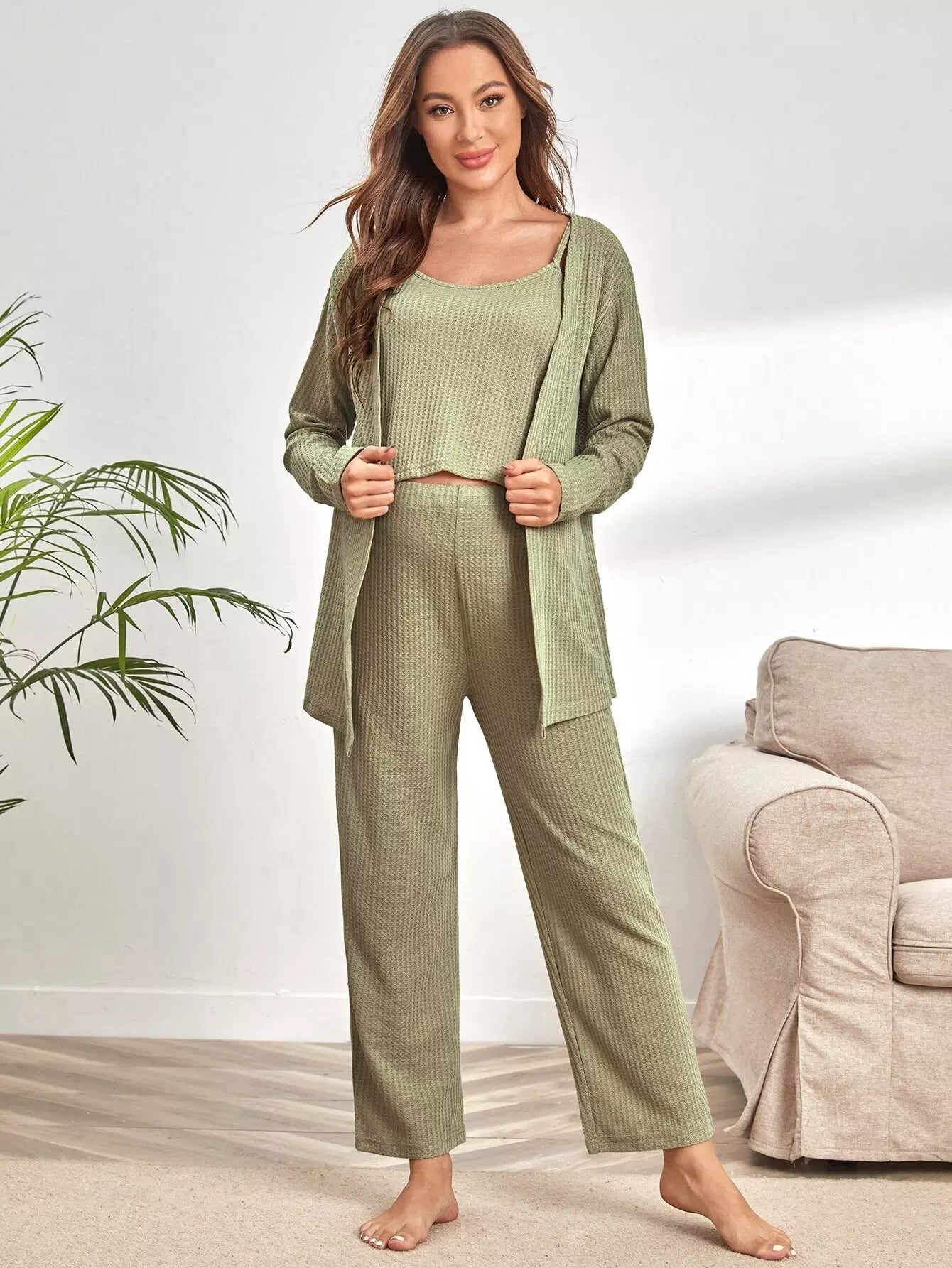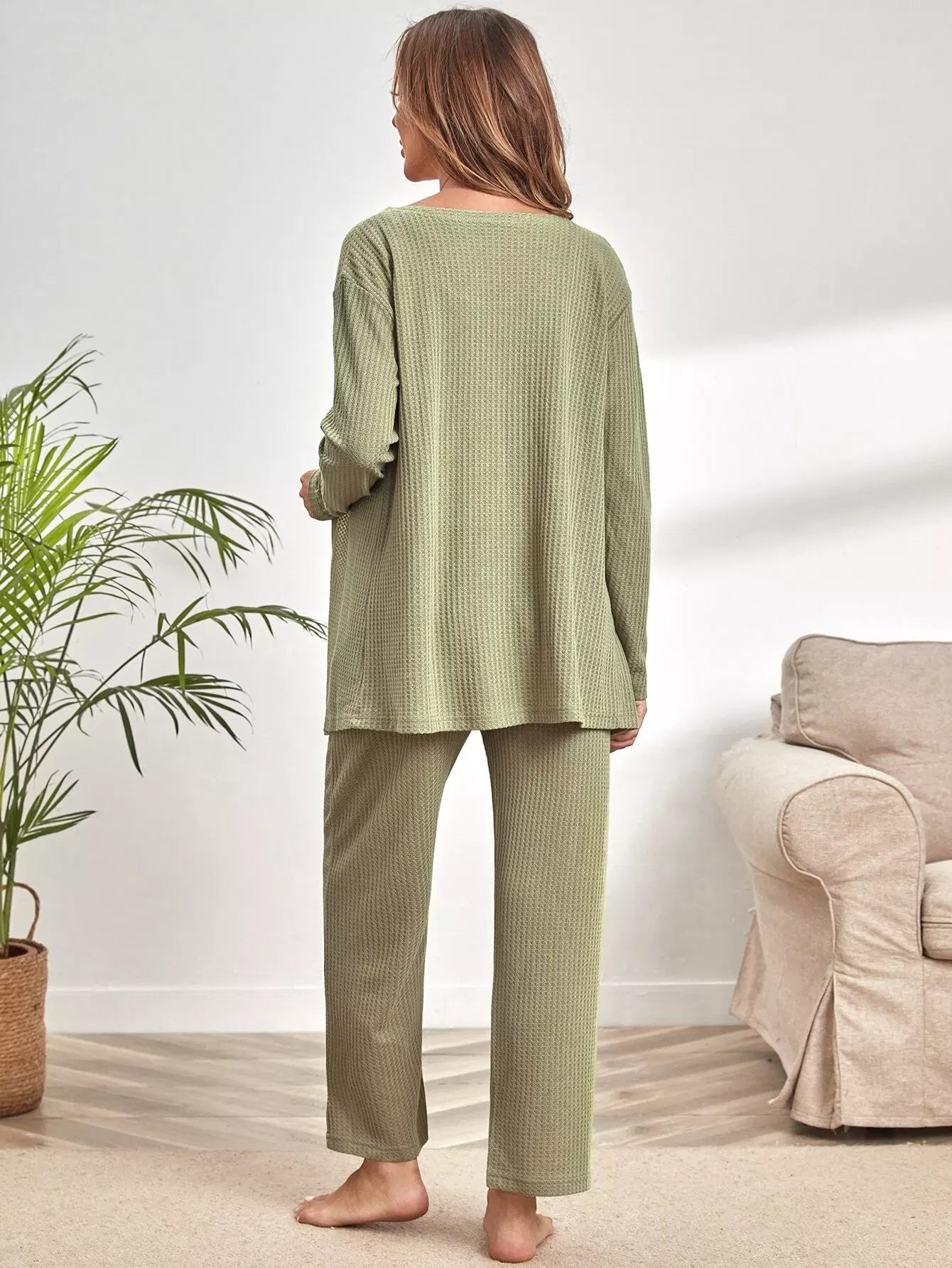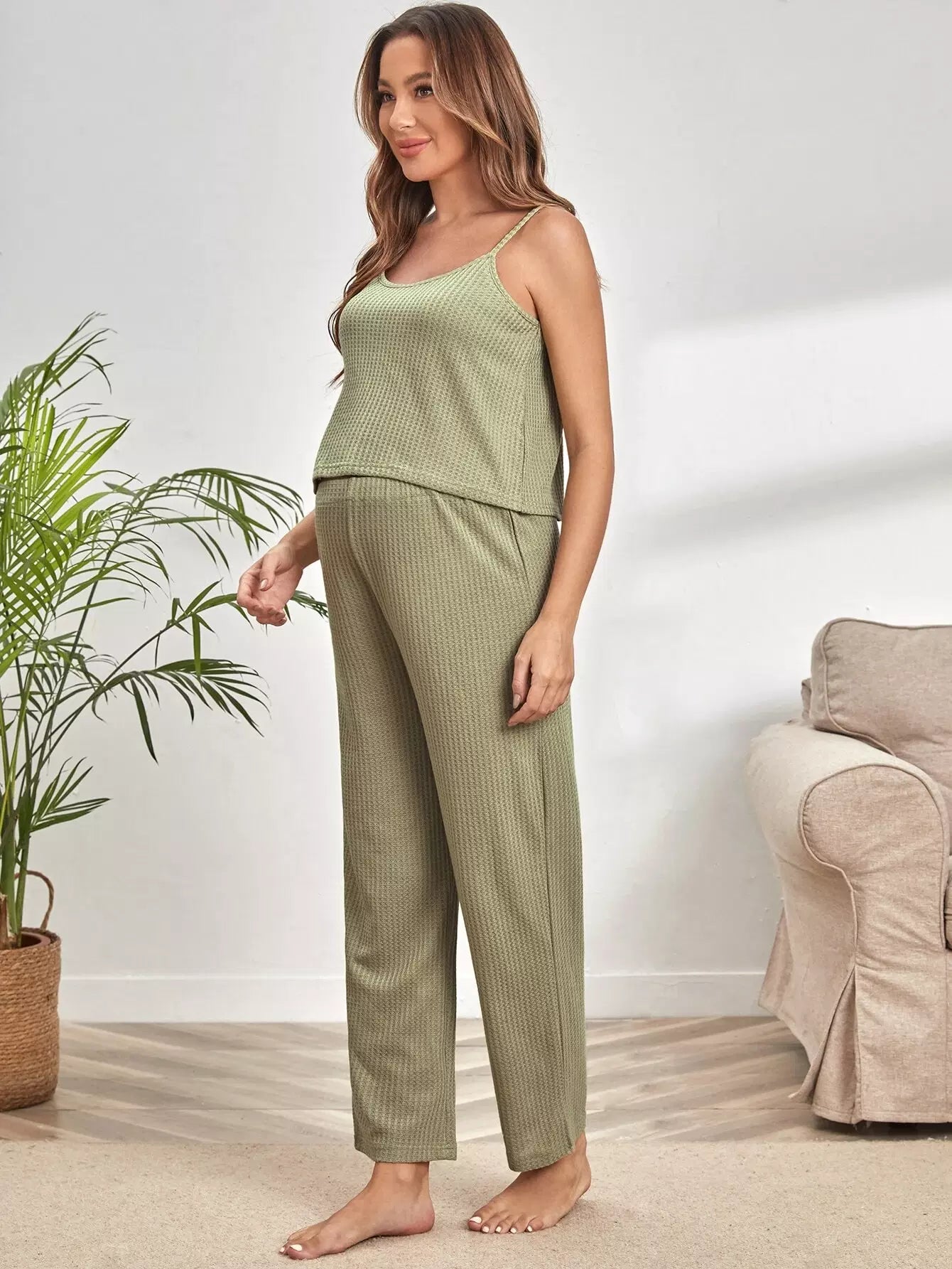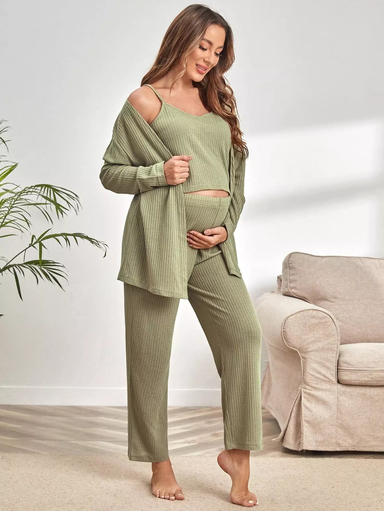 طقم قميص قصير محبوك ومتماسك للحوامل وبنطال بخصر مطاطي قابل للتعديل ورداء استراحة