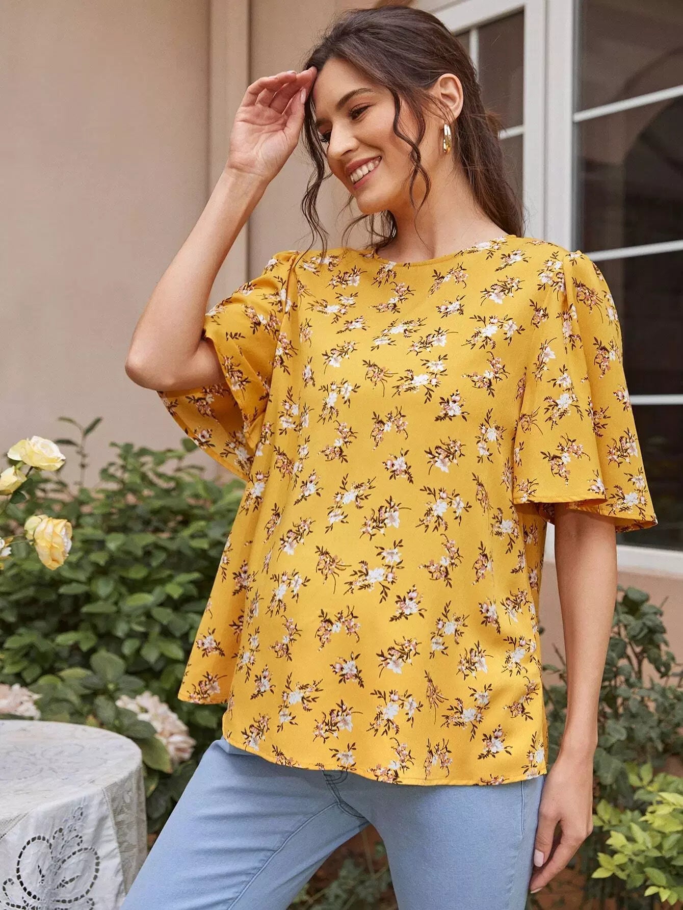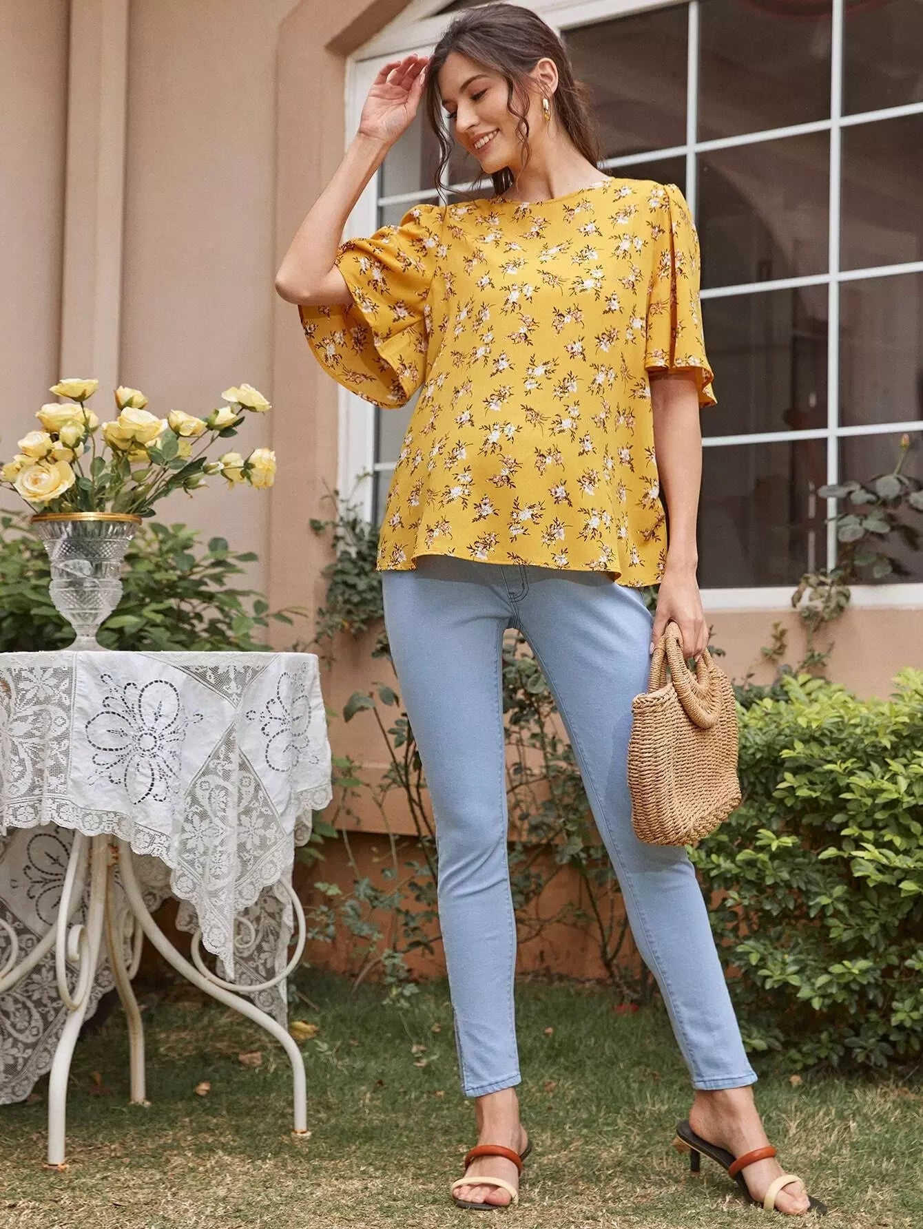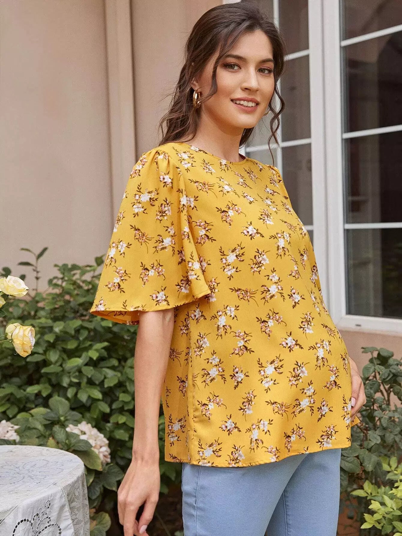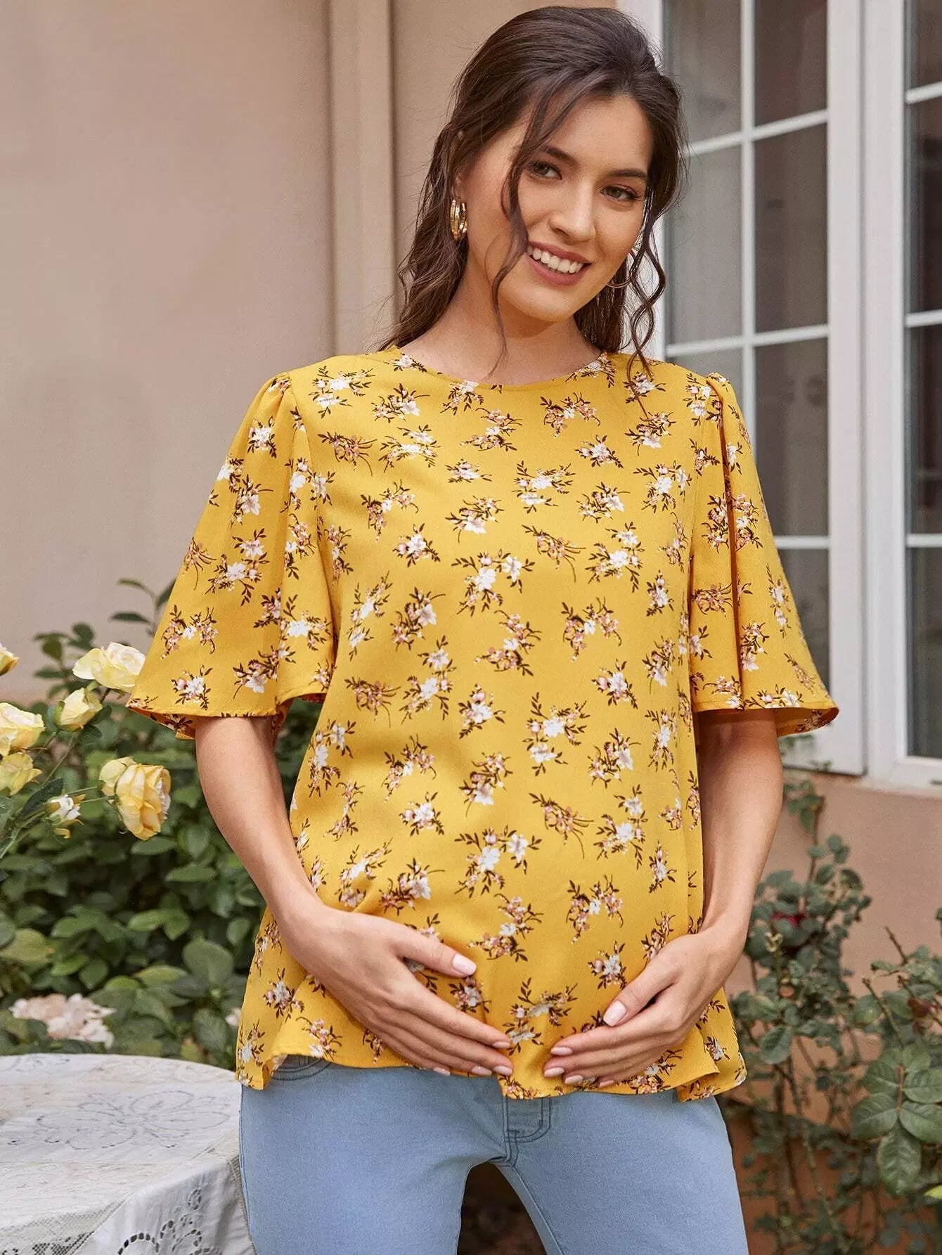 توب بأكمام جرس بأزهار ديتسي للحوامل