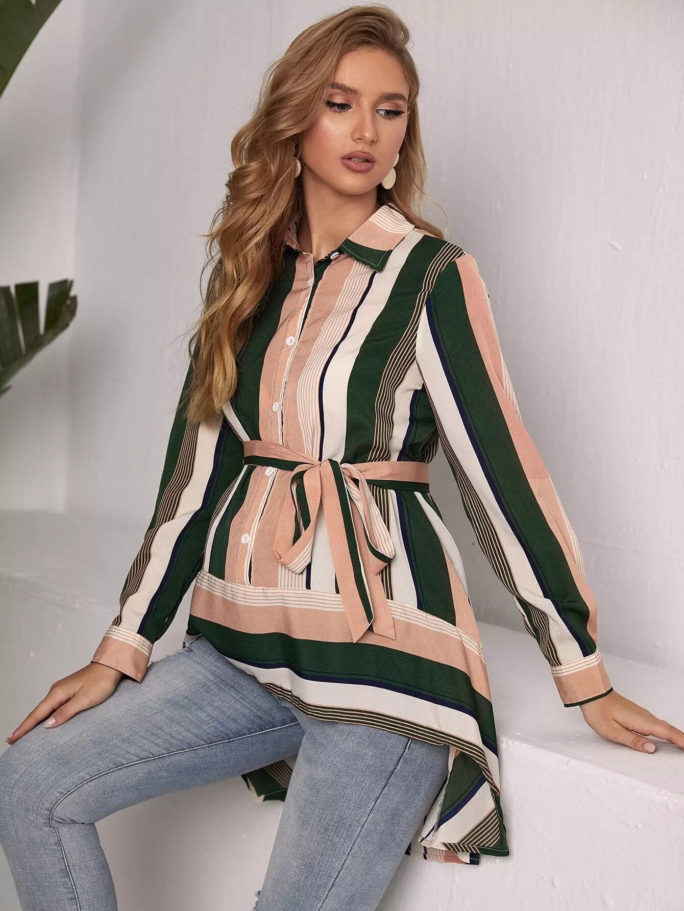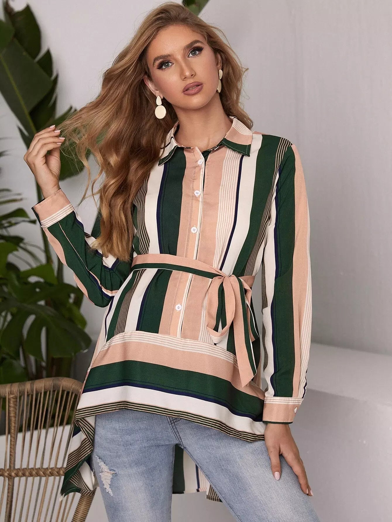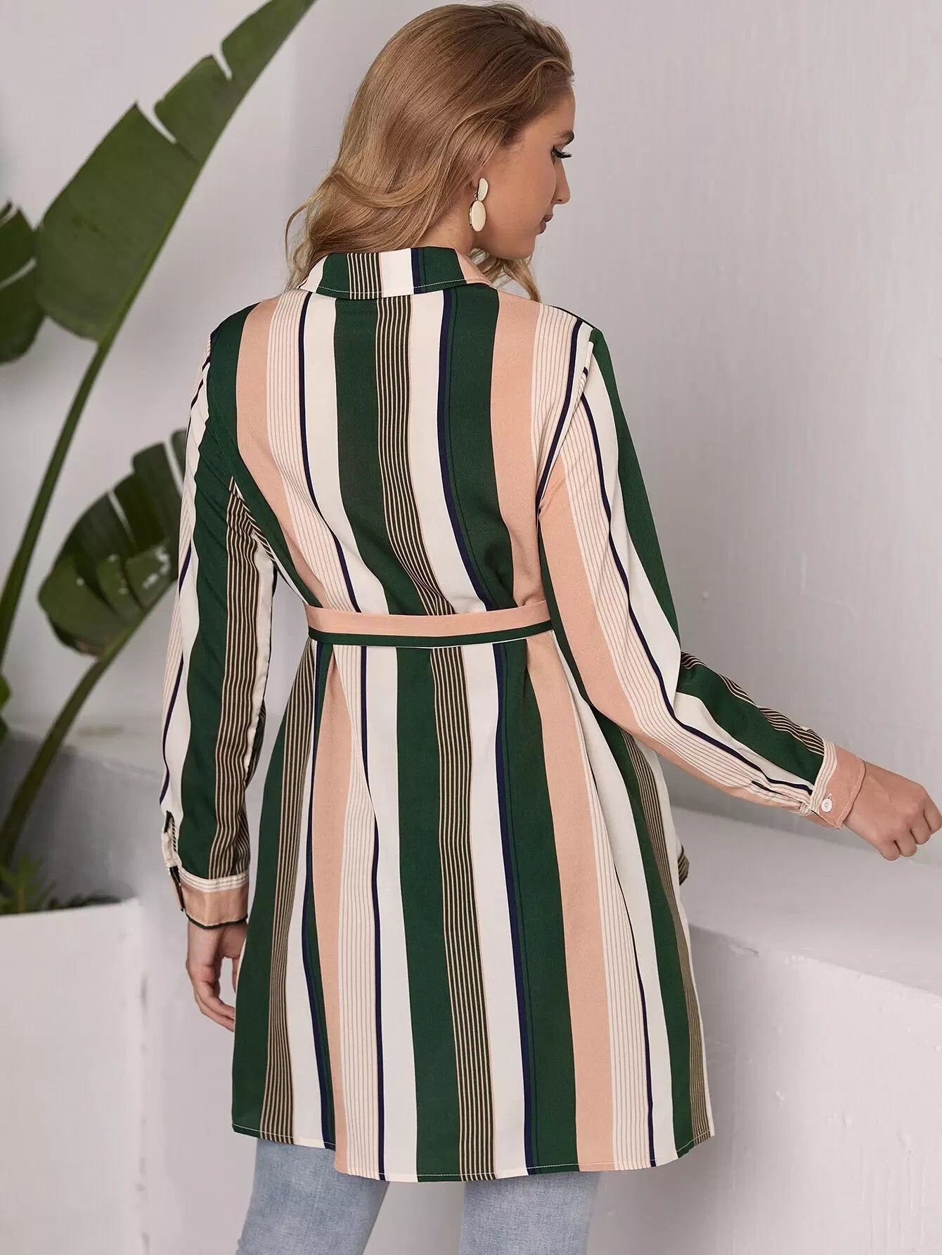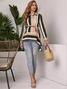 بلوزة تونيك مخططة ذات حاشية سفلية للحوامل بدون حزام