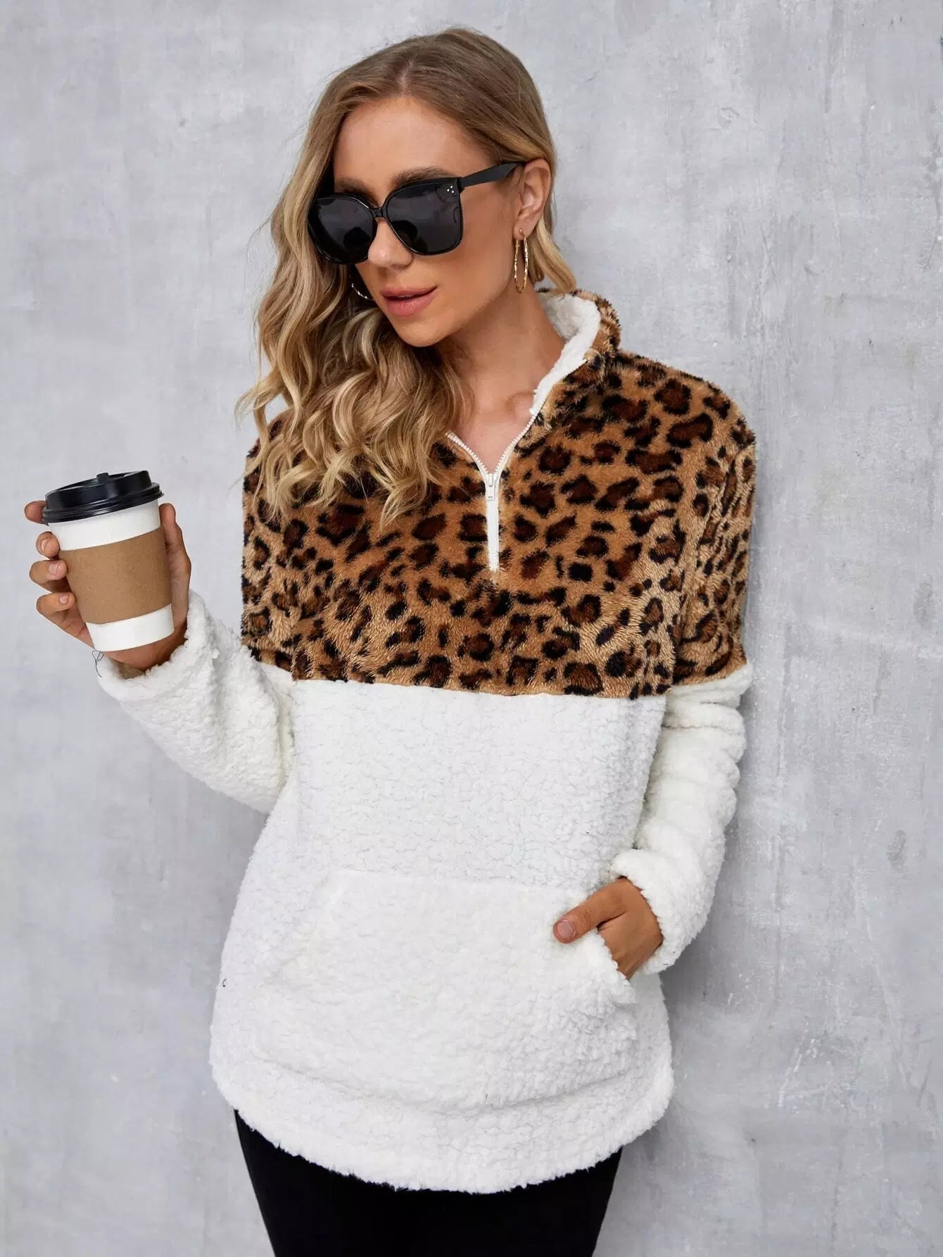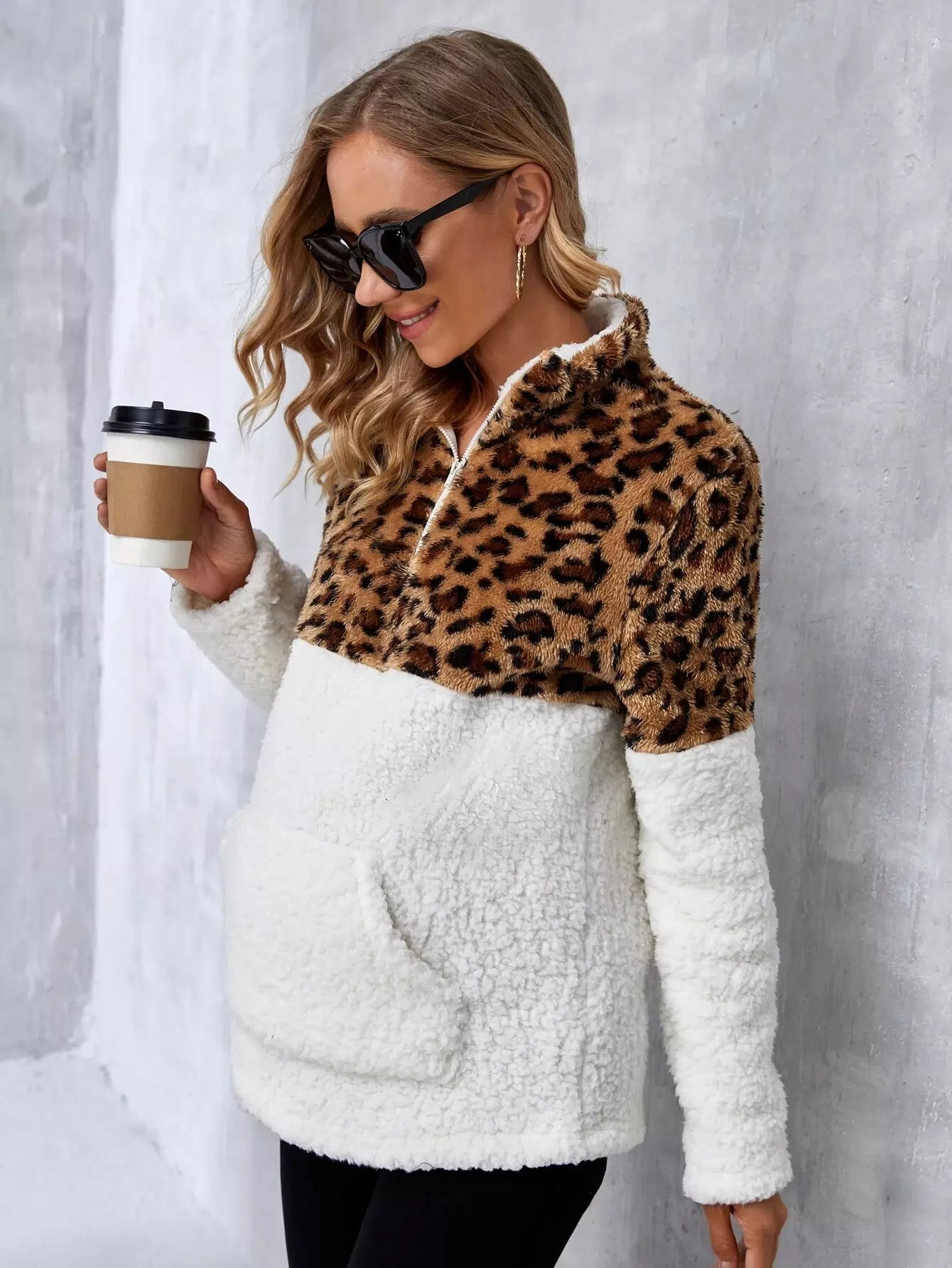 الأطفال - سويت شيرت تيدي بجيب كانجارو بنمط الفهد للحوامل