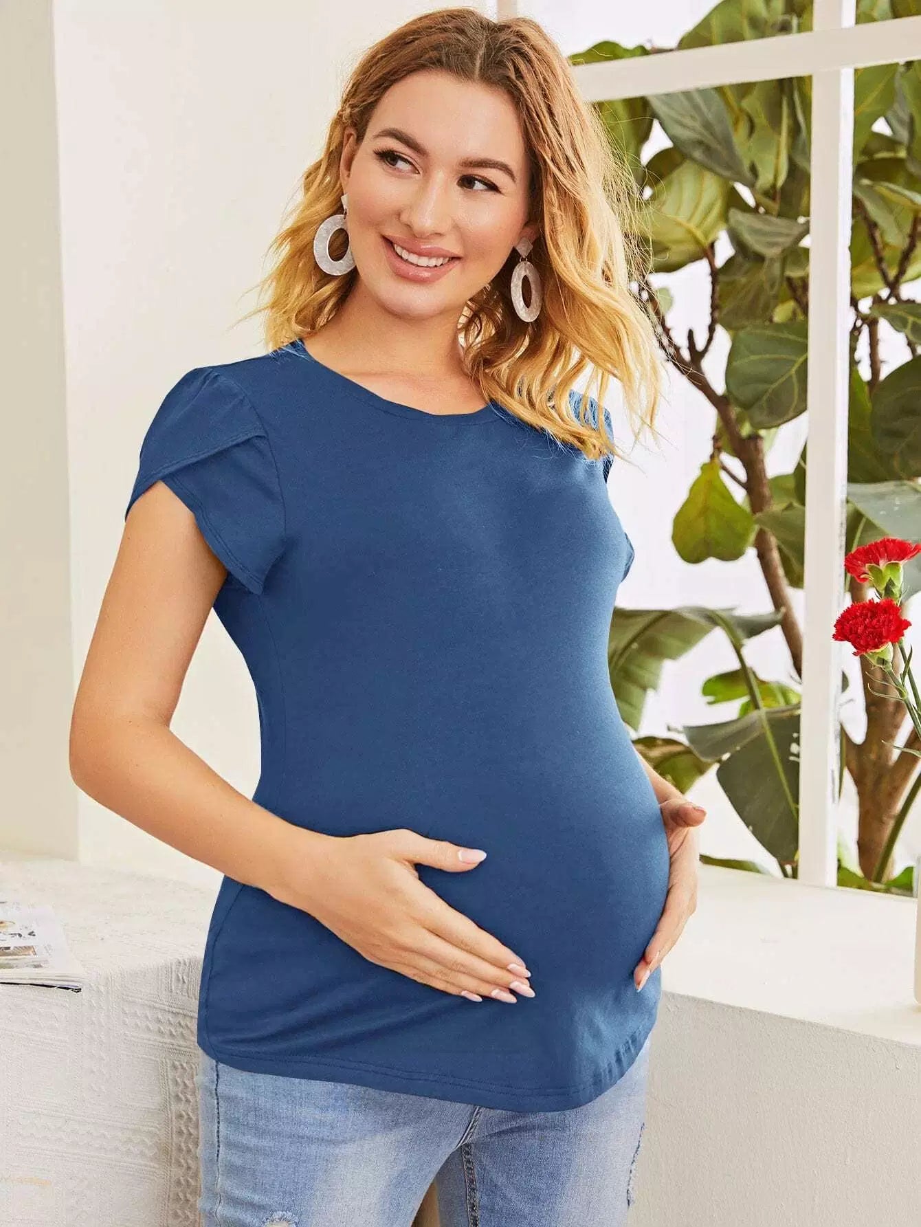 تي شيرت قصير الأكمام بطبعة بتلات للأمومة