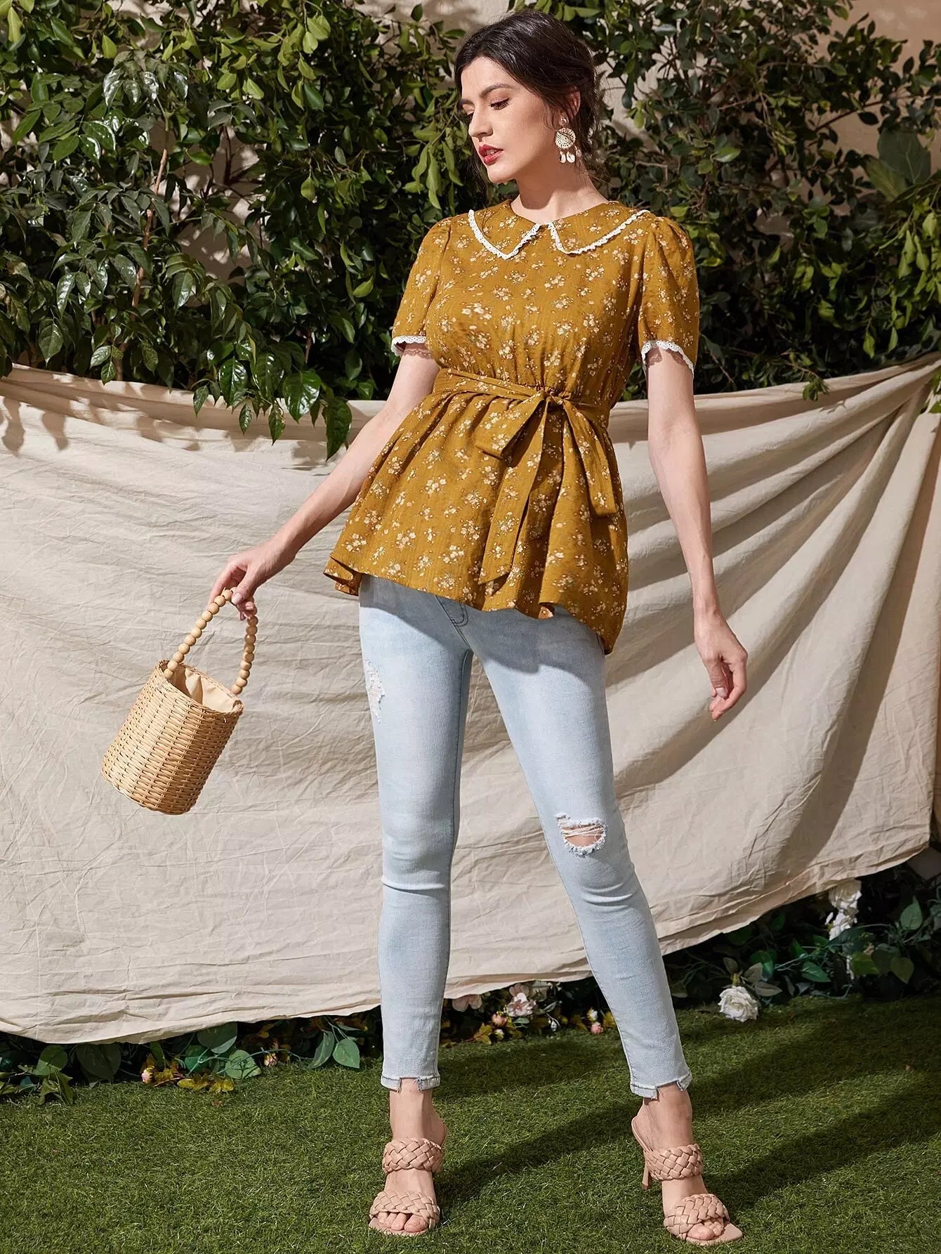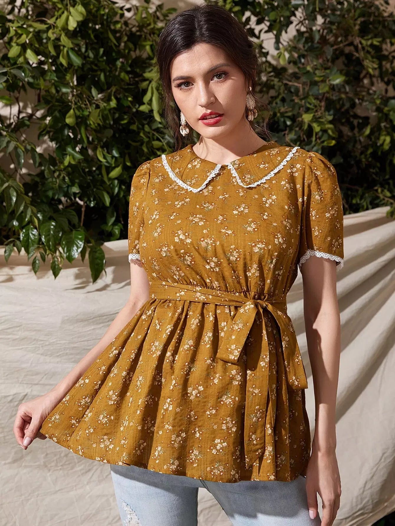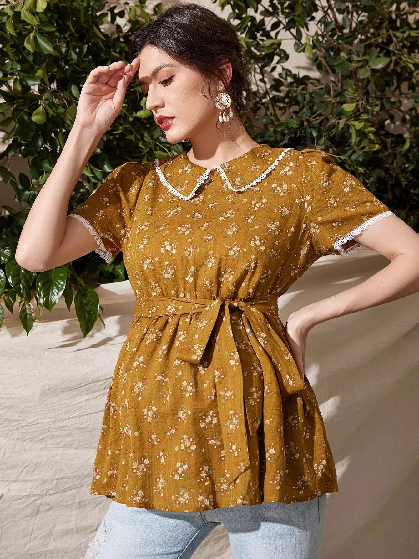 الأمومة بيتر بان طوق أعلى الأزهار Ditsy بدون حزام