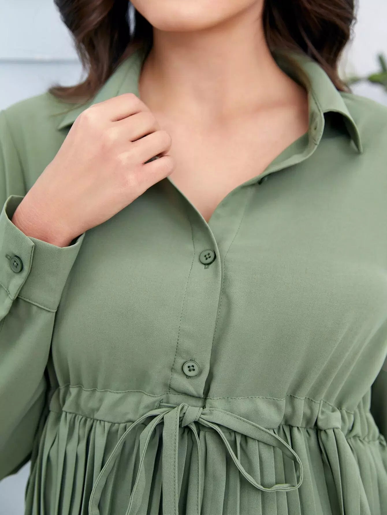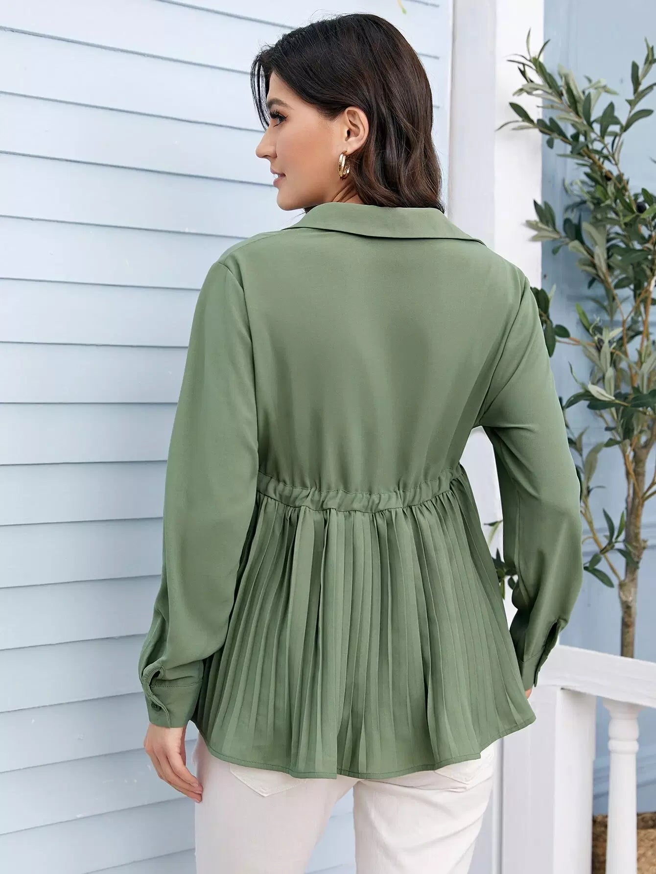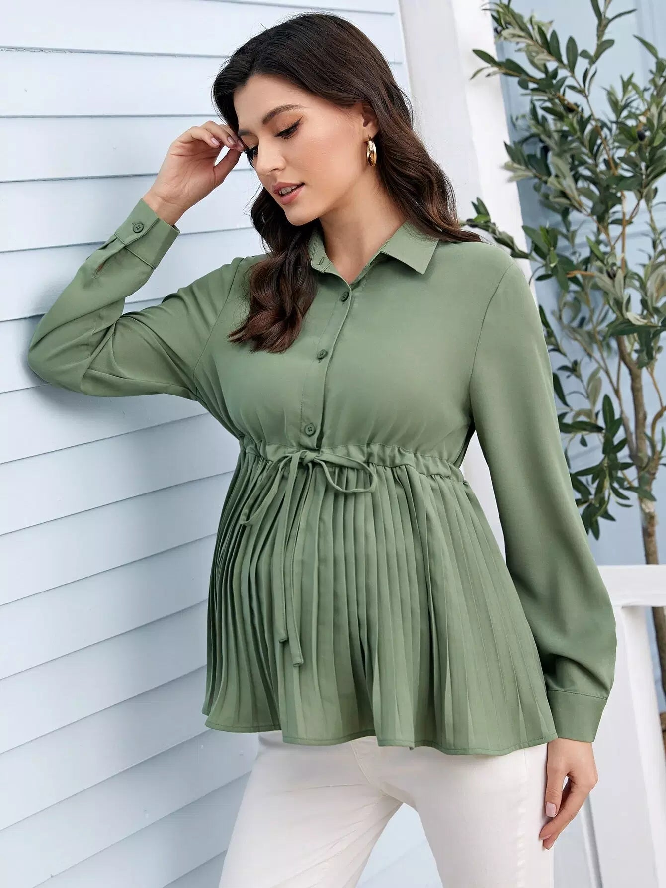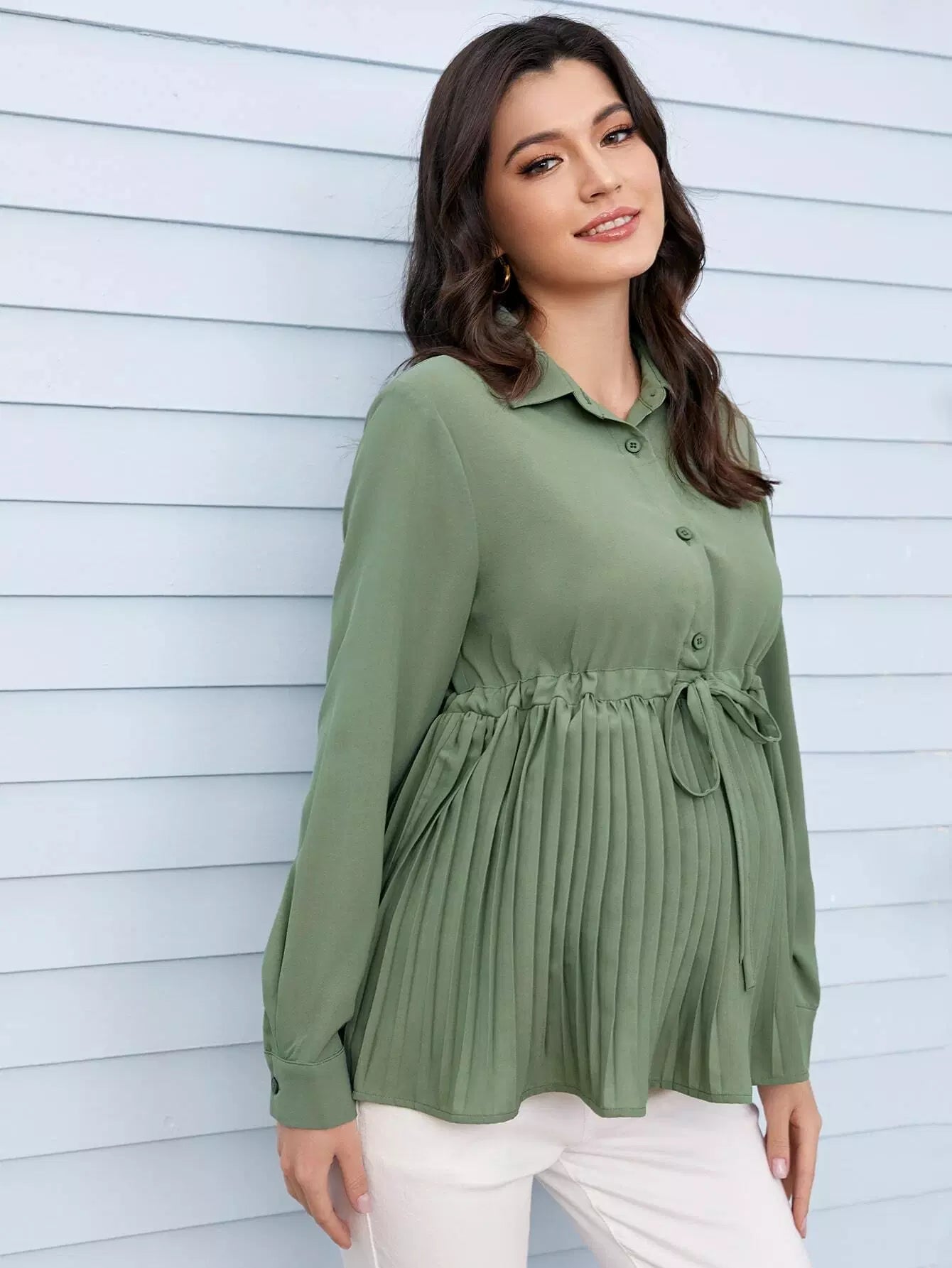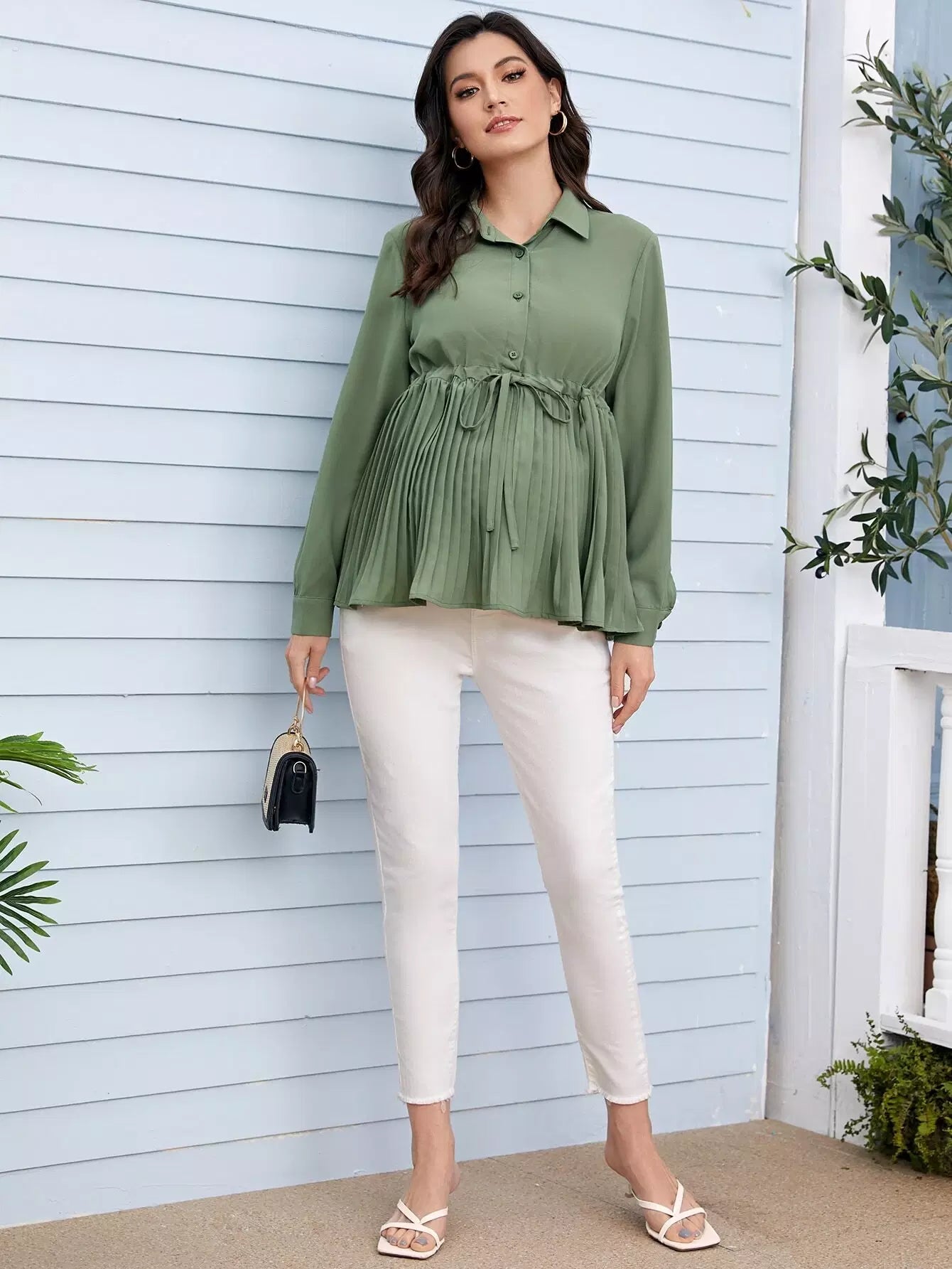 بلوزة بحاشية مطوية بطيات أمامية مع عقدة أمامية للحوامل