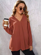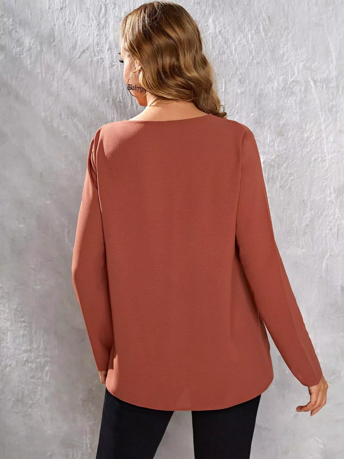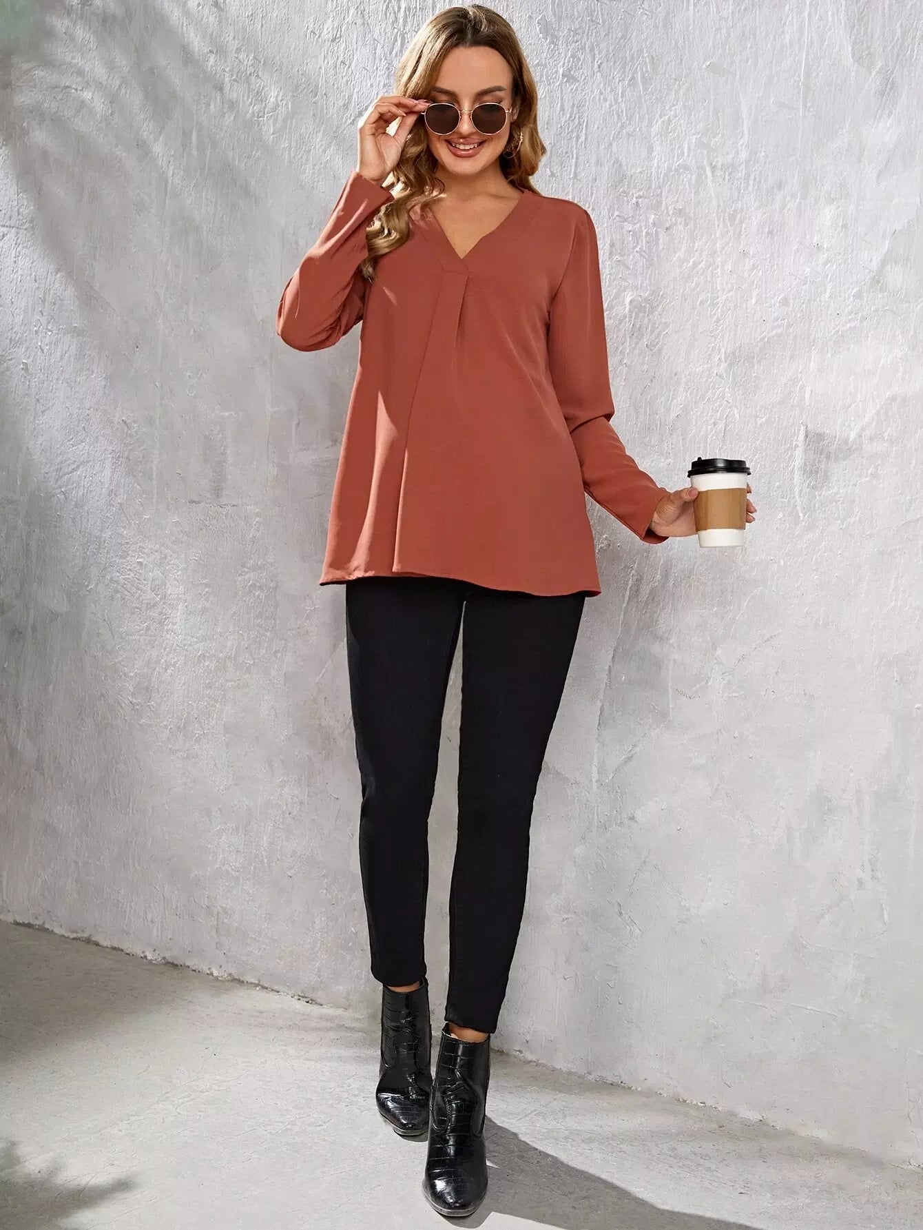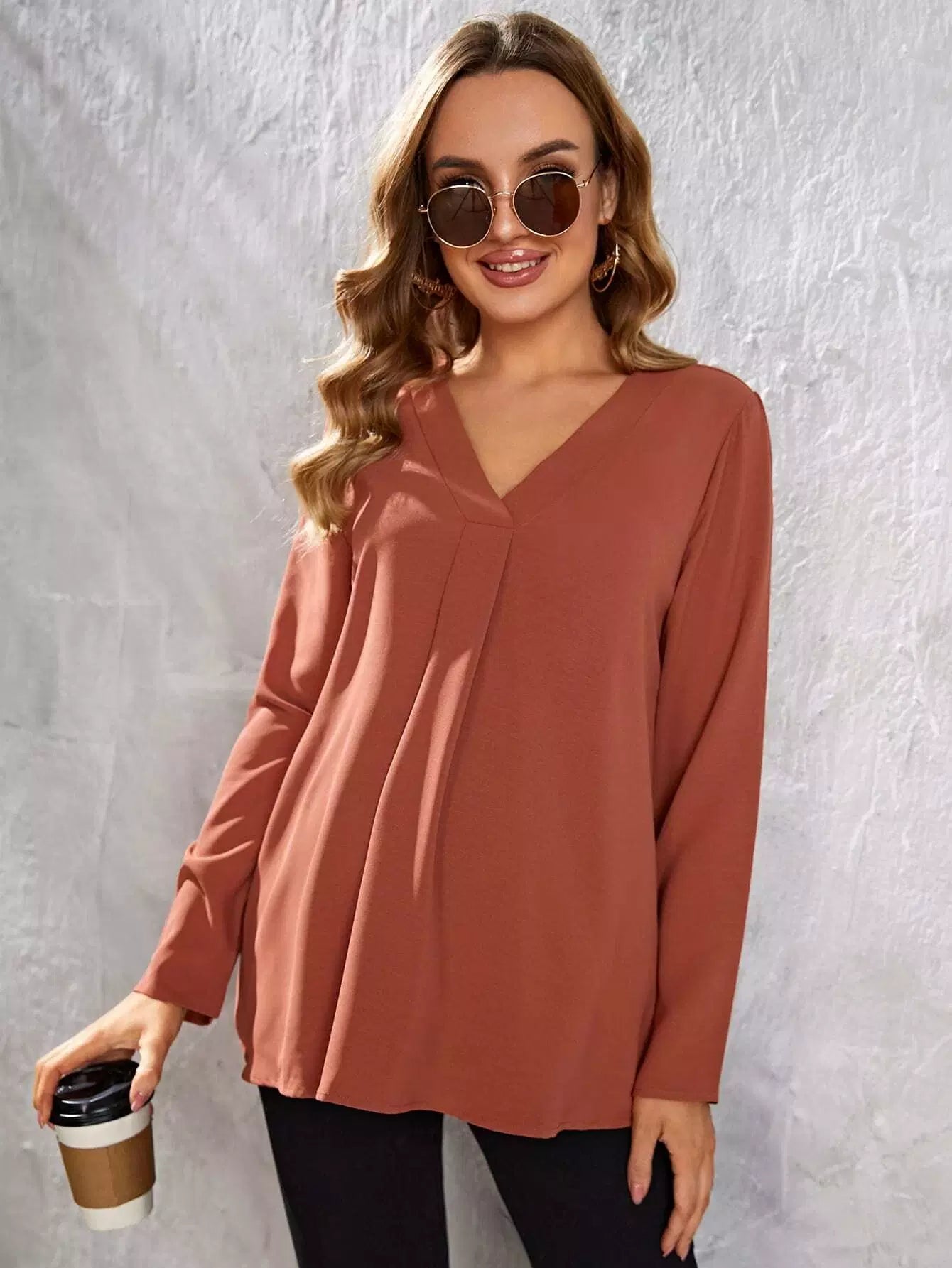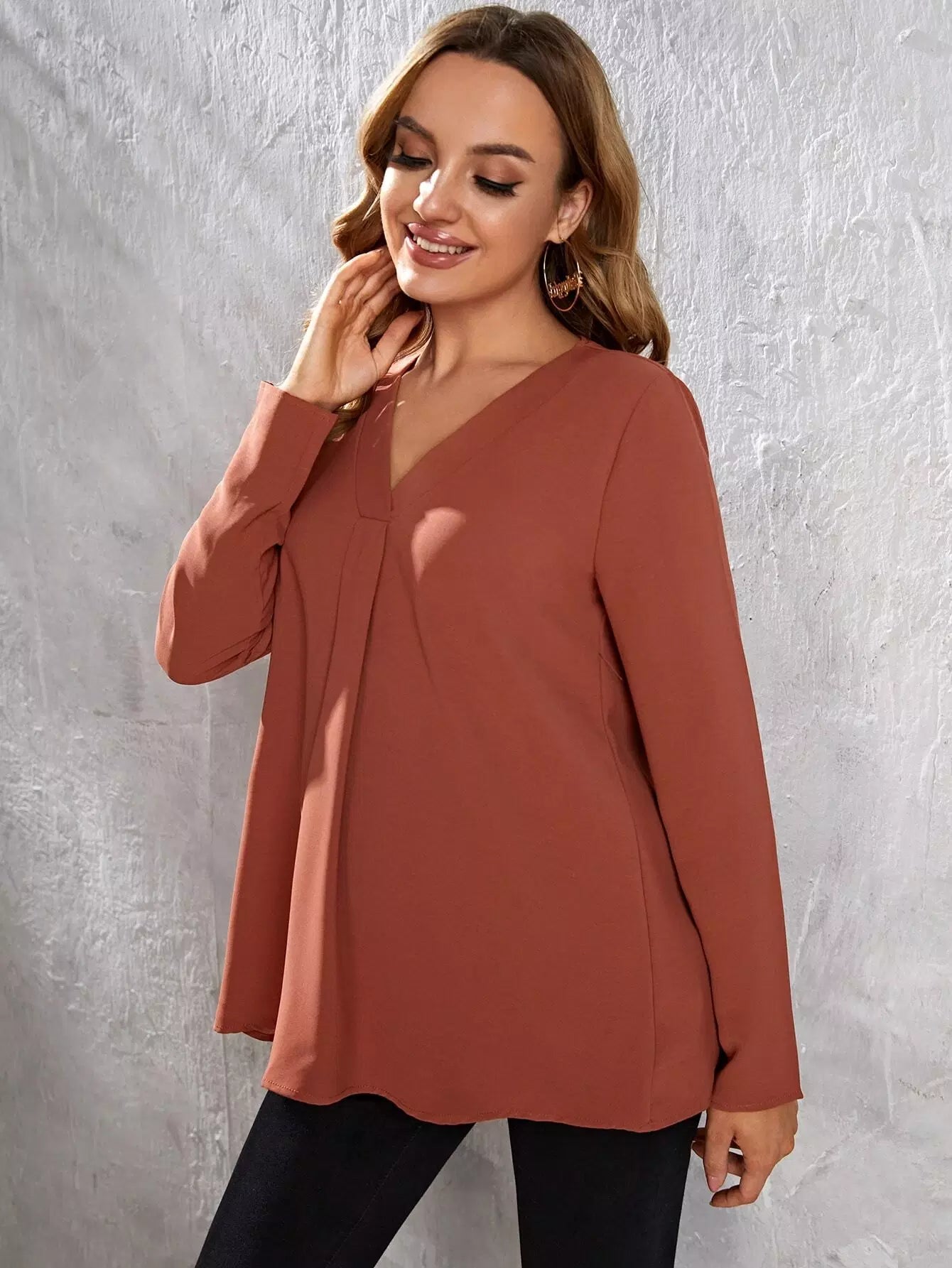 بلوزة للحوامل ذات تفاصيل مطوية وفتحة رقبة على شكل حرف V