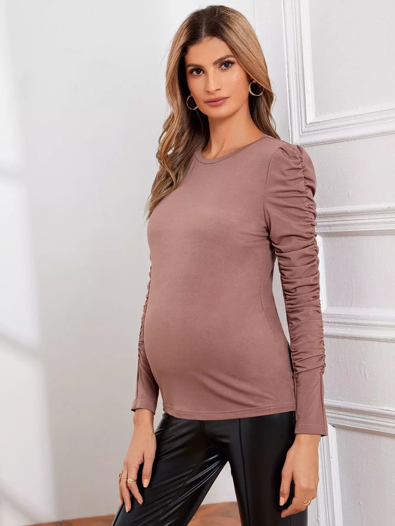 بلوزة سادة بأكمام مكشكشة للحوامل
