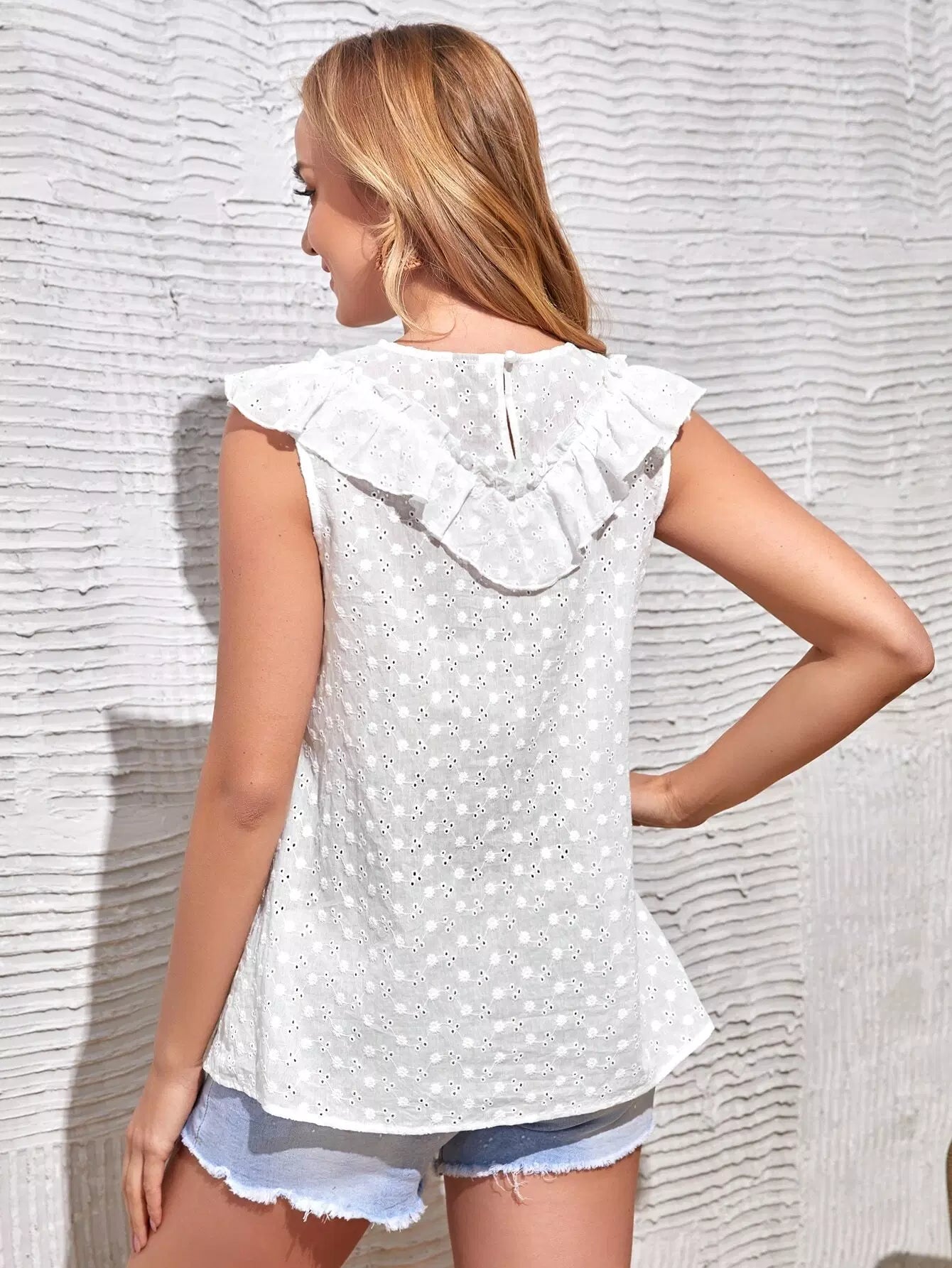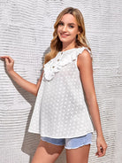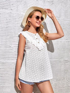 بلوزة بحواف مكشكشة بأزرار أمامية مكشكشة للحوامل