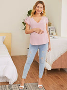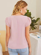 بلوزة بأكمام بتلات على شكل حرف V بياقة على شكل حرف V