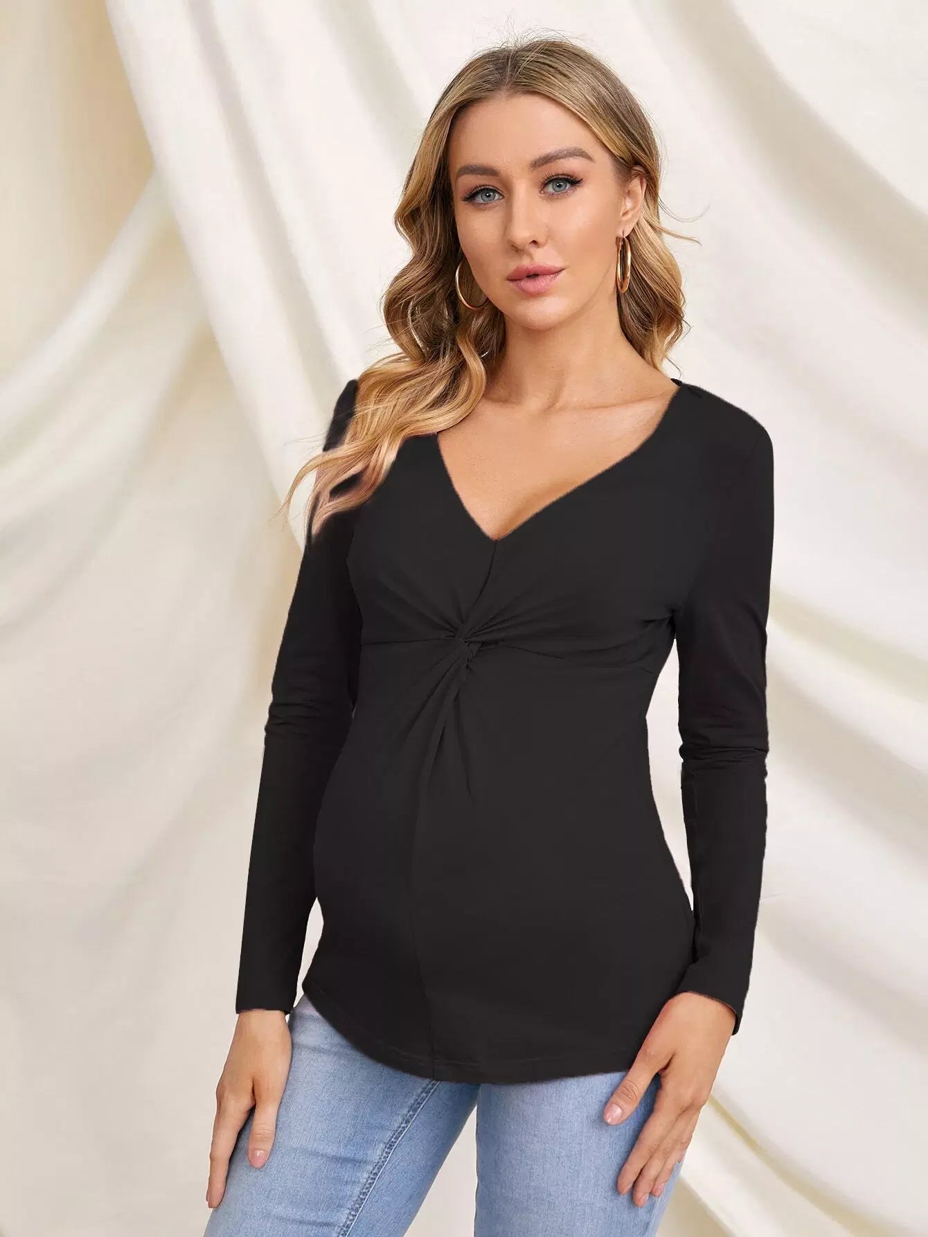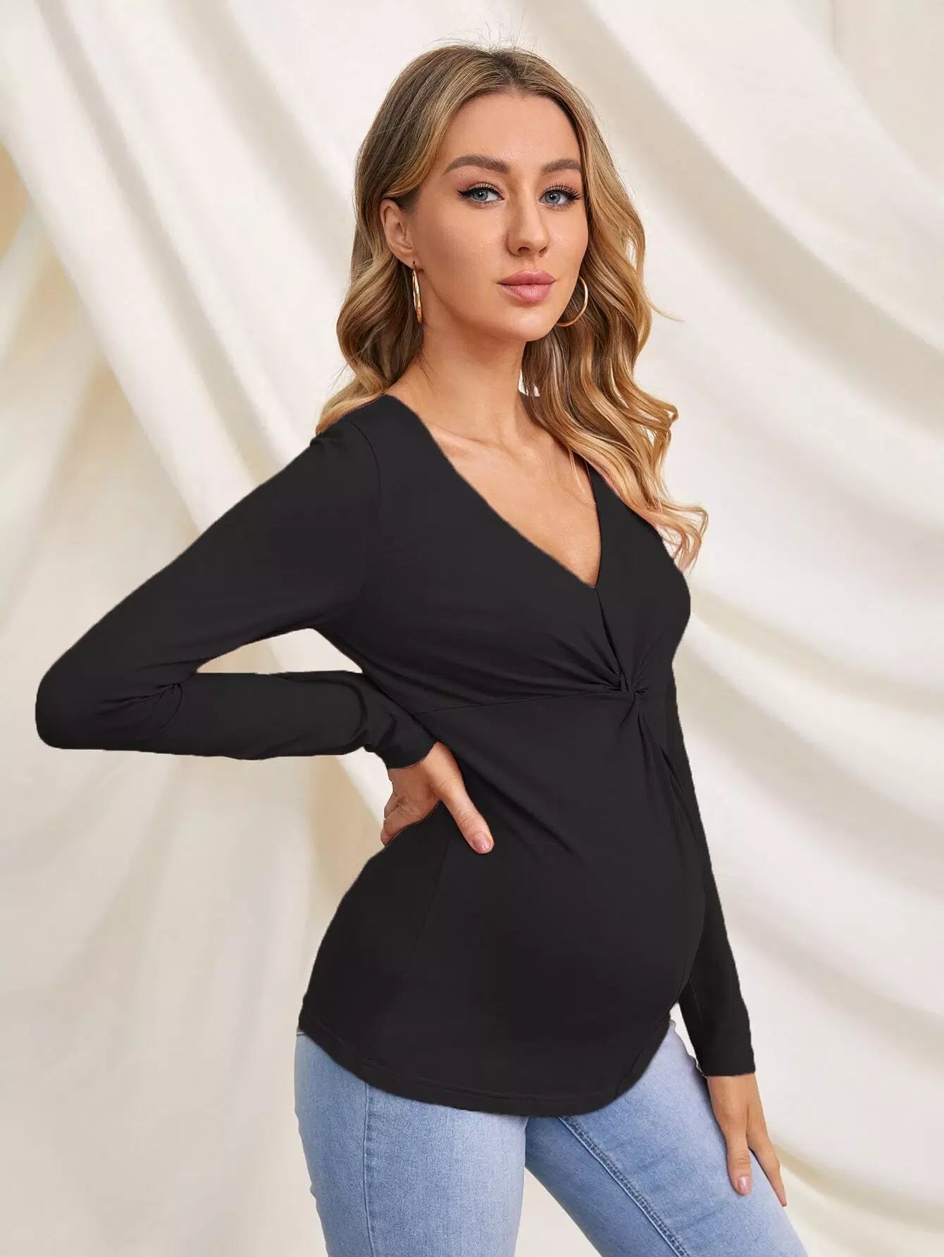 تي شيرت بقصّة أمامية ملتوية سادة للحوامل