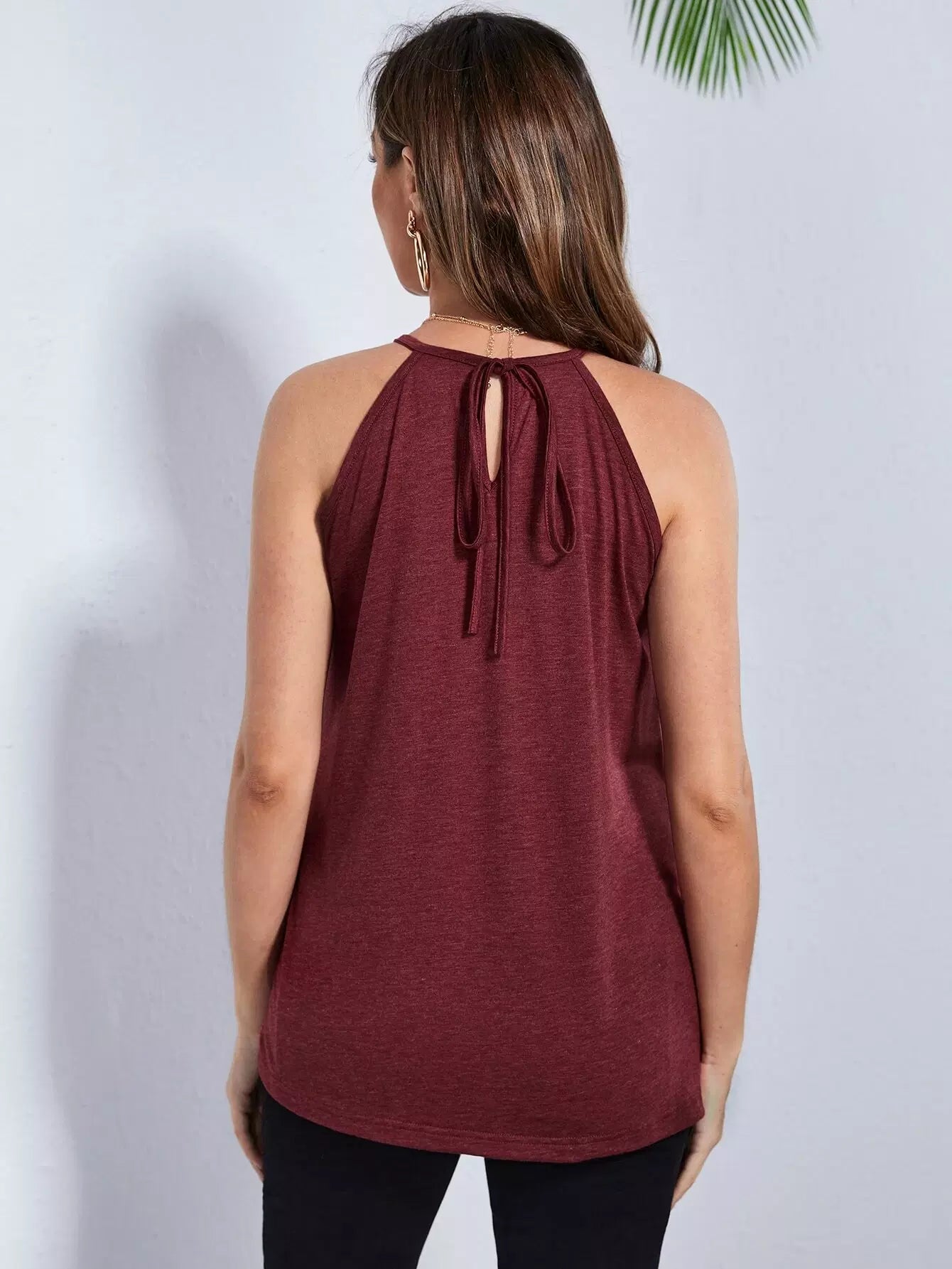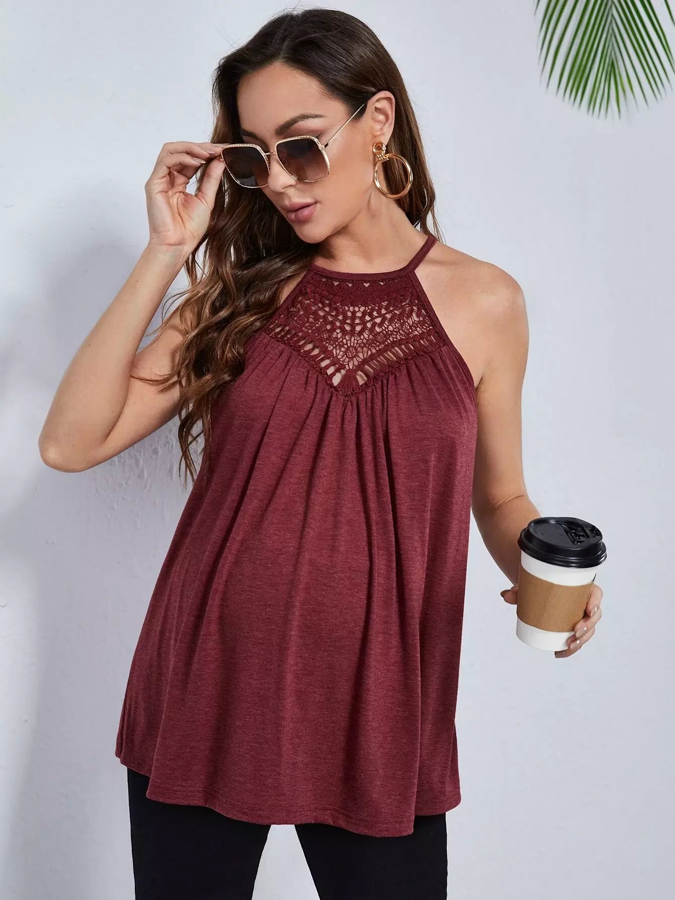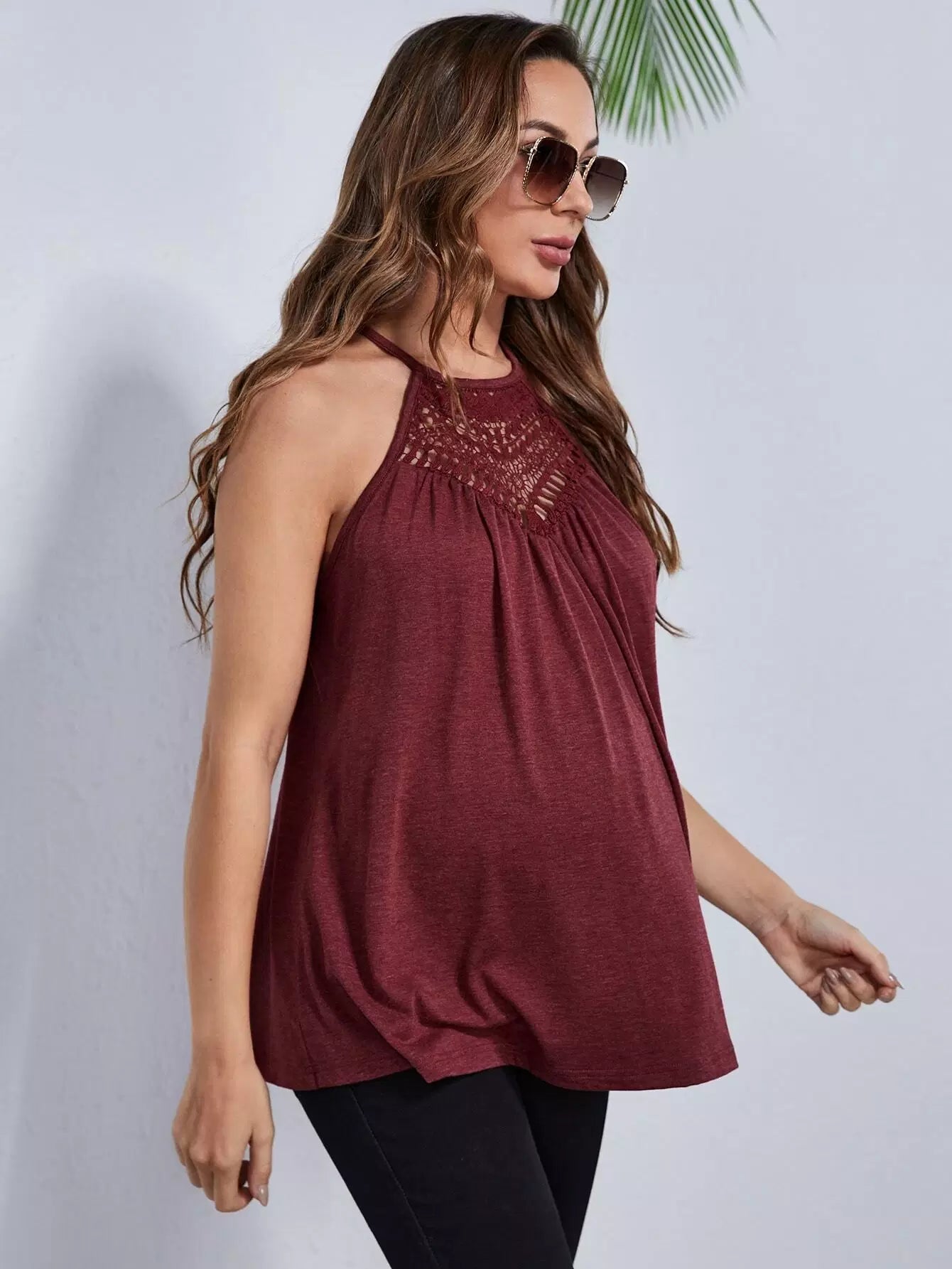 تيشيرت بدون أكمام من الدانتيل المخرّم برباط من الدانتيل المخرّم للحوامل