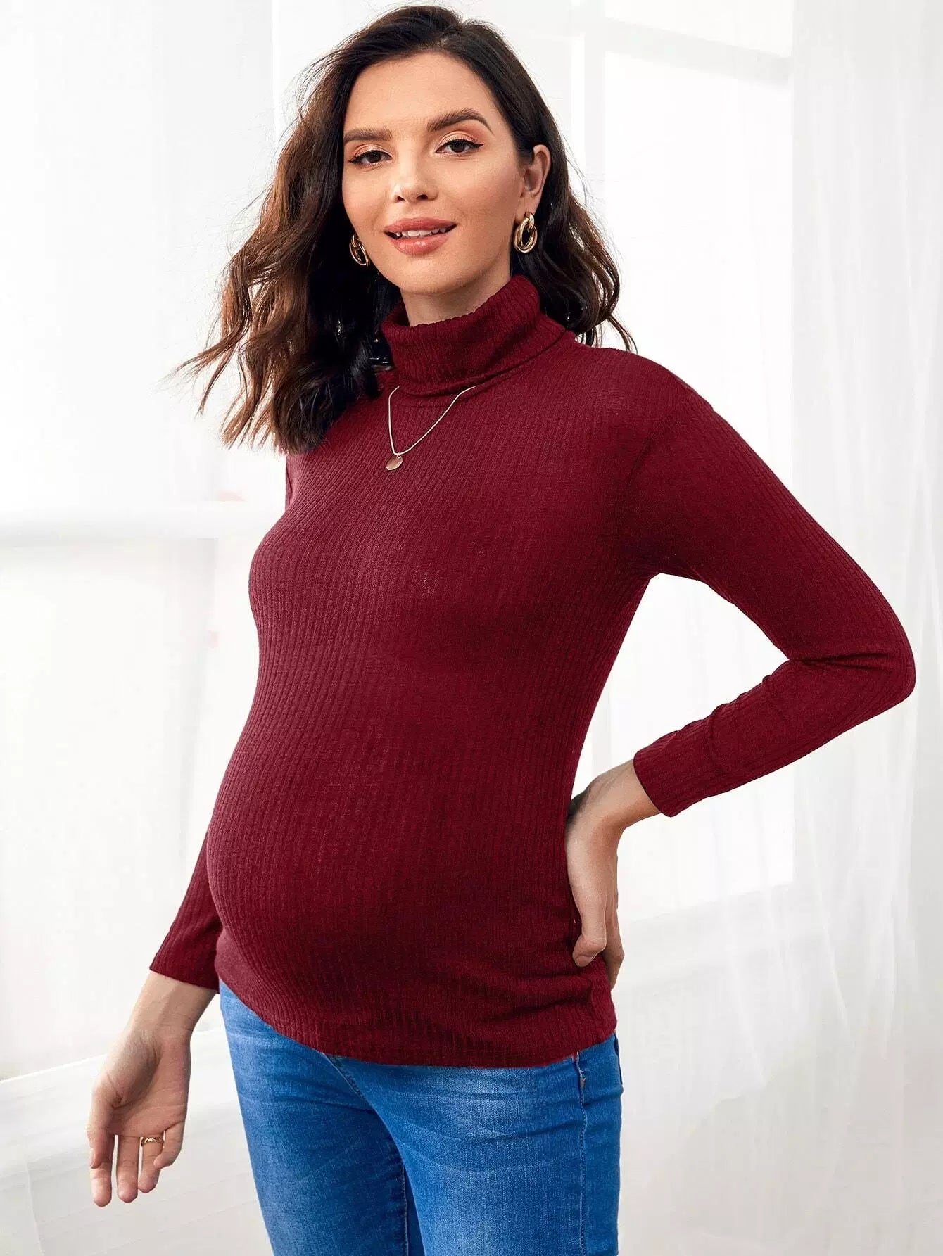 بلوزة برقبة سلحفاة برقبة سلحفاة محبوكة على شكل ضلع محبوكة برقبة سلحفاة للحوامل