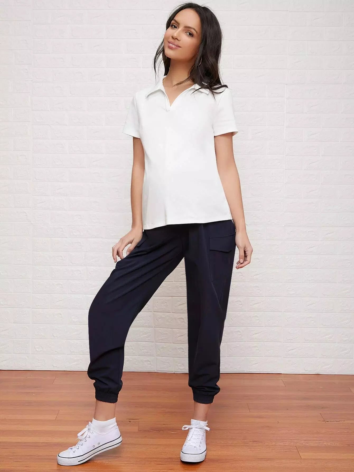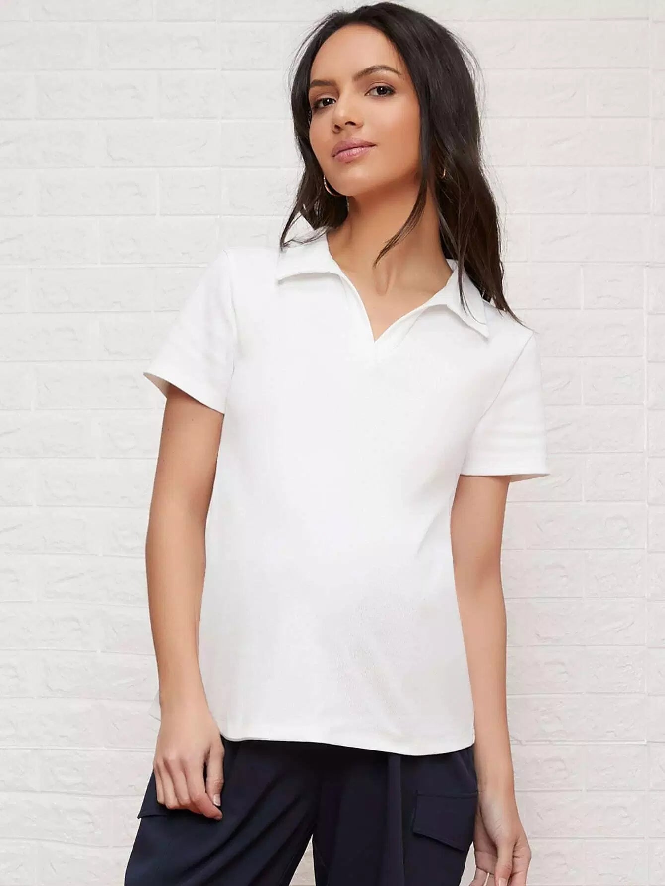 تي شيرت بياقة على شكل V بياقة على شكل V سادة للحوامل