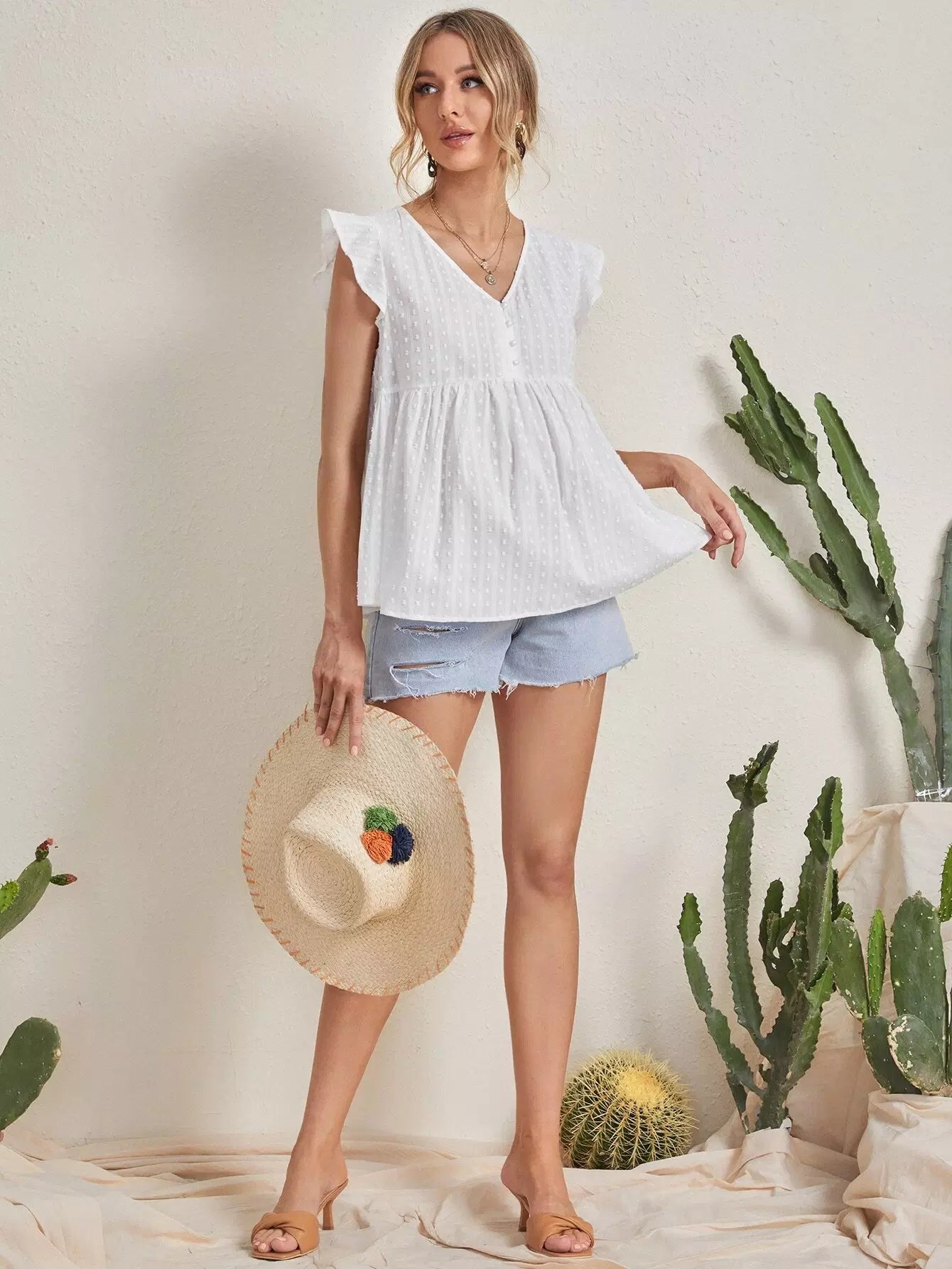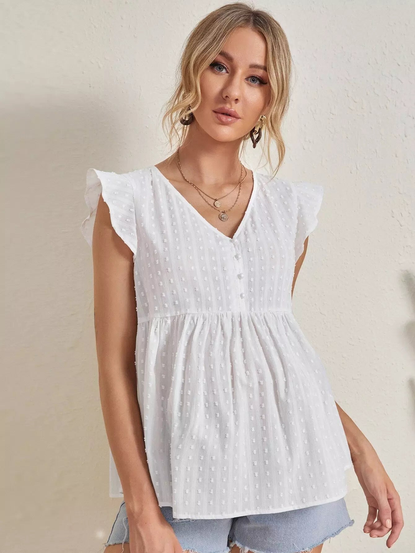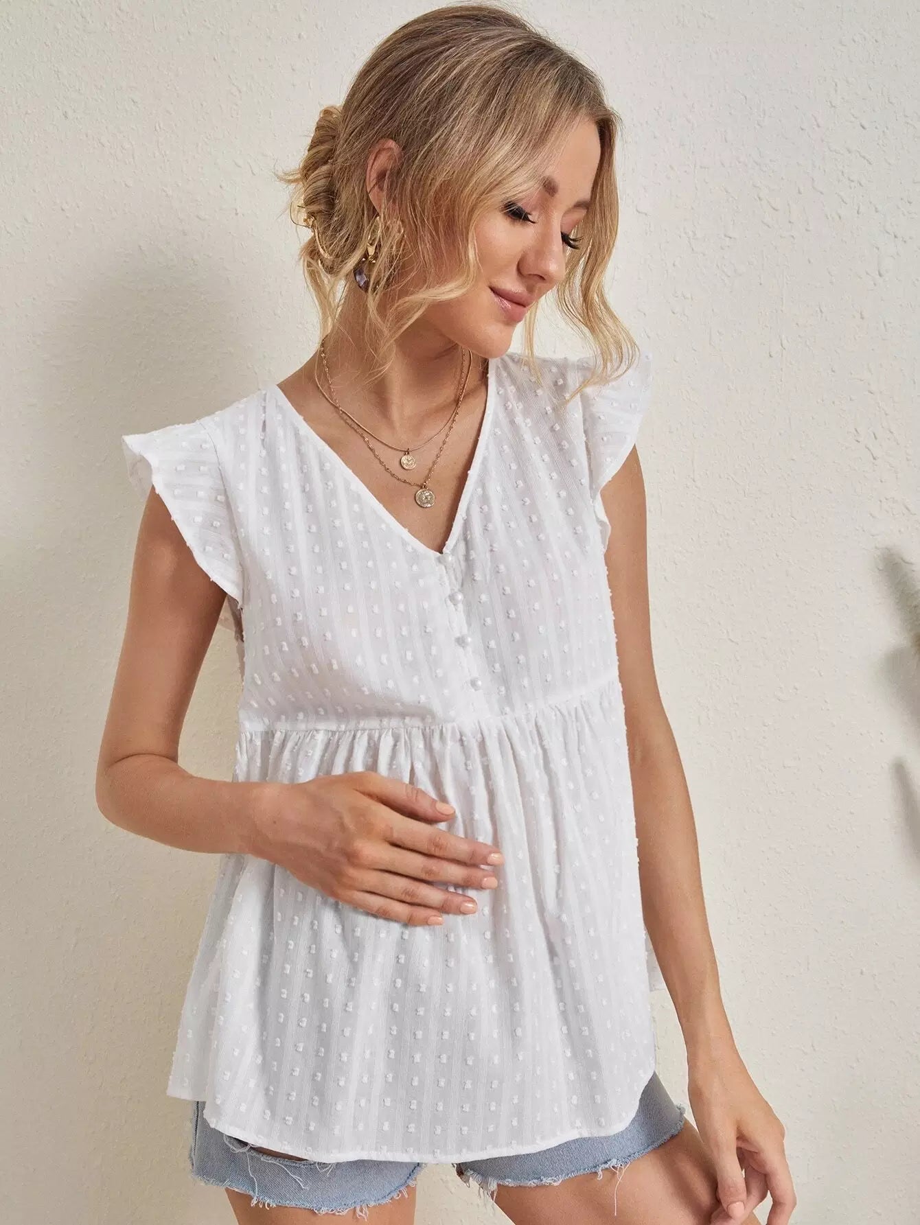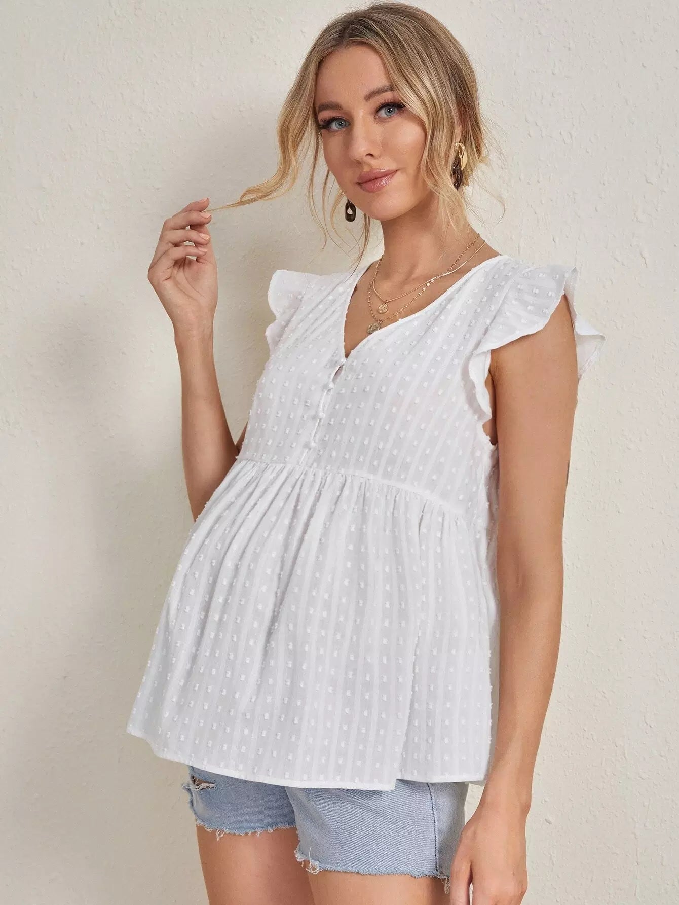 بلوزة كشكش بحواف كشكش للحوامل