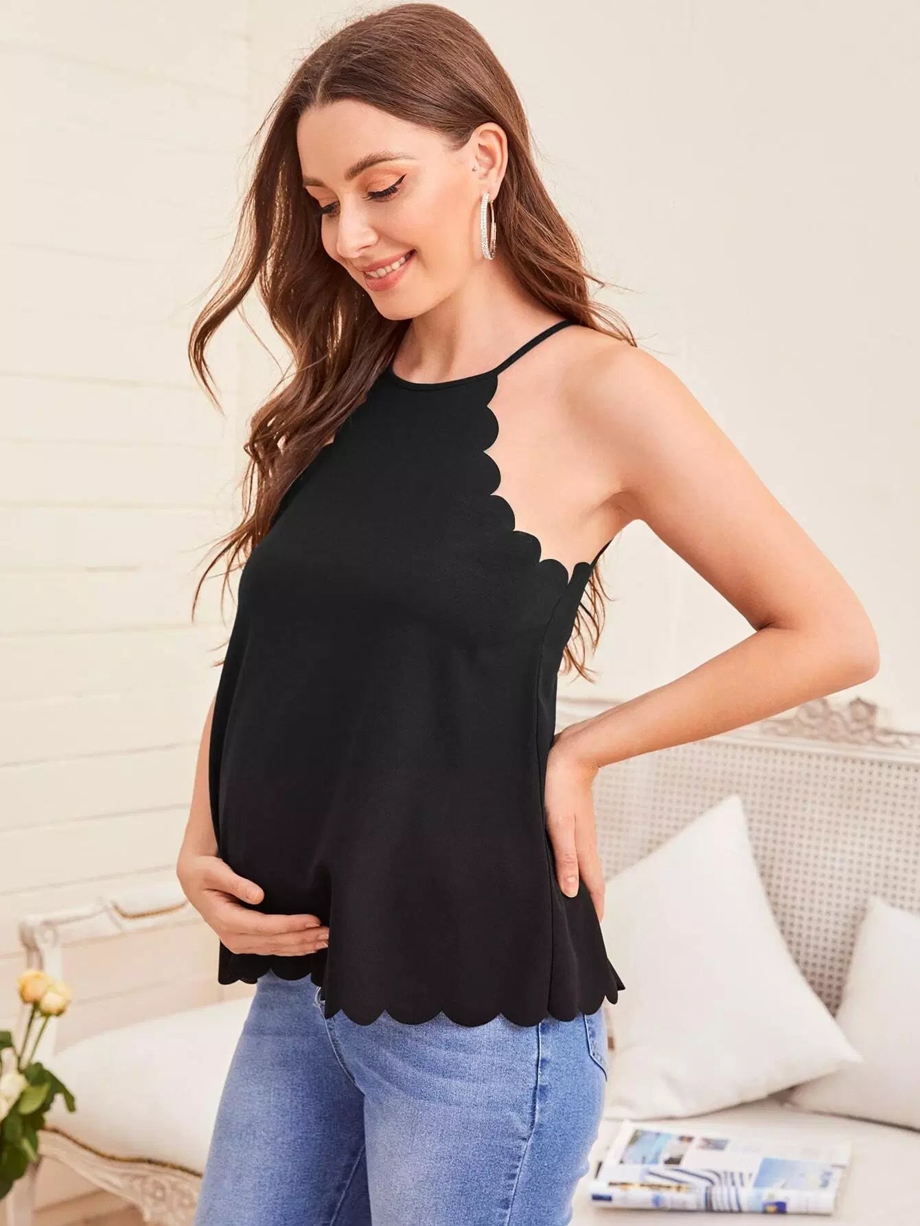 بلوزة بحافة رسن بحافة صدف للحوامل